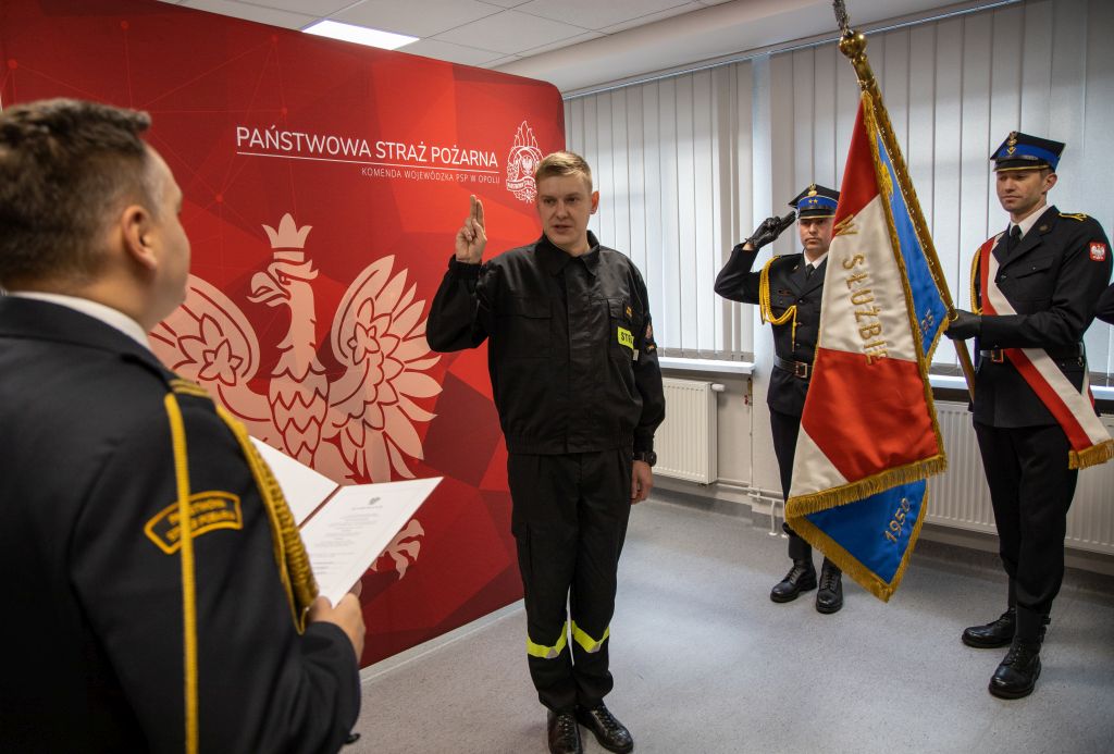 Ślubowanie strażaka Komendy Wojewódzkiej PSP w Opolu