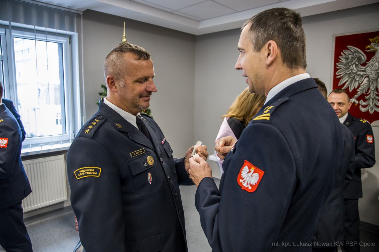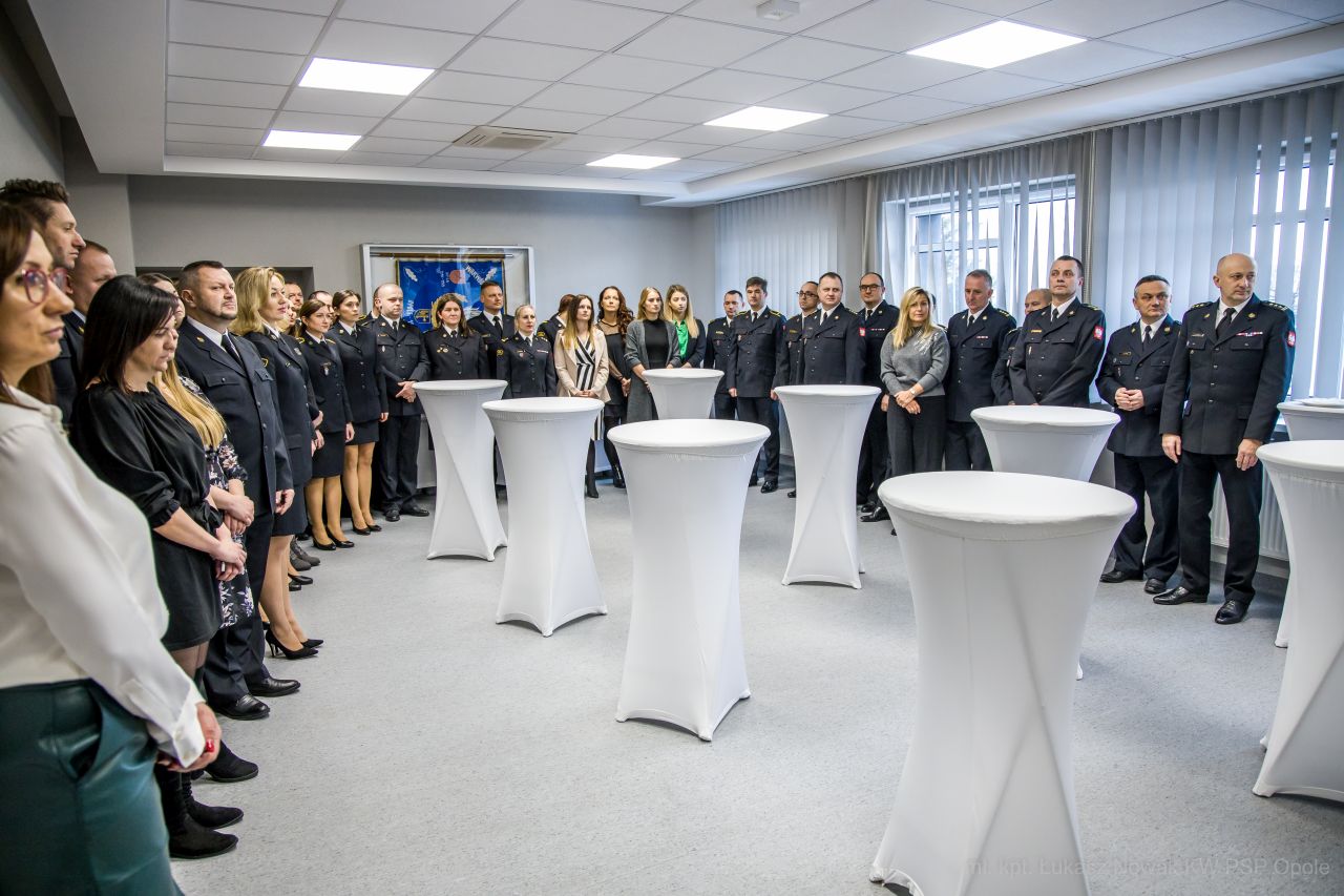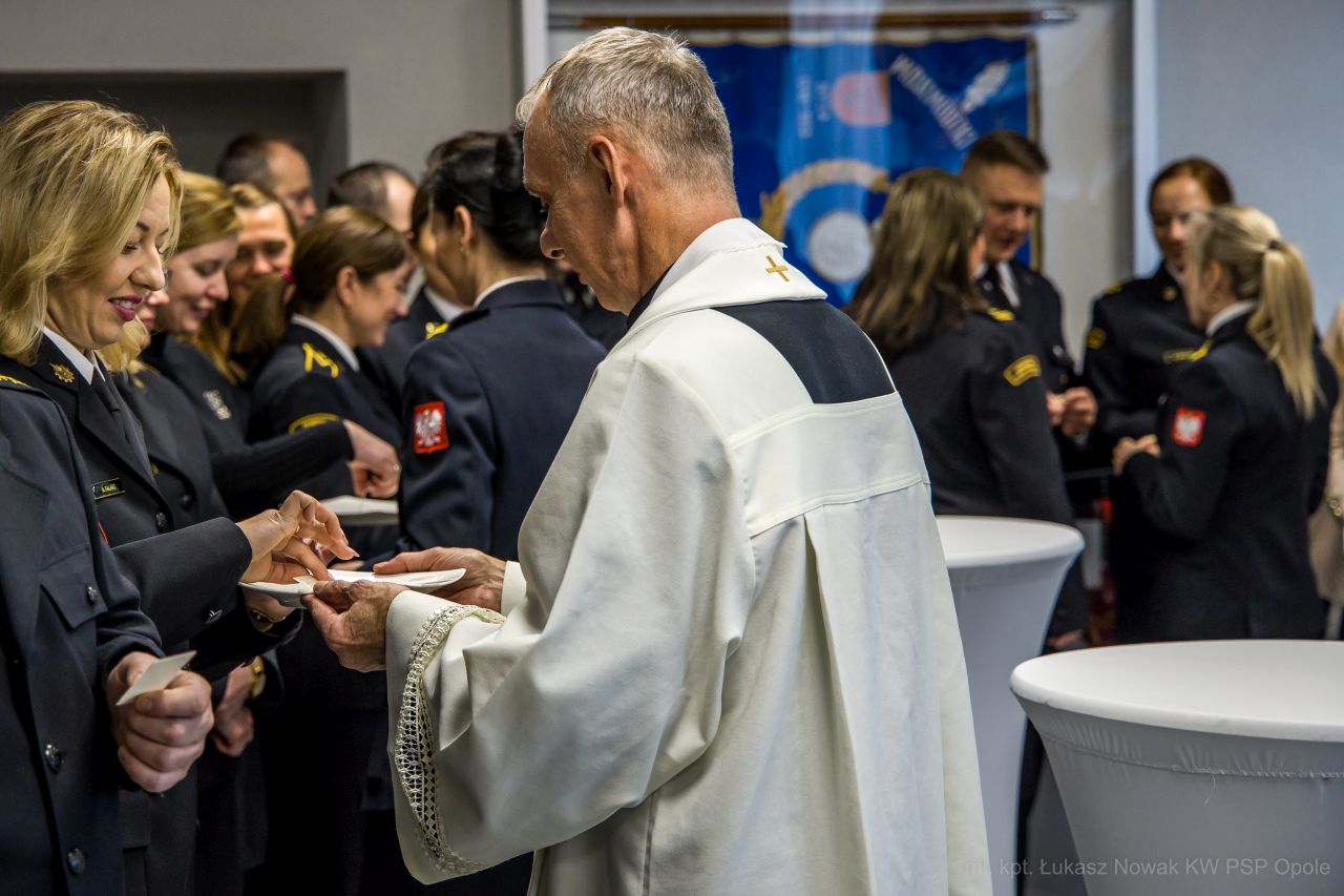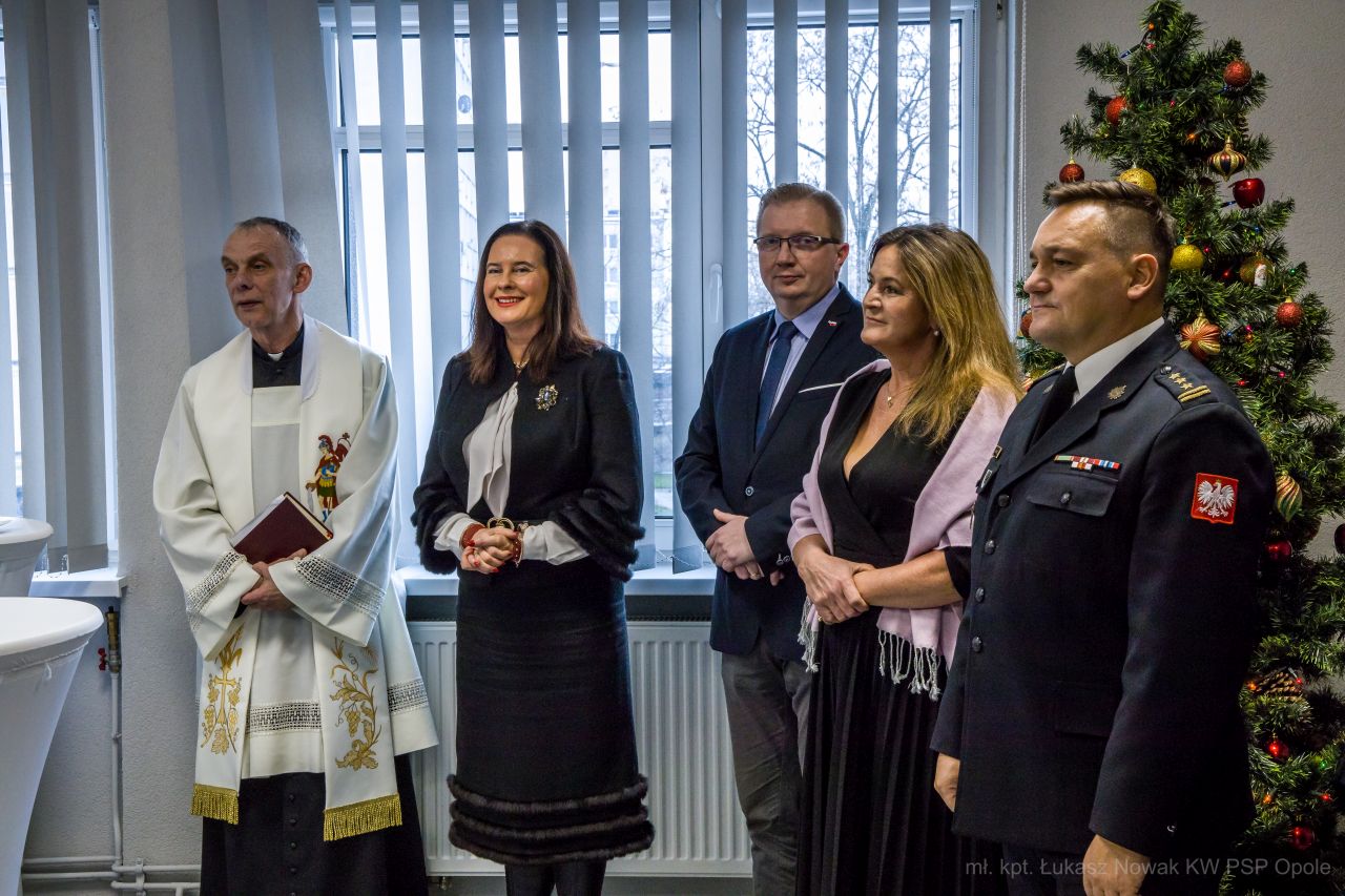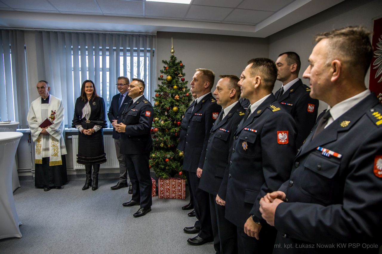 Opolski Komendant Wojewódzki PSP st. bryg. Krzysztof Kędryk oraz zaproszeni goście złożyli życzenia świąteczne wszystkim funkcjonariuszom oraz pracownikom cywilnym.