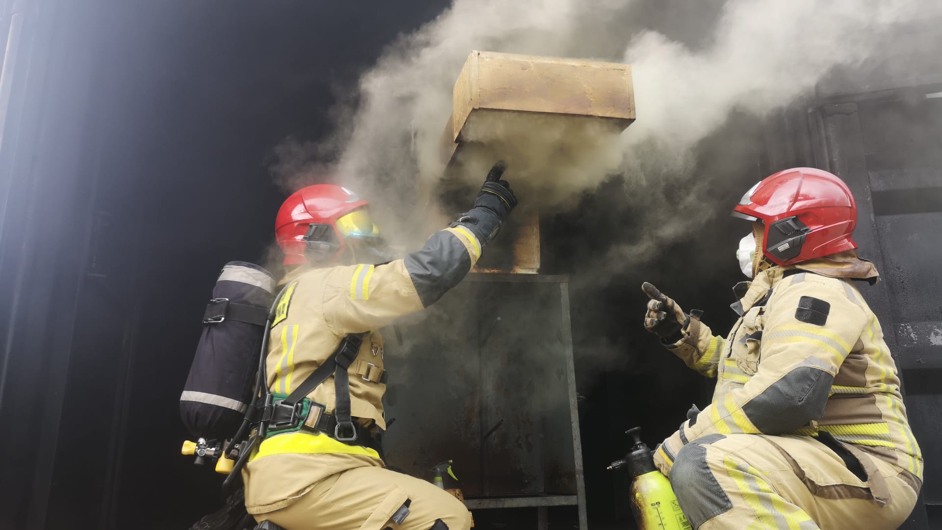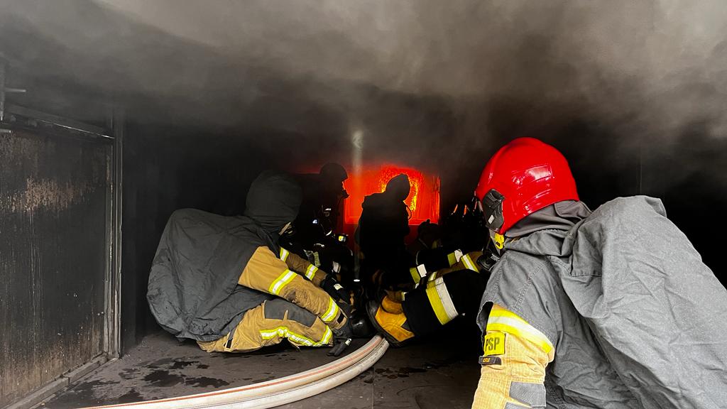 Ćwiczenia praktyczne zakończyły się demonstracją rozwoju pożaru w komorze rozgorzenia.
