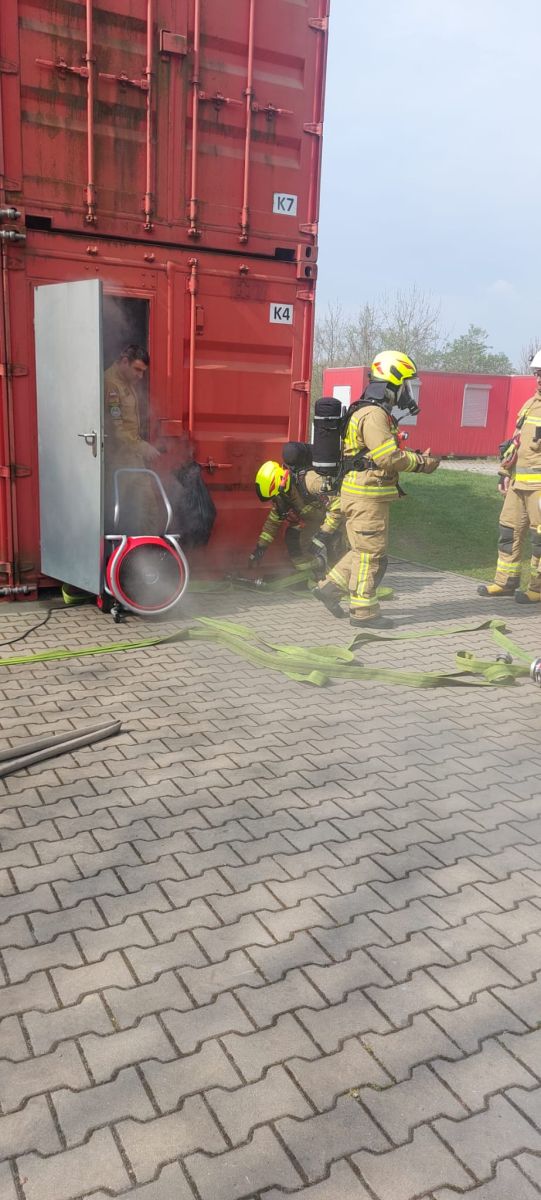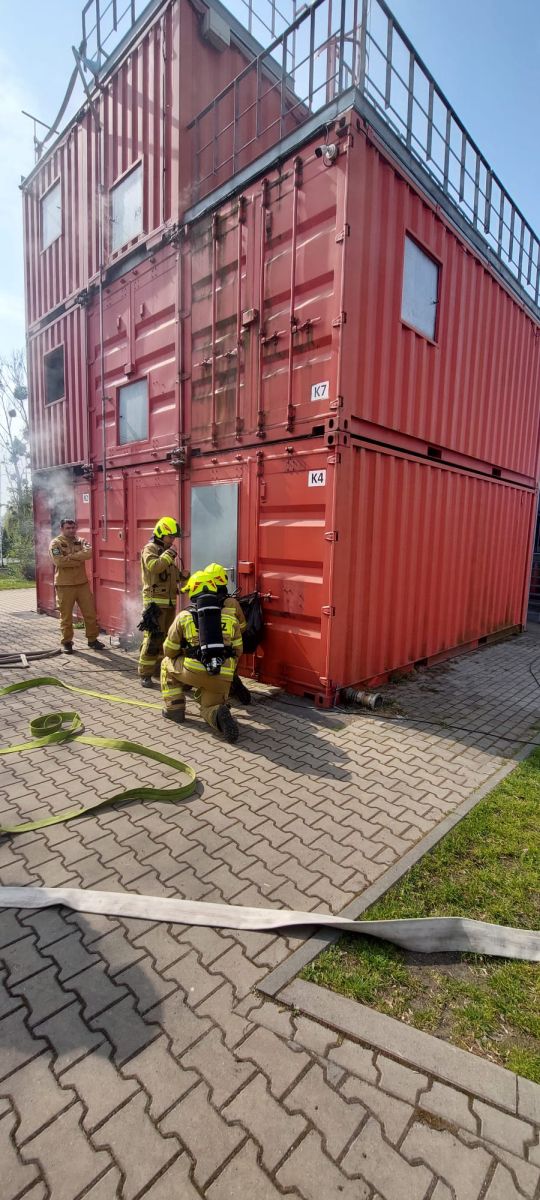 Oprócz części teoretycznej, przeprowadzono również ćwiczenia praktyczne na terenie poligonu szkoleniowego Ośrodka Szkolenia, gdzie strażacy ćwiczyli prowadzenia działań podczas pożarów wewnętrznych.