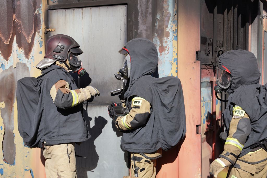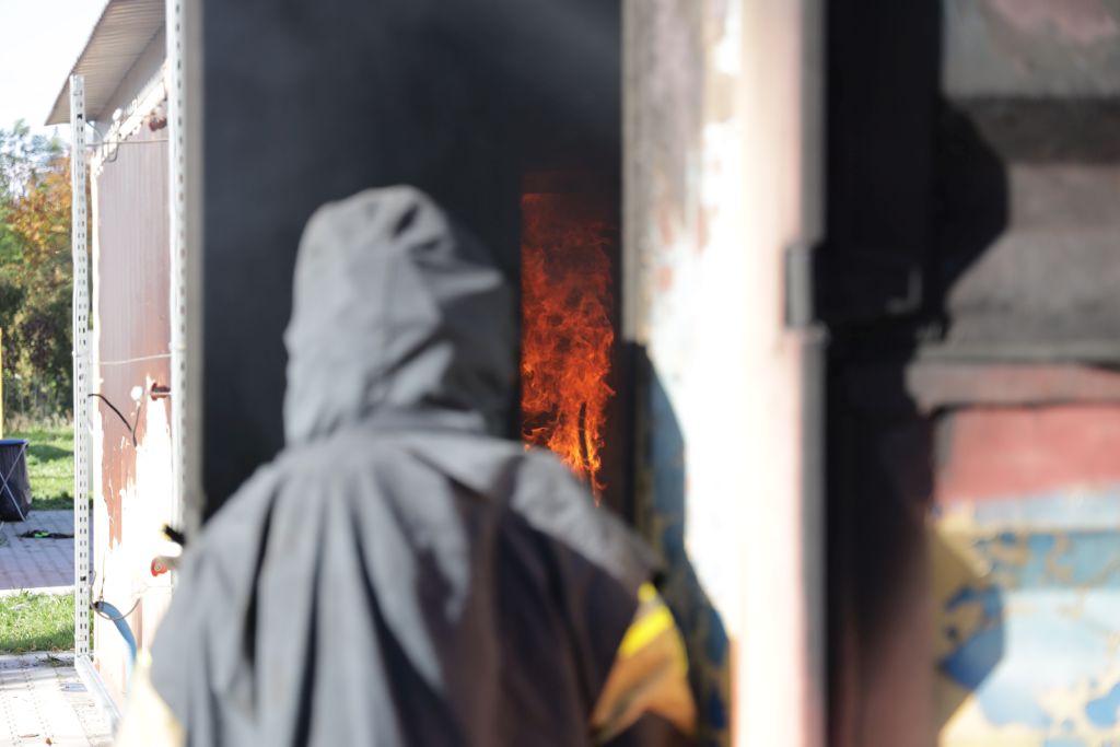 Podczas zajęć praktycznych uczestnicy szkolenia ćwiczyli m.in. techniki operowania prądami gaśniczymi, postępowanie podczas wchodzenia do pomieszczenia objętego pożarem, techniki przeszukiwania pomieszczeń zadymionych oraz prowadzenia wentylacji taktycznej podczas działań ratowniczo-gaśniczych.