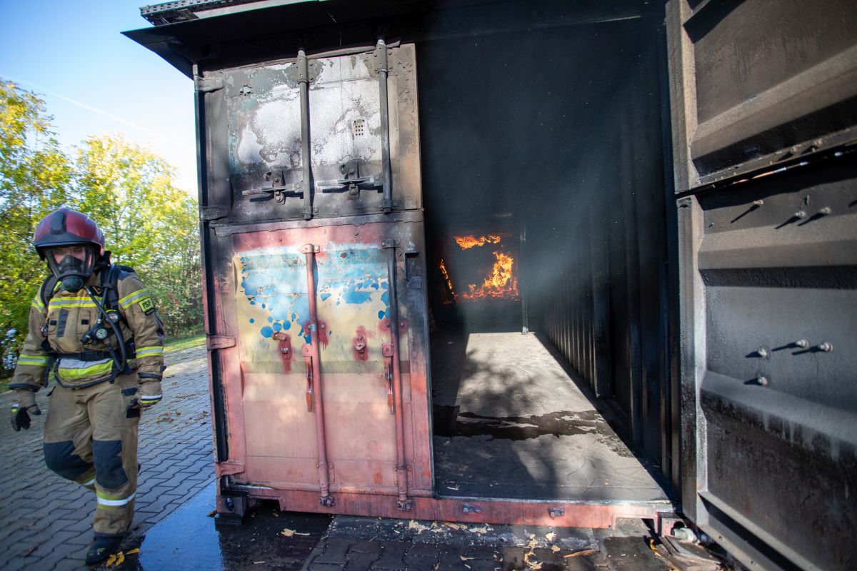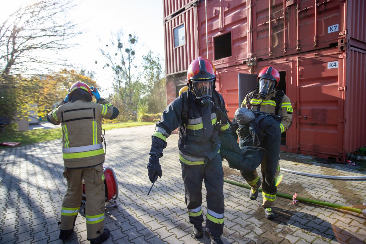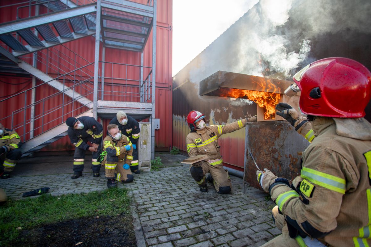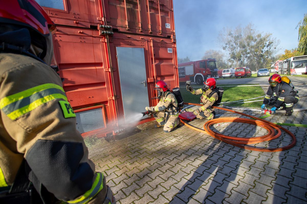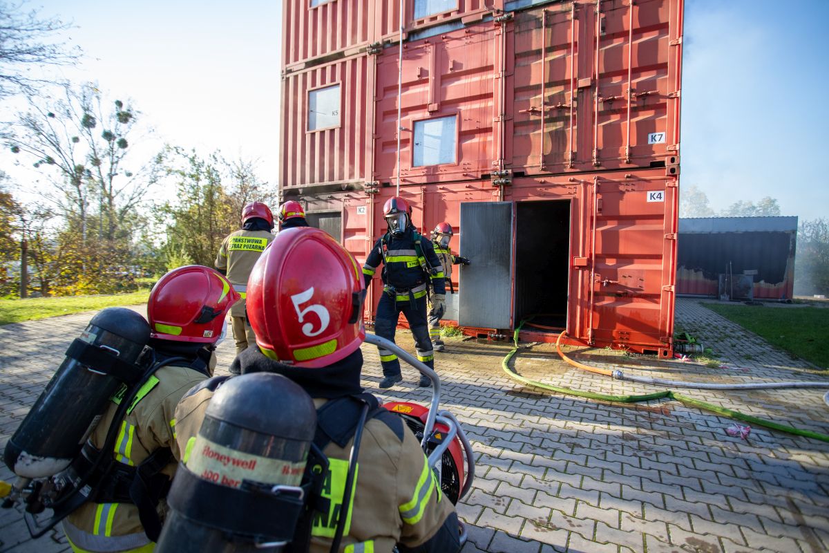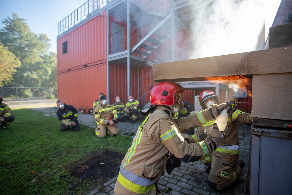 Podczas zajęć praktycznych uczestnicy szkolenia ćwiczyli m.in. techniki operowania prądami gaśniczymi, postępowanie podczas wchodzenia do pomieszczenia objętego pożarem, techniki przeszukiwania pomieszczeń zadymionych oraz prowadzenia wentylacji taktycznej podczas pożarów wewnętrznych.
