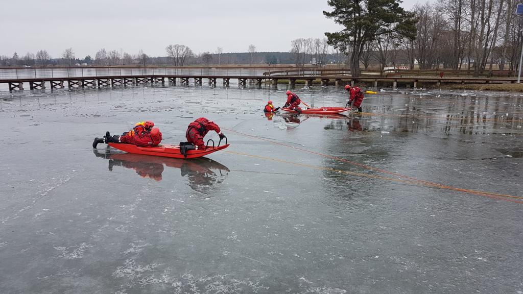 Natomiast ćwiczenia praktyczne zostały przeprowadzone na akwenie w Nowych Siołkowicach. W trakcie ćwiczeń strażacy ćwiczyli techniki poruszania się po lodzie, samoratownictwo z załamanego lodu za pomocą kolców lodowych oraz ewakuacje osób poszkodowanych przy zastosowaniu różnego sprzętu będącego na wyposażeniu jednostek m.in. sani lodowych, deski ortopedycznej czy drabiny nasadkowej.