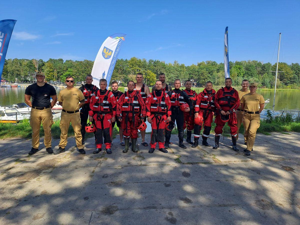 Szkolenie ukończyło 12 funkcjonariuszy PSP województwa opolskiego, którzy doskonalili swoje umiejętności z technik pływania, ewakuacji poszkodowanych z wody przy pomocy sprzętów ratowniczych tj. rzutek, „węgorzy”, kół ratowniczych, pływanie w zestawie ABC.