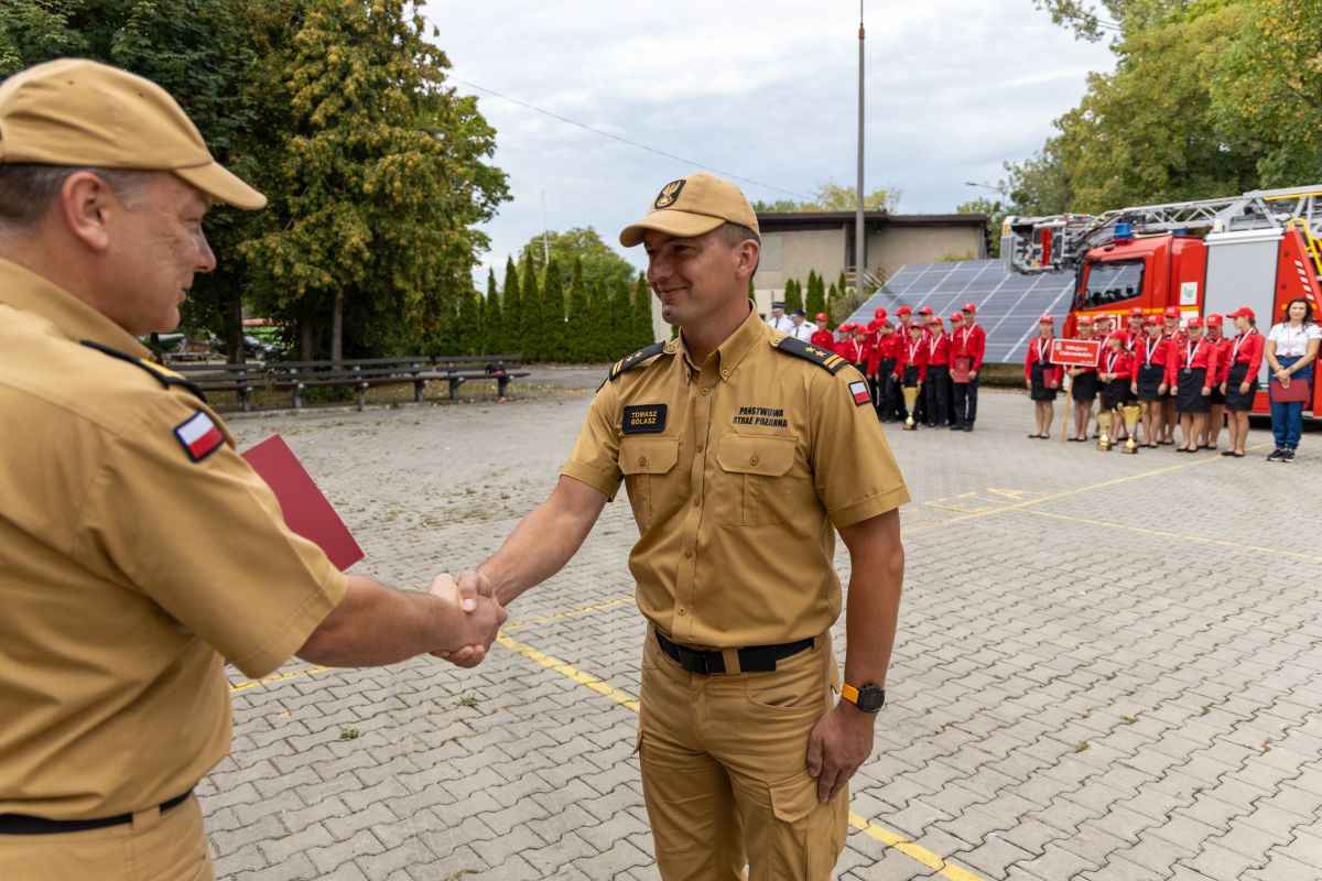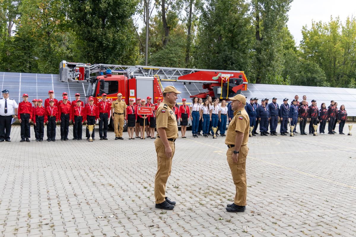 Uroczysta zbiórka z druhnami i druhami OSP po Ogólnopolskich Zawodach Sportowo-Pożarniczych w Stężycy