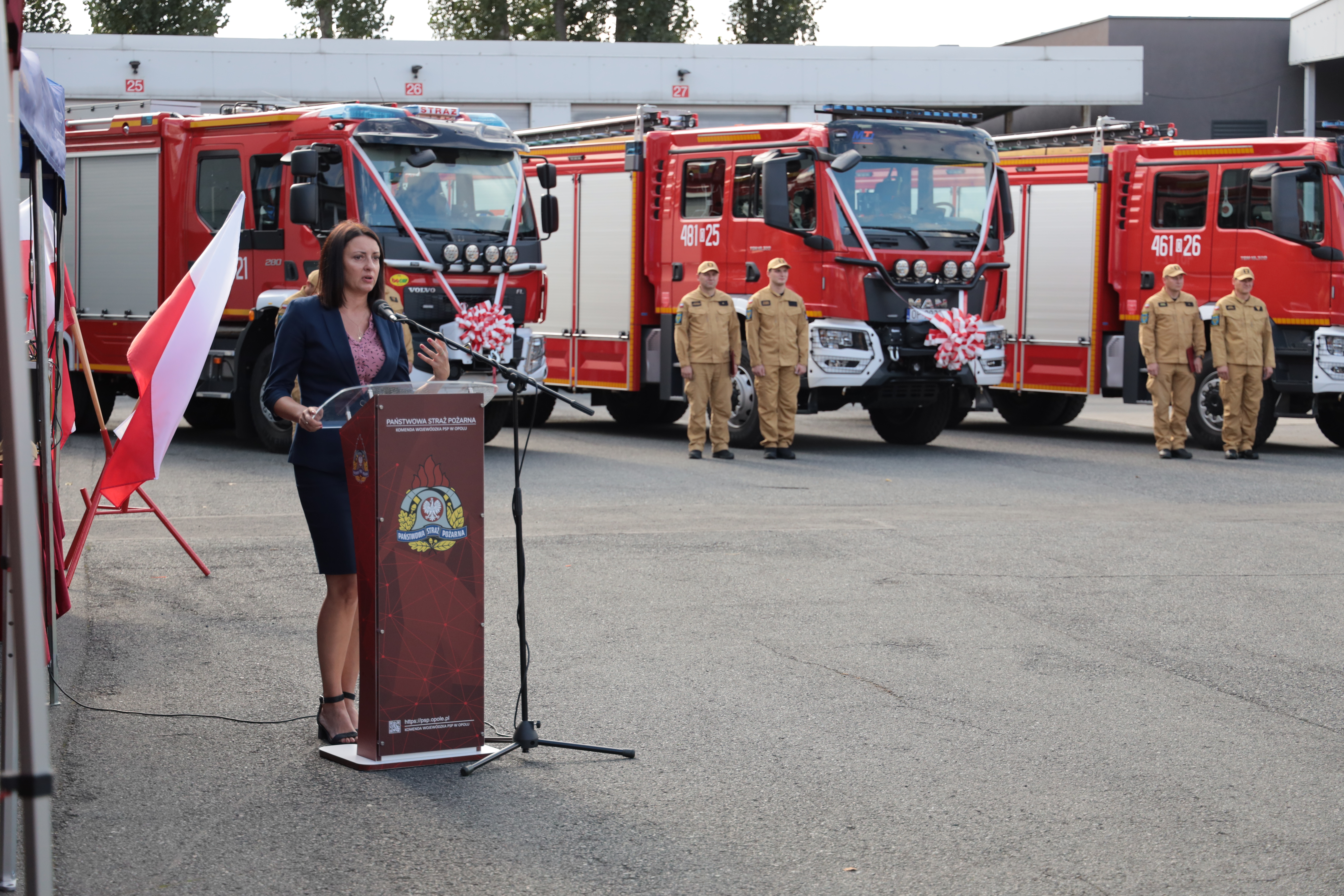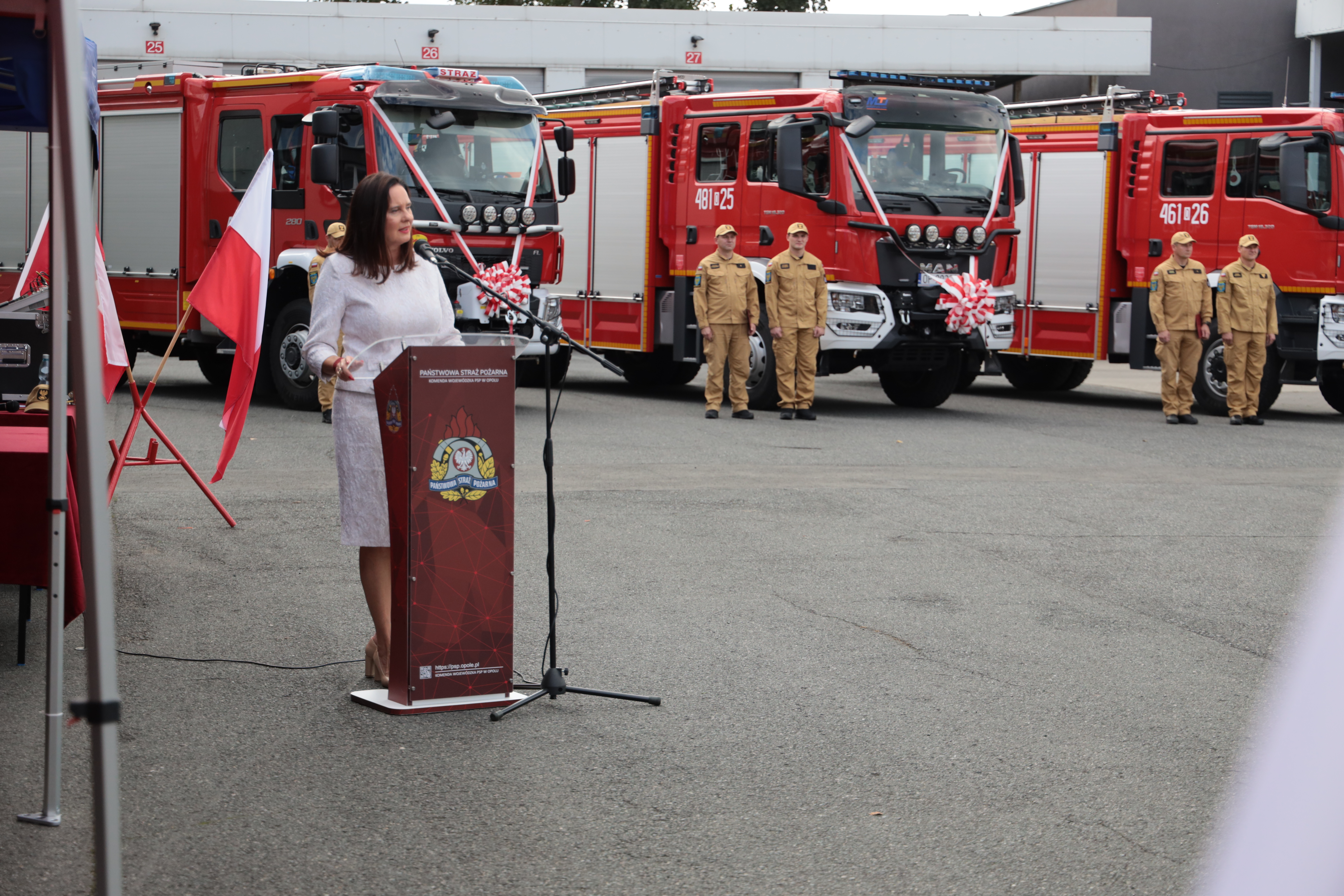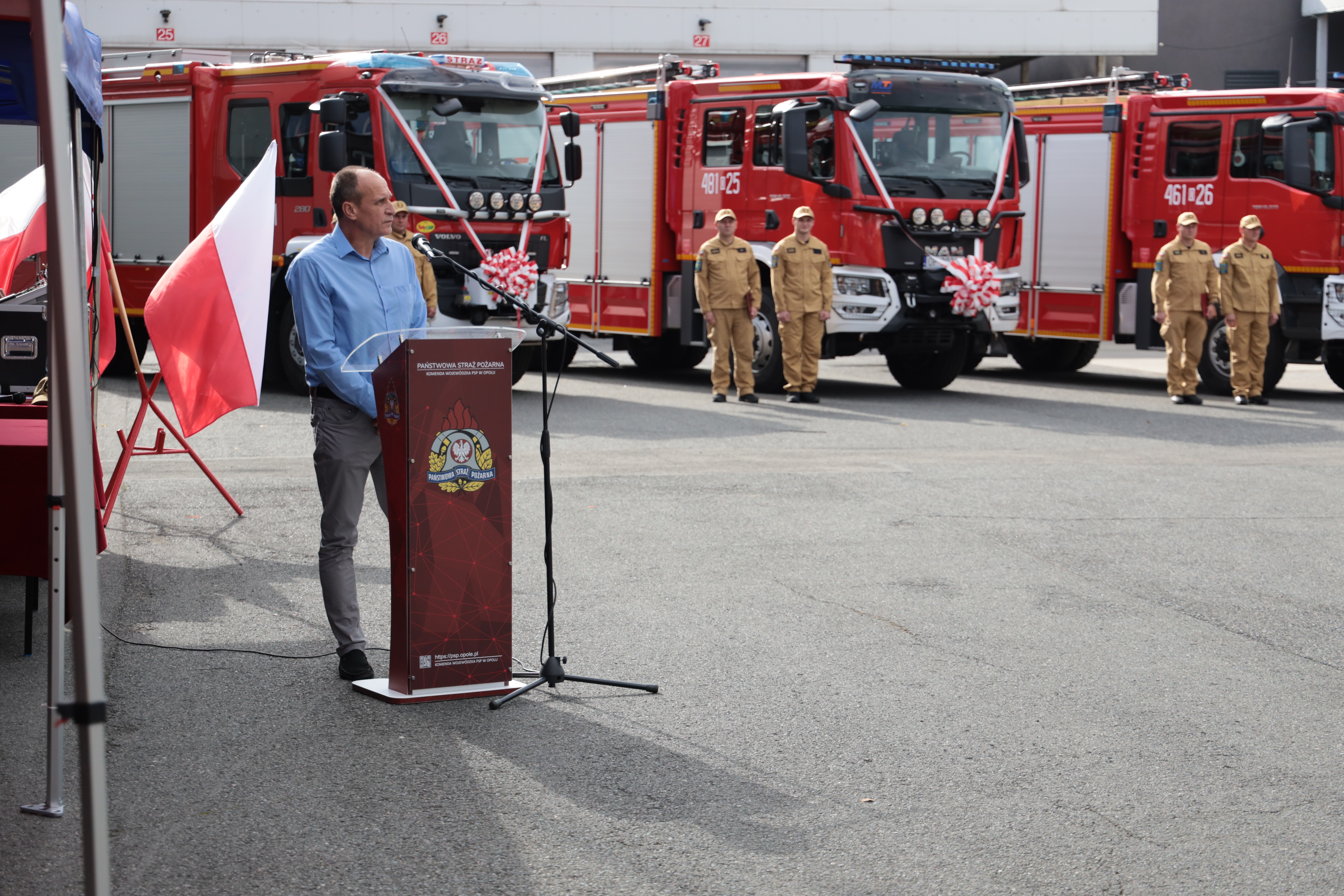 Kolejno jednostkom Państwowej Straży Pożarnej woj. opolskiego przekazano trzy pojazdy pożarnicze, a jednostkom PSP i OSP woj. opolskiego przekazano dziewięć łodzi ratowniczych.