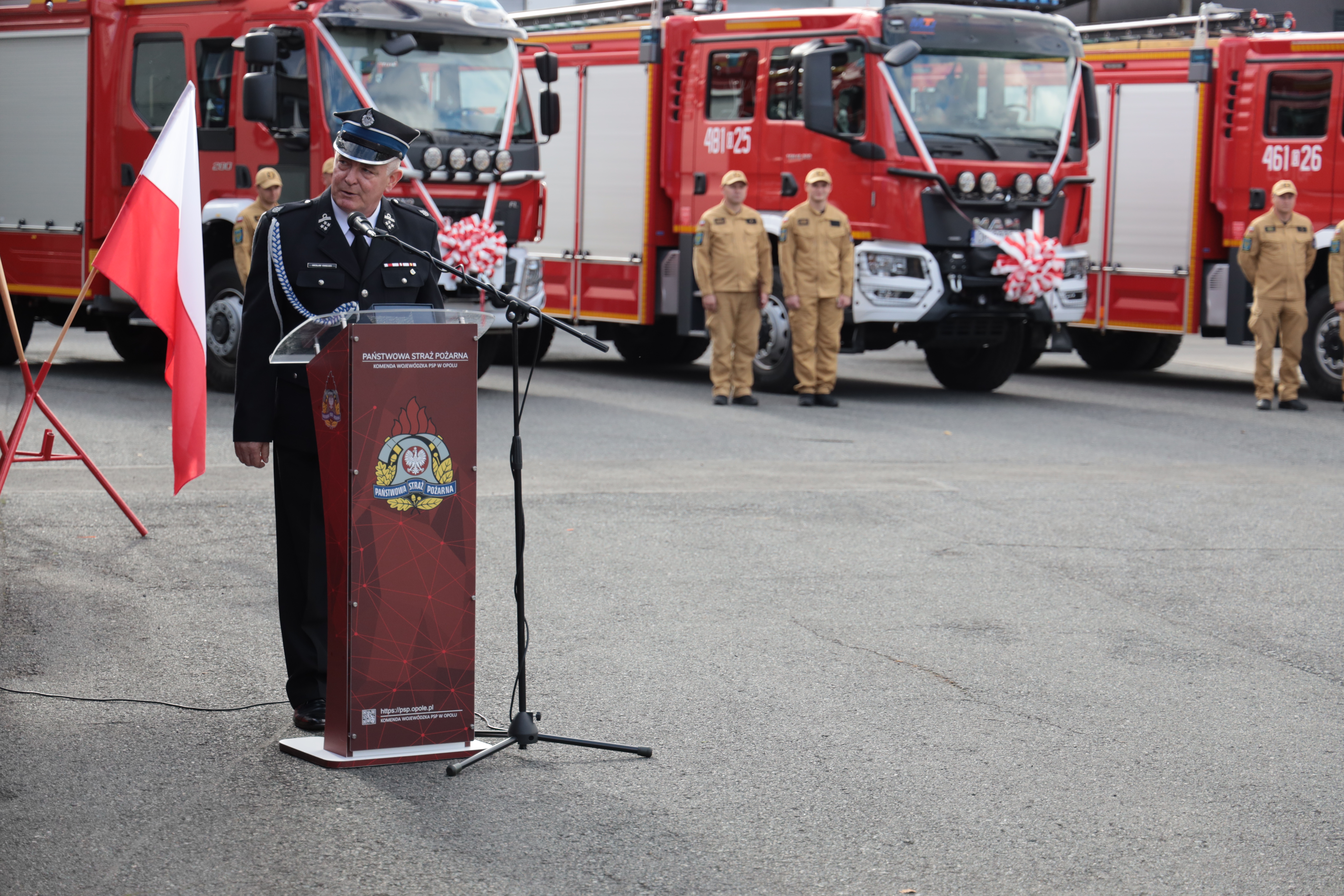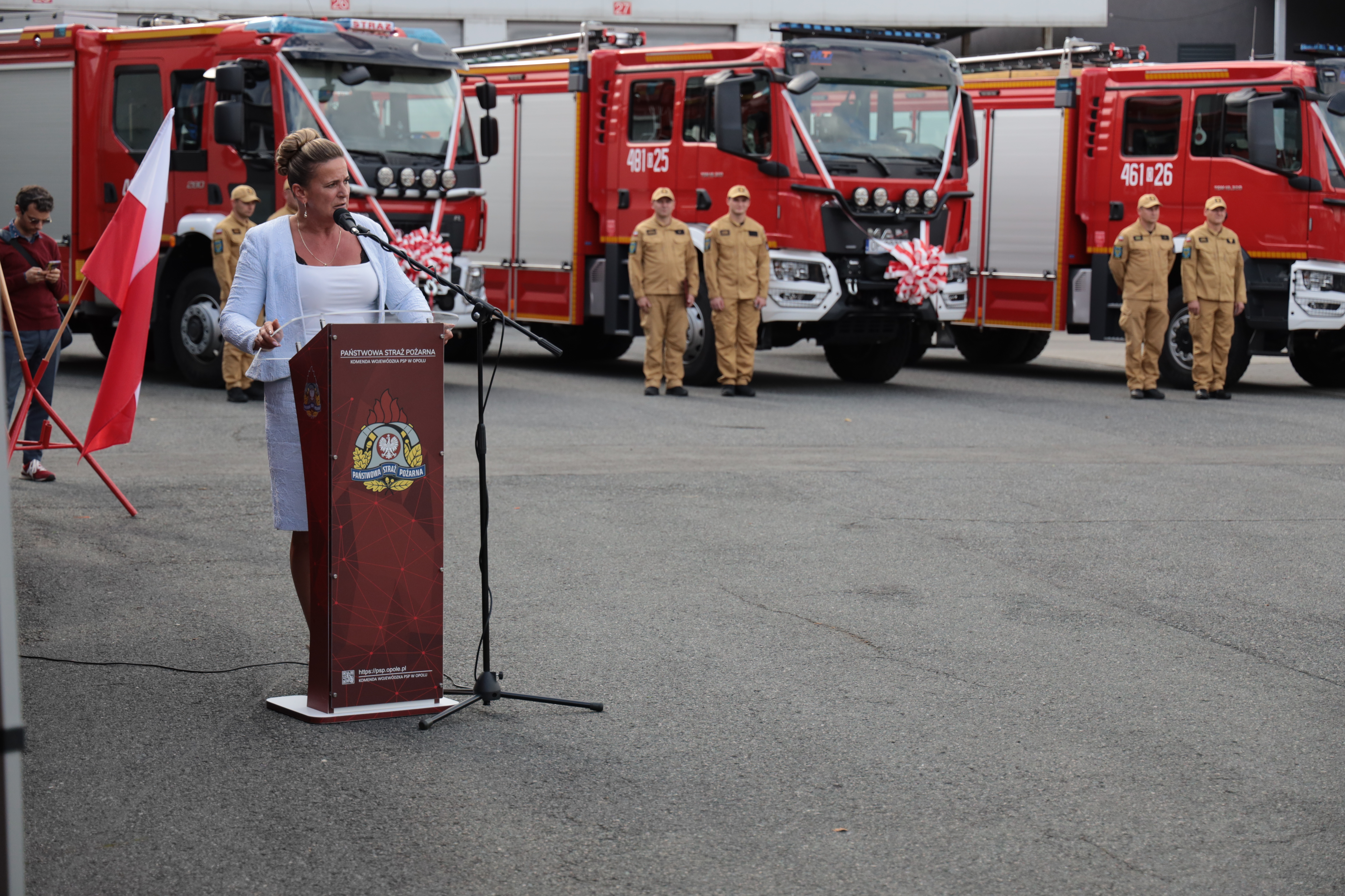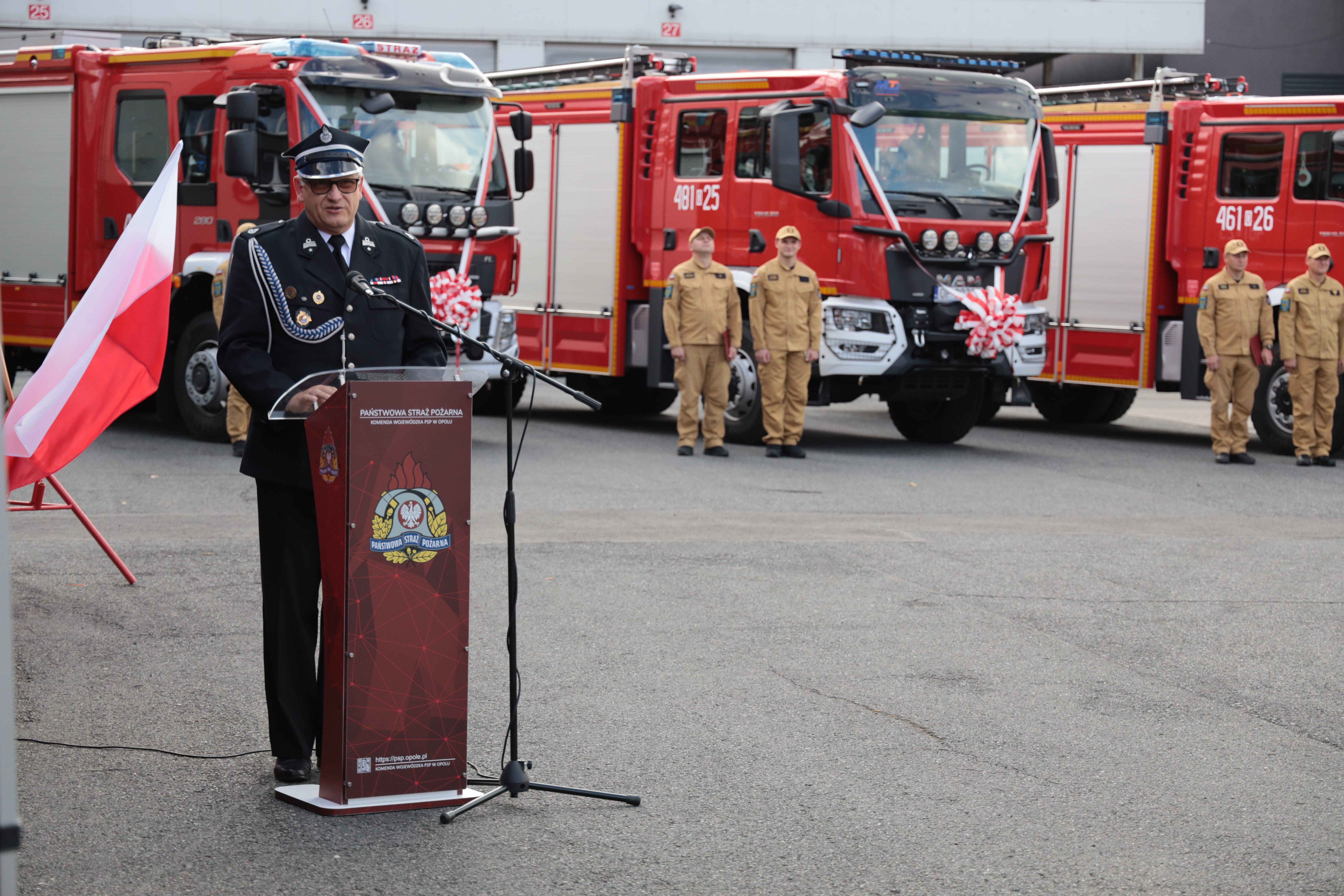 Kolejno jednostkom Państwowej Straży Pożarnej woj. opolskiego przekazano trzy pojazdy pożarnicze, a jednostkom PSP i OSP woj. opolskiego przekazano dziewięć łodzi ratowniczych.