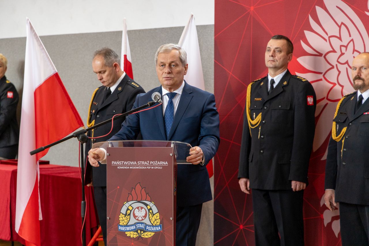 - Drodzy Strażacy dziękuję Wam przede wszystkim za zaangażowanie, ofiarność i profesjonalizm w codziennej służbie państwu i jego obywatelom. Dziękuję za stałą gotowość do realizacji trudnych i odpowiedzialnych zadań, z którymi musicie się mierzyć. Przyświecające Wam cele i ideały sprawiają, że to, co robicie każdego dnia jest ofiarowaniem siebie dla innych – przekazał do zgromadzonych Opolski Komendant Wojewódzki PSP nadbryg. Krzysztof Kędryk