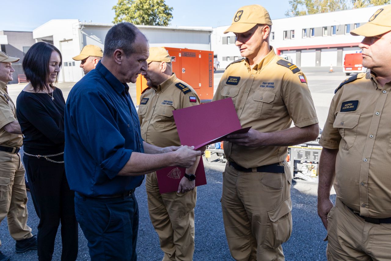 - W dniu dzisiejszym 8 jednostek Państwowej Straży Pożarnej z województwa opolskiego otrzyma łącznie 14 agregatów prądotwórczych zakupionych przez Rządową Agencję Rezerw Strategicznych (RARS) i przekazanych za pośrednictwem Komendy Głównej Państwowej Straży Pożarnej na kwotę ponad 324 tysięcy złotych – przekazał w swoim przemówieniu st. bryg. Wojciech Nawara Zastępca Opolskiego Komendanta Wojewódzkiego PSP.