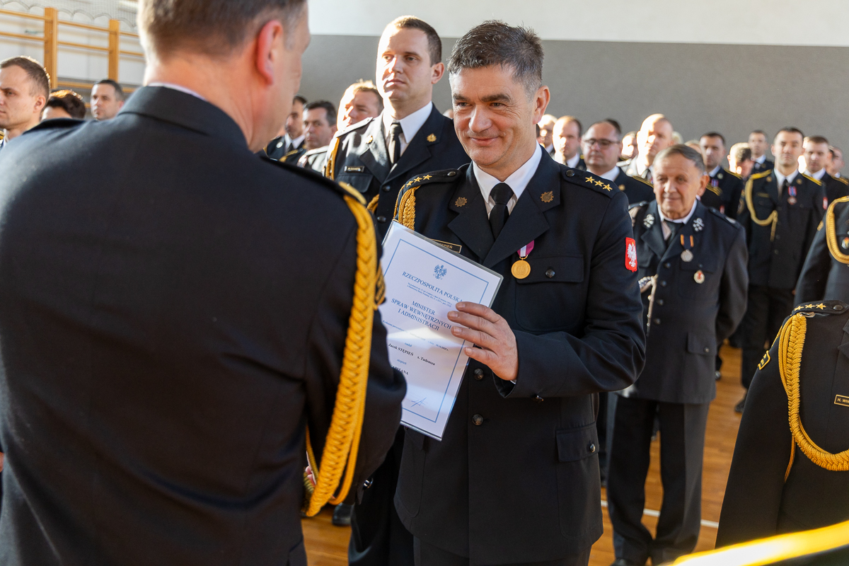- Odznaki „Zasłużony dla Ochrony Przeciwpożarowej” – otrzymało 39 osób, w tym 35 funkcjonariuszy PSP,
