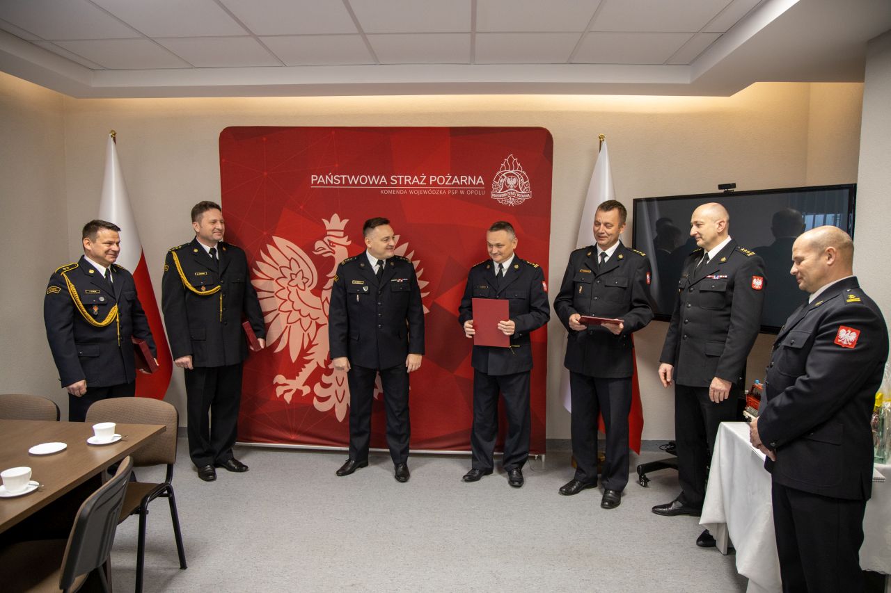 24 lutego 2023 roku w Komendzie Wojewódzkiej Państwowej Straży Pożarnej w Opolu odbyła się uroczysta zbiórka strażaków żegnających dwóch funkcjonariuszy PSP przechodzących na zaopatrzenie emerytalne: st. kpt. Mirosława Wróbla oraz st. asp. Janusza Dybka wykładowców Ośrodka Szkolenia KW PSP w Opolu.