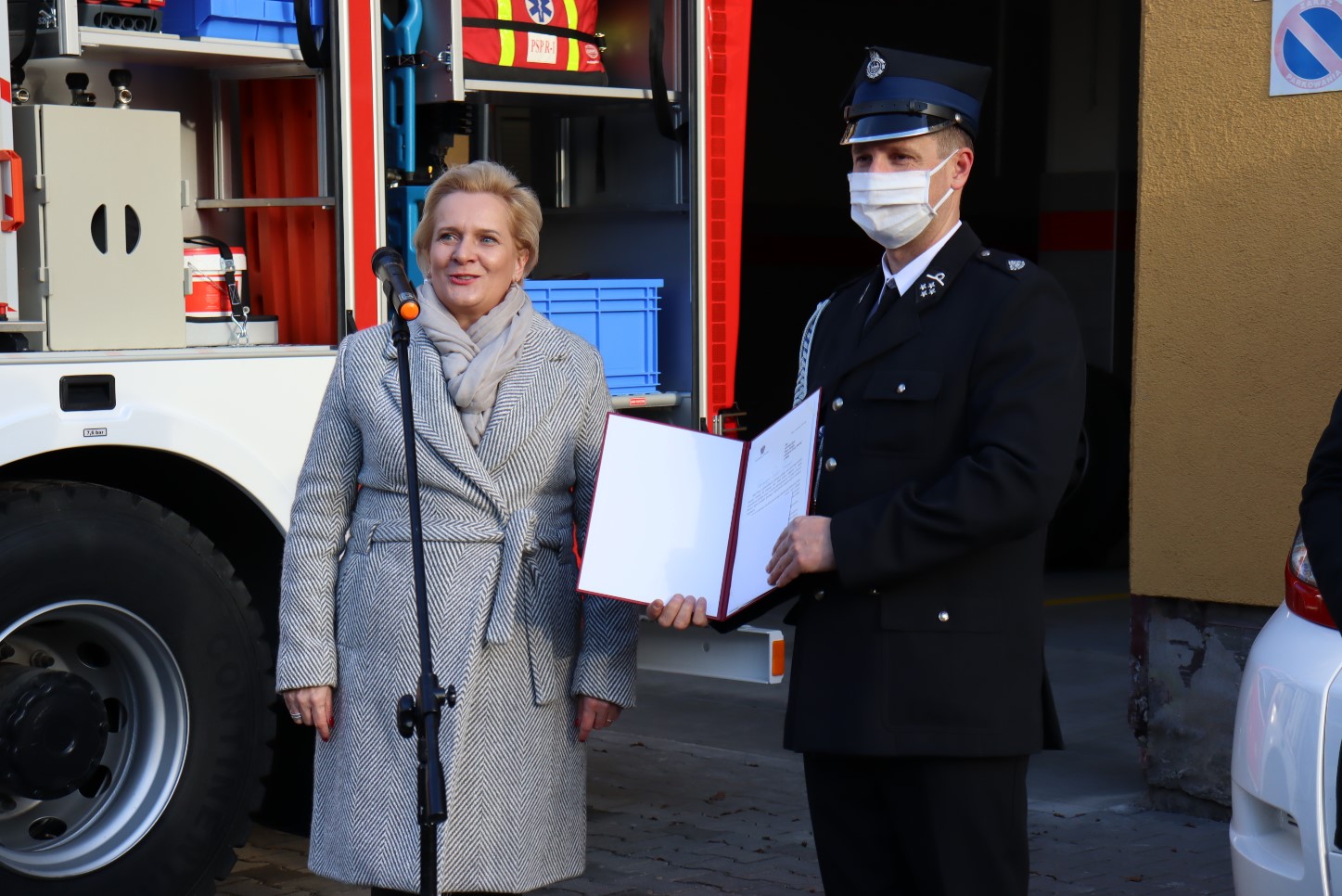 Uroczyste przekazanie nowego samochodu pożarniczego dla OSP Biała