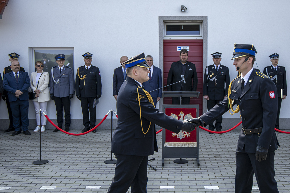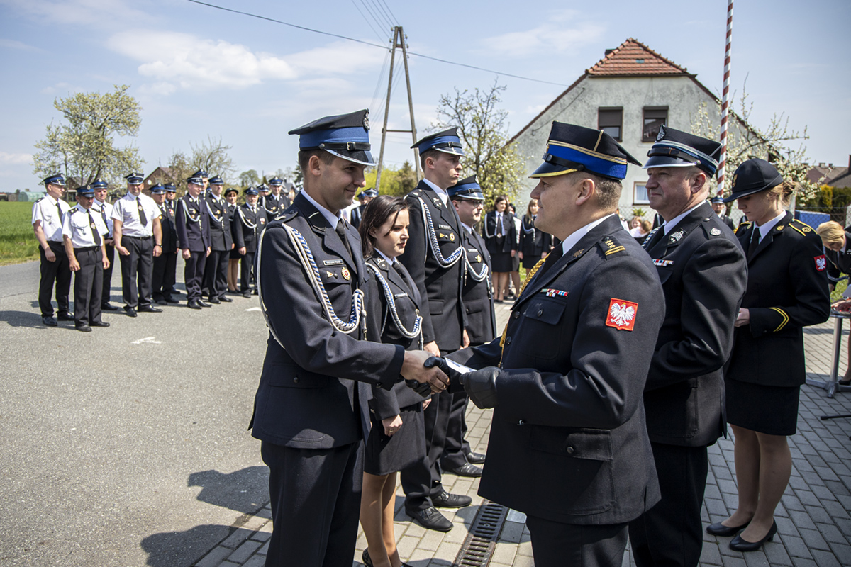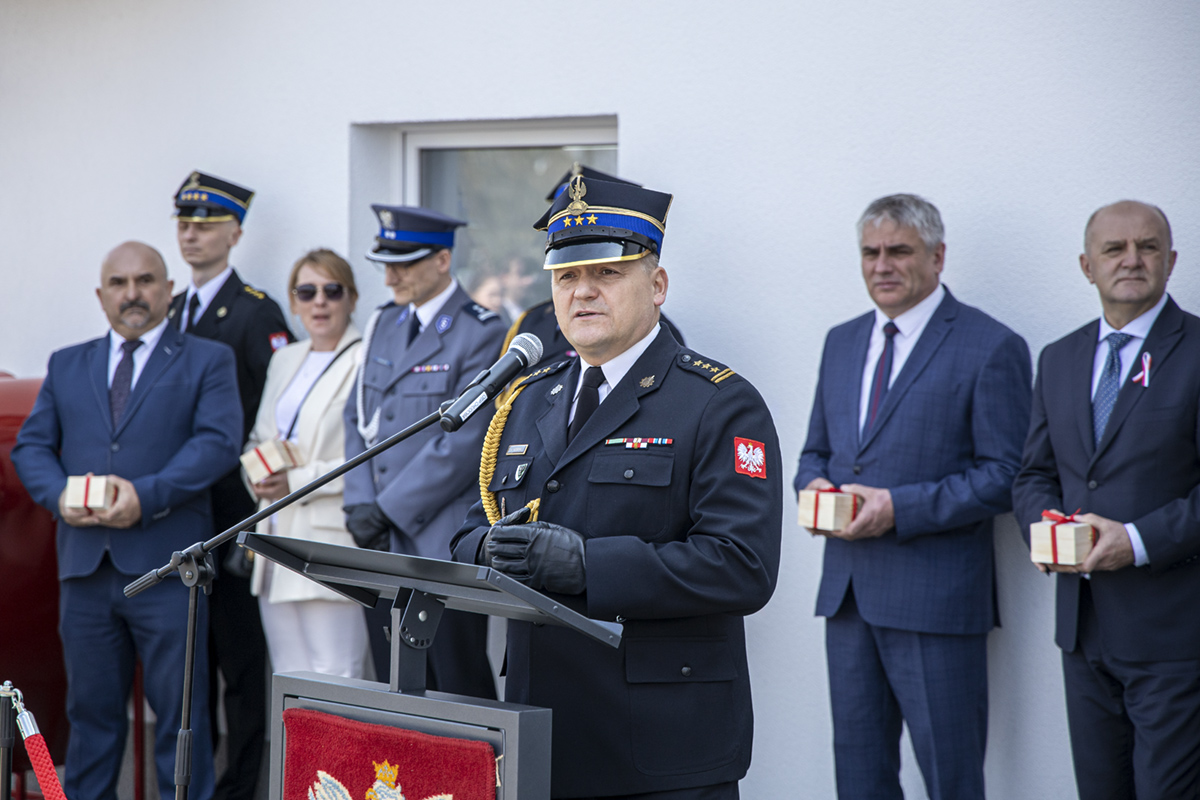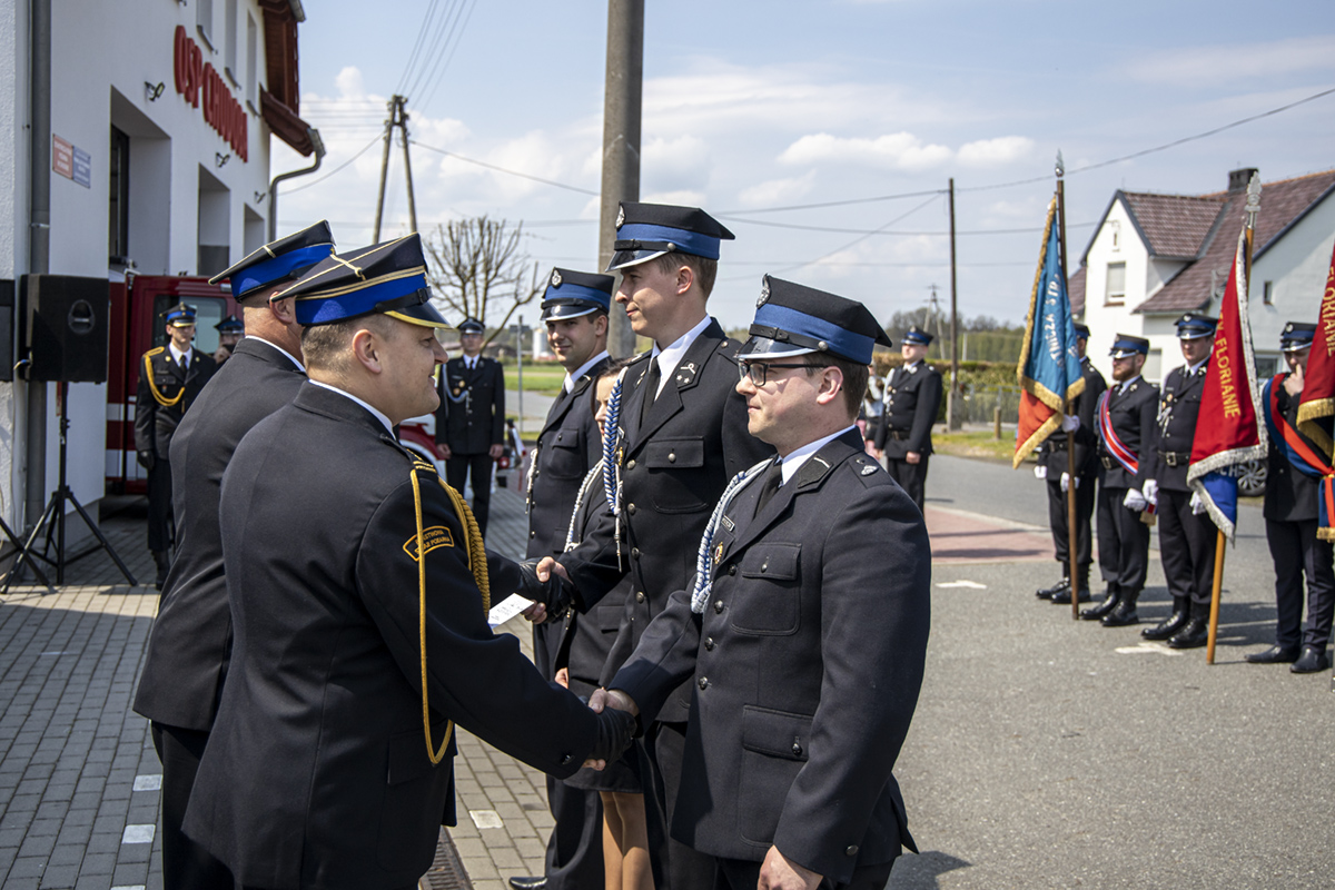 Opolski Komendant Wojewódzki Państwowej Straży Pożarnej w Opolu st. bryg. Krzysztof Kędryk 3 maja 2022 roku wziął udział w uroczystości przekazania fabrycznie nowego samochodu ratowniczo-gaśniczego MAN dla jednostki Ochotniczej Straży Pożarnej w Chudobie.