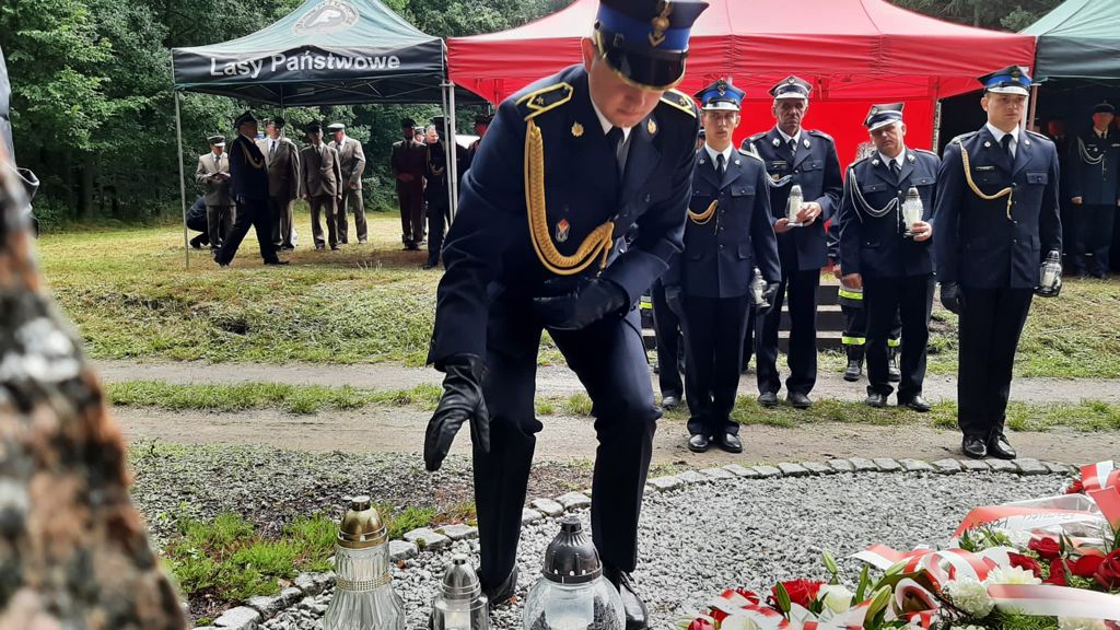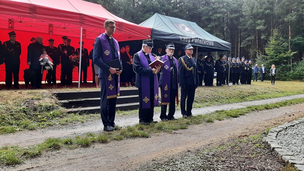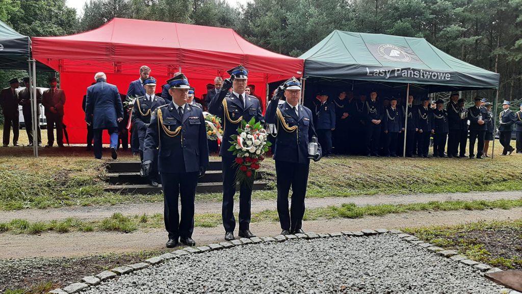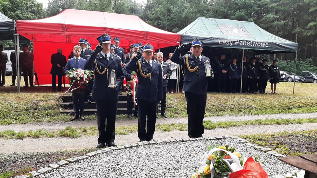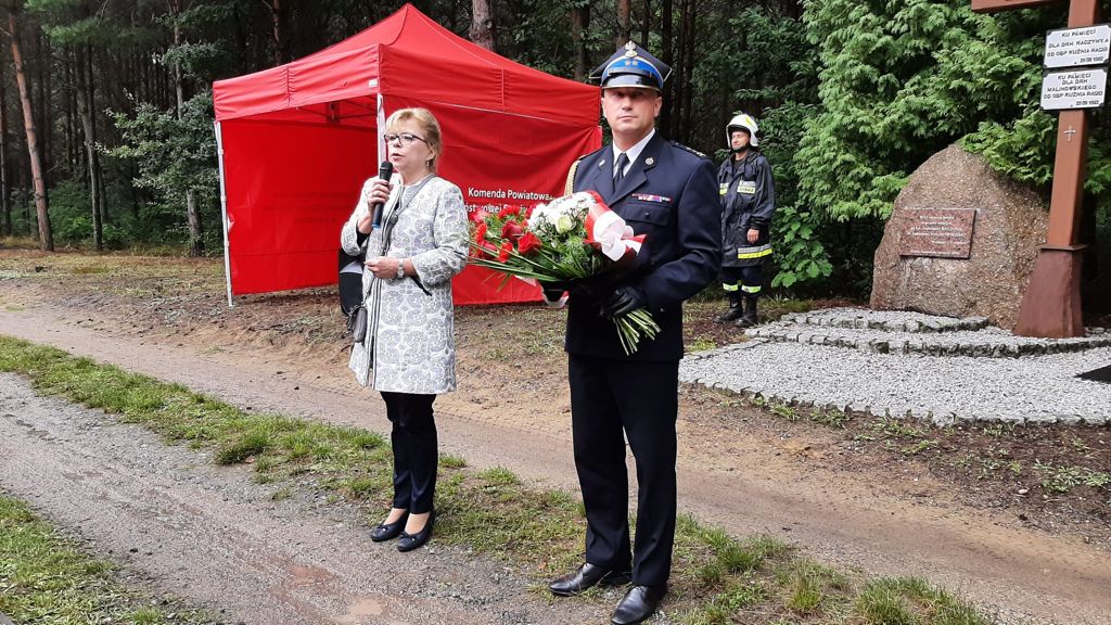 Władze rządowe, samorządowe, strażacy i leśnicy zgromadzili się na uroczystości w miejscu tragicznej śmierci mł. kpt. Andrzej Kaczyny i dh Andrzeja Malinowskiego aby oddać hołd poległym strażakom.