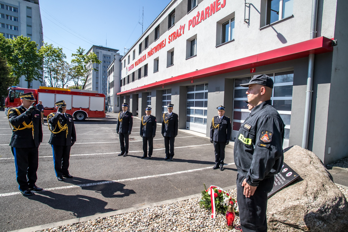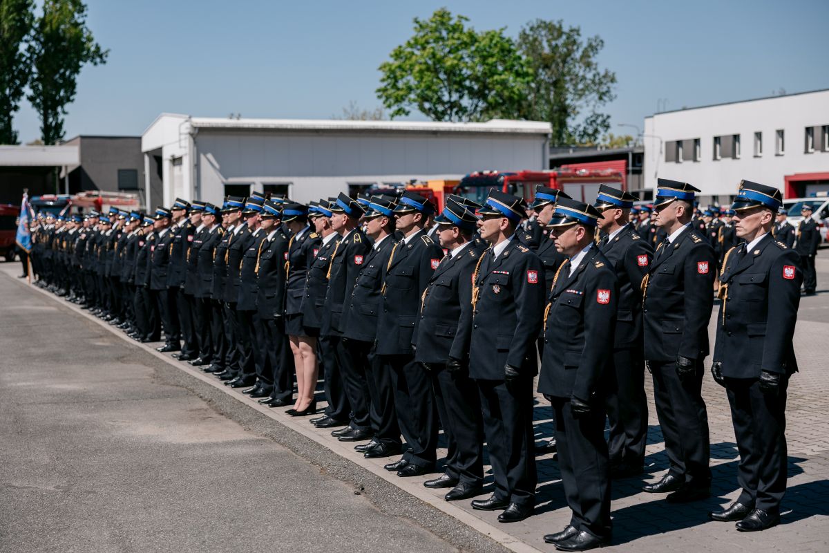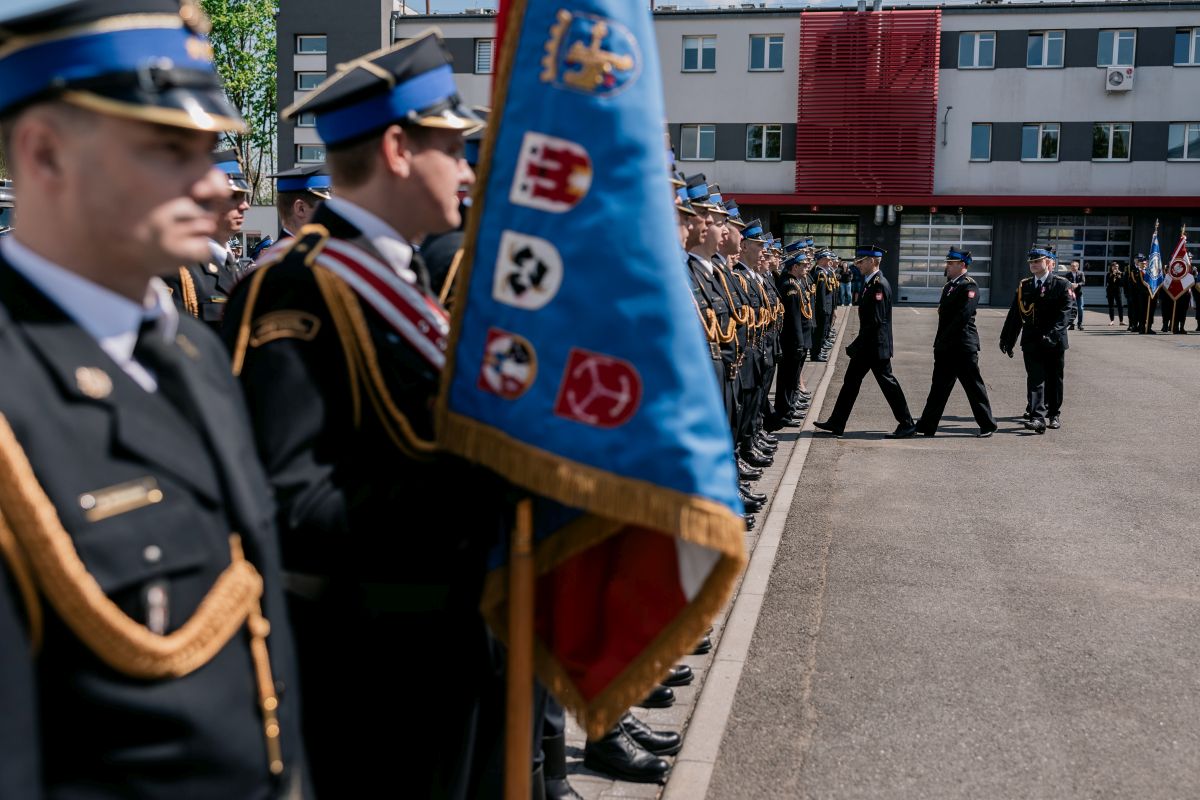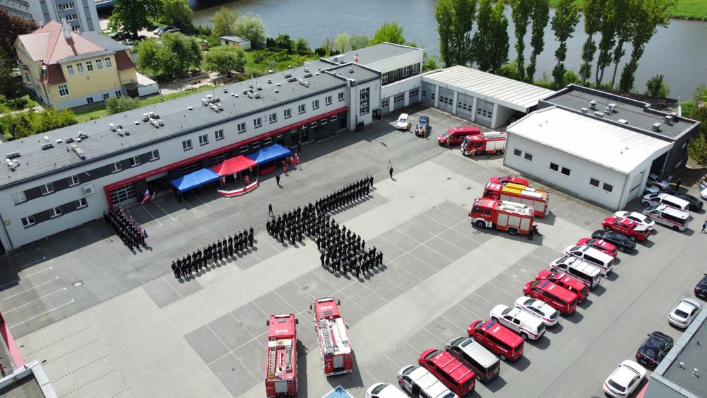 12.05.2023 roku na placu wewnętrznym Komendy Wojewódzkiej Państwowej Straży Pożarnej w Opolu odbył się uroczysty apel z okazji Dnia Strażaka.