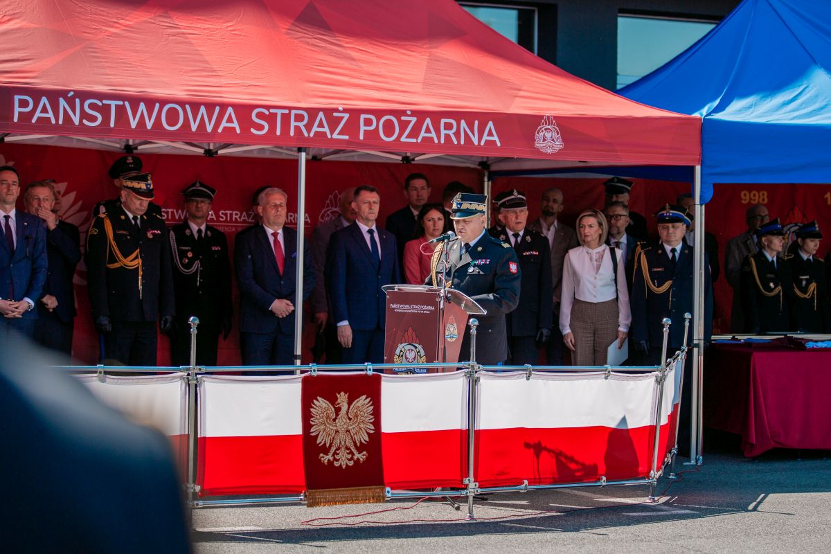 Zastępca Komendanta Głównego PSP nadbryg. Arkadiusz Przybyła podziękował za służbę i pracę wszystkim związanym z ochroną przeciwpożarową w regionie oraz pogratulował wszystkim awansowanym, odznaczonym i wyróżnionym.