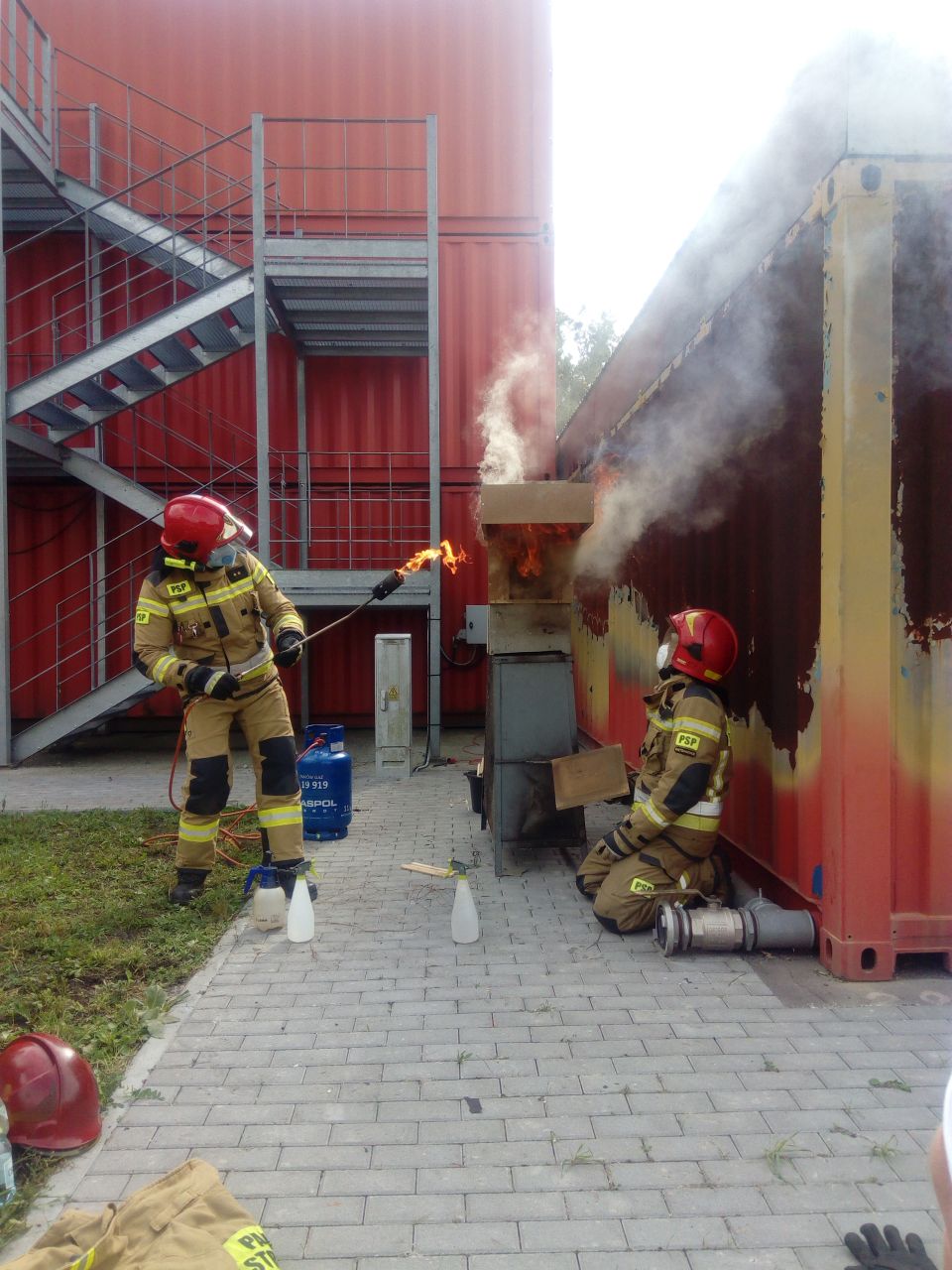 Zajęcia praktyczne odbywały się na terenie poligonu Ośrodka Szkolenia KW PSP w Opolu w modułowym, wielofunkcyjnym trenażerze ratowniczym w części ogniowej jak i taktycznej. W trakcie ćwiczeń praktycznych kandydaci na instruktorów doskonalili umiejętności z zakresu m.in: technik operowania prądami gaśniczymi, postępowania podczas otwierania drzwi do pomieszczenia objętego pożarem, przeszukiwania pomieszczeń zadymionych oraz prowadzenia wentylacji taktycznej podczas działań gaśniczych.