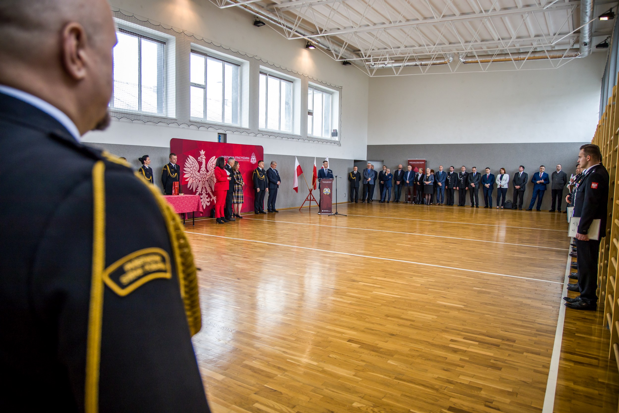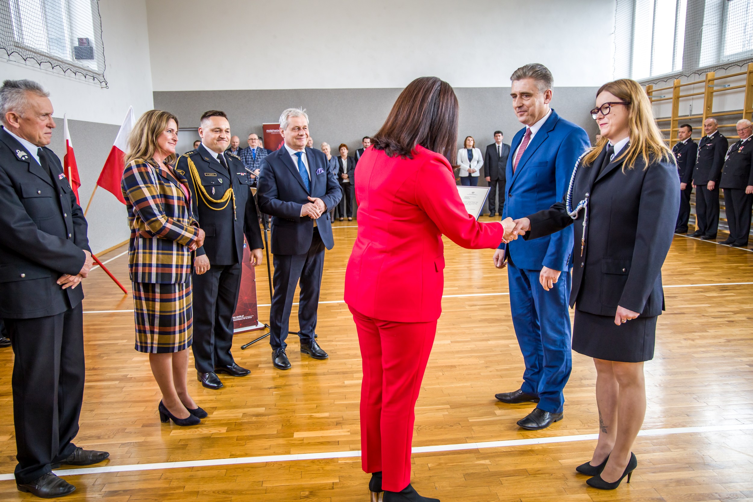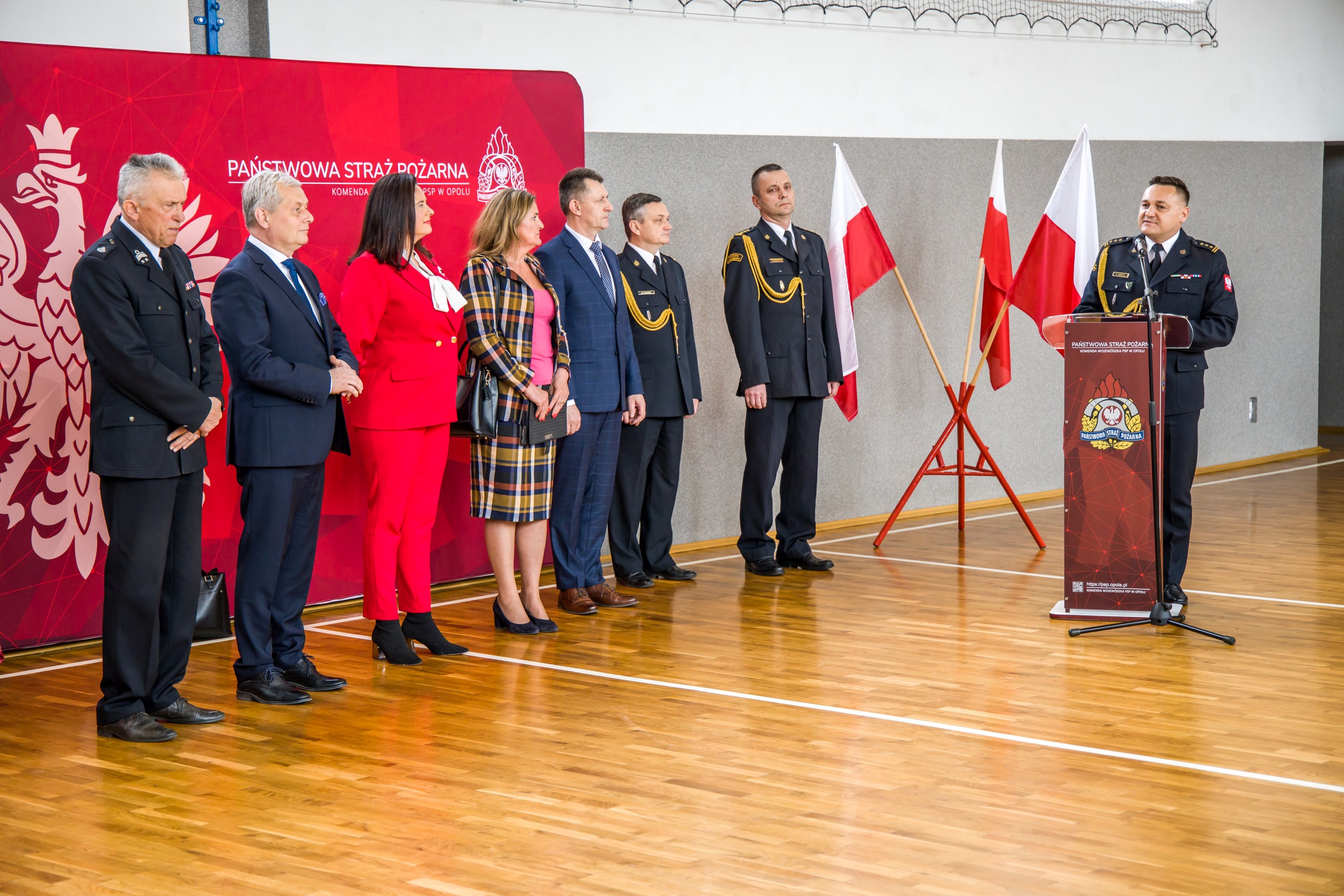 Uroczysta zbiórka odbyła się w siedzibie Komendy Wojewódzkiej Państwowej Straży Pożarnej w Opolu. Wśród zaproszonych gości byli Pani Violetta Porowska Poseł na Sejm RP, Pani Katarzyna Czochara Poseł na Sejm RP, Pan Sławomir Kłosowski Wojewoda Opolski, Pan Andrzej Borowski Prezes Zarządu Oddziału Wojewódzkiego Związku OSP RP, Pan Jerzy Naszkiewicz Zastępca Prezesa Zarządu Wojewódzkiego Funduszu Ochrony Środowiska i Gospodarki Wodnej w Opolu, Pan Dariusz Sitko Dyrektor Biura Wojewody Opolskiego, Wójtowie, Burmistrzowie oraz samorządowcy poszczególnych gmin. W zbiórce uczestniczyli ponadto Komendanci Powiatowi i Miejski PSP województwa opolskiego oraz Prezesi, druhny i druhowie jednostek OSP województwa opolskiego, które otrzymywały promesy.