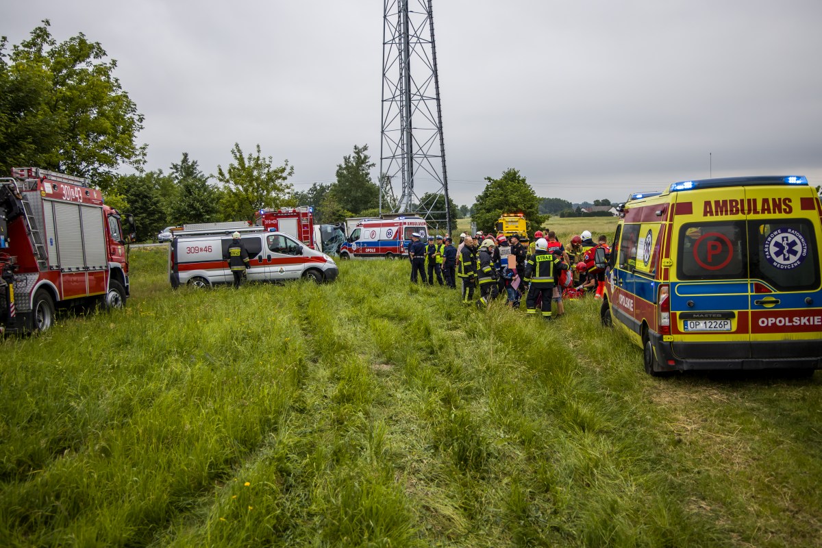 23 czerwca 2021 roku o godzinie 9:09 Dyżurny Stanowiska Kierowania Komendanta Miejskiego Państwowej Straży Pożarnej w Opolu otrzymał zgłoszenie o wypadku autokaru na drodze krajowej nr 45 w miejscowości Jełowa.