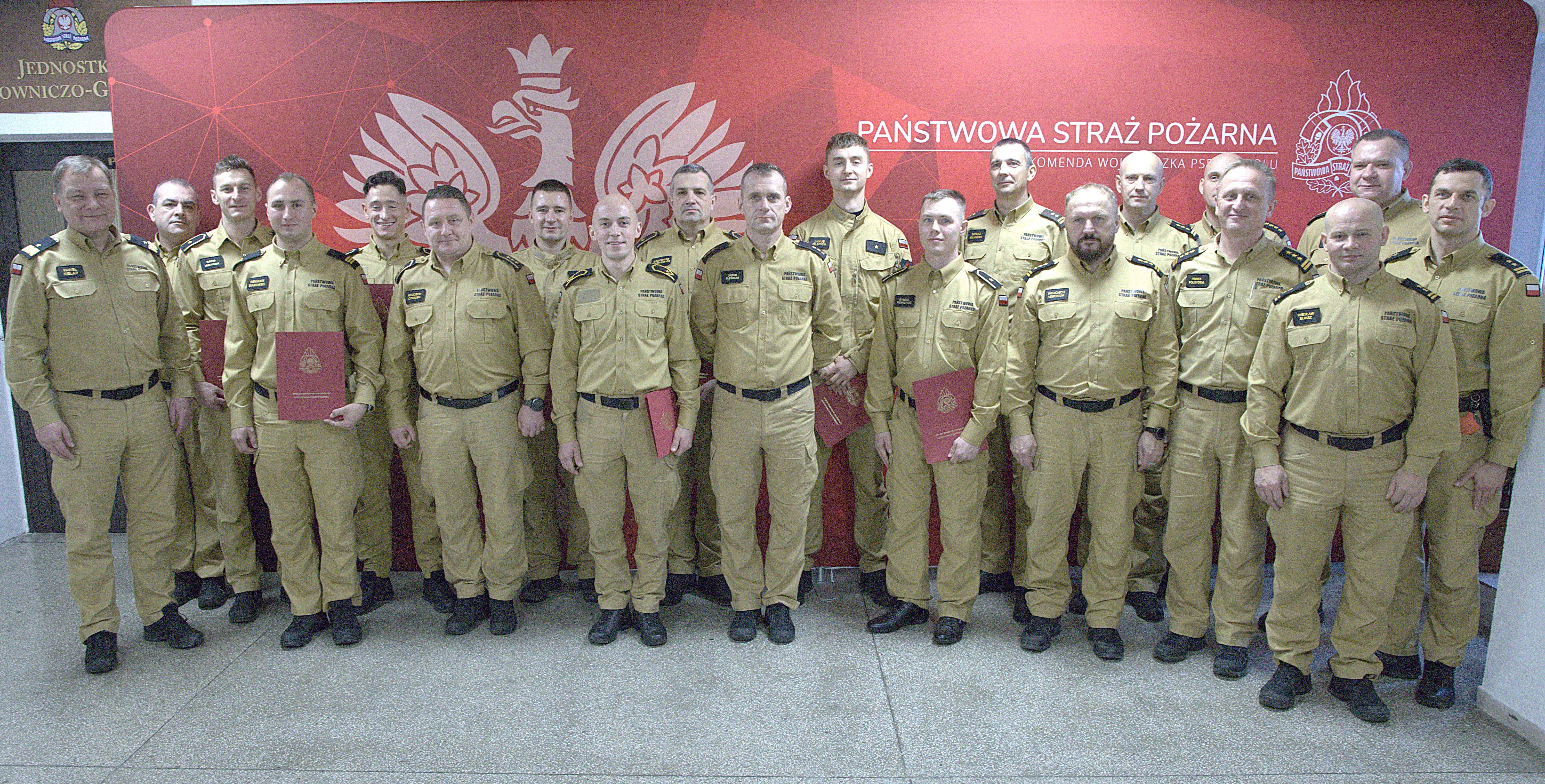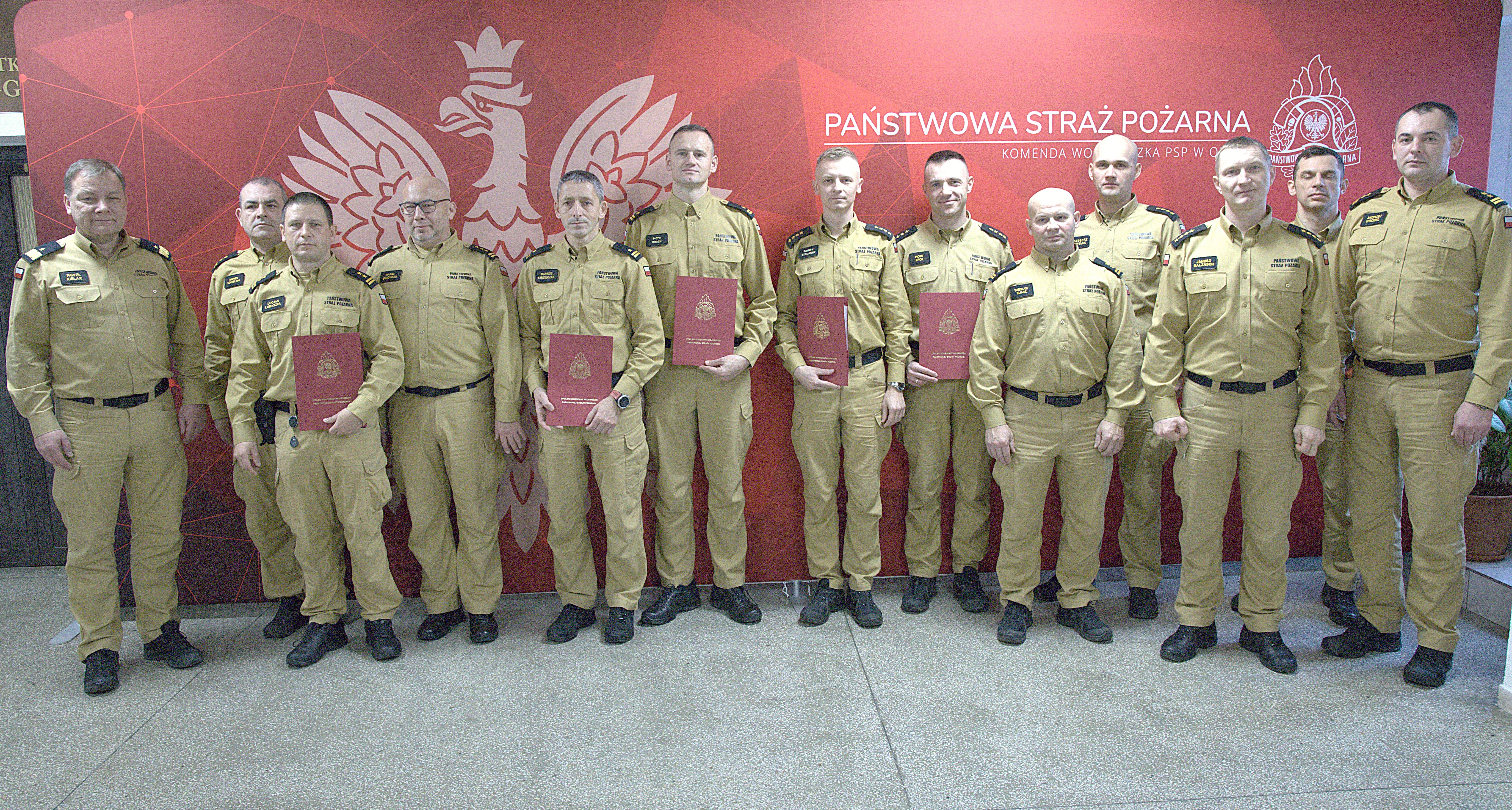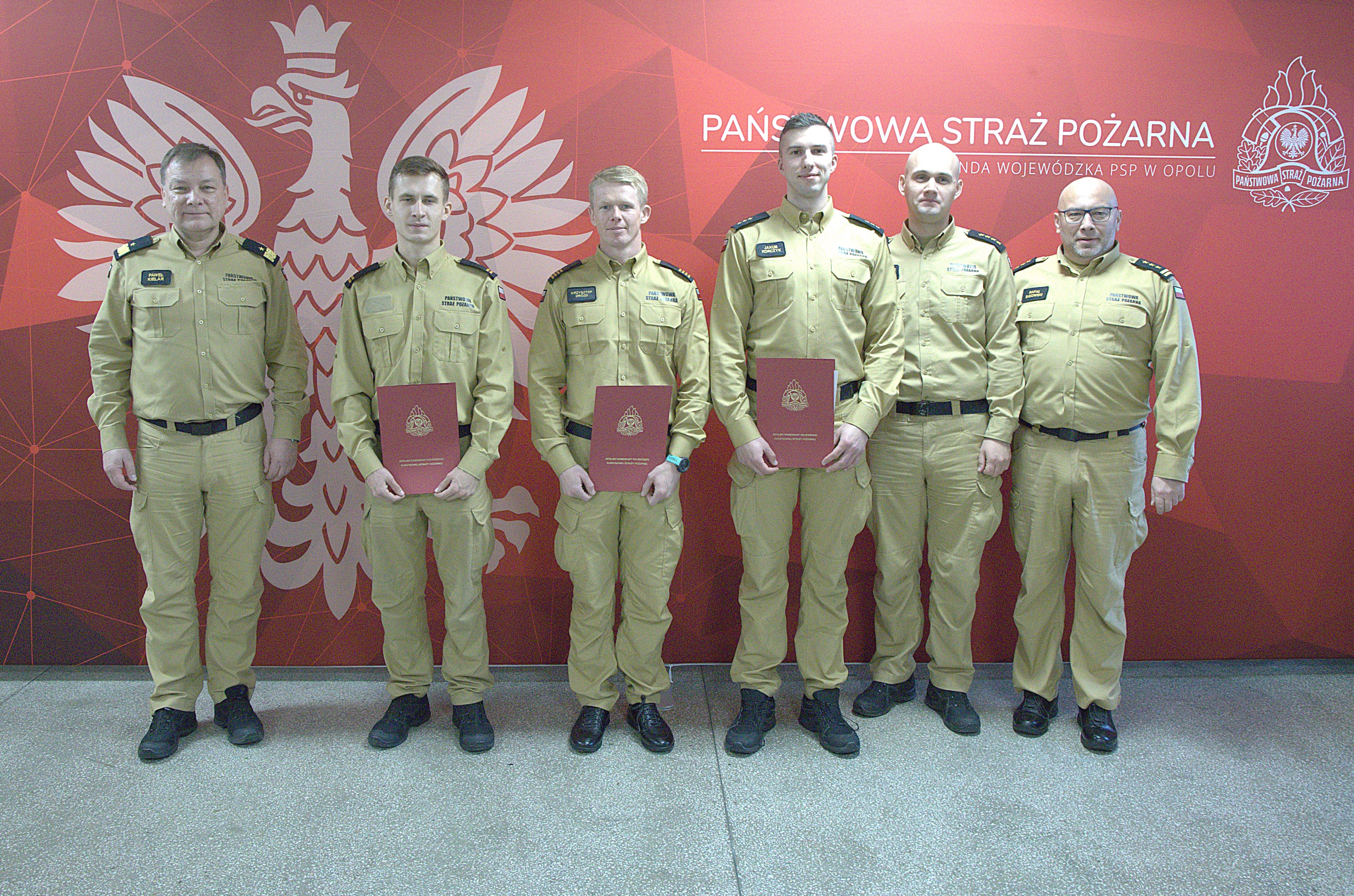 Za szczególne zaangażowanie w wykonywanie obowiązków służbowych podczas szkoleń zakresu gaszenia pożarów wewnętrznych realizowanych w Ośrodku Szkolenia KW PSP w Opolu w 2024 roku wyróżnieni zostali:
