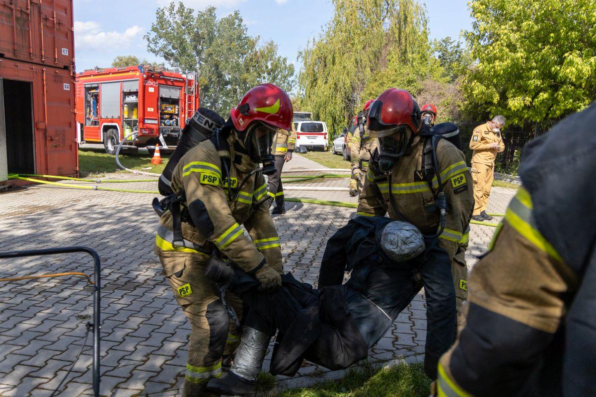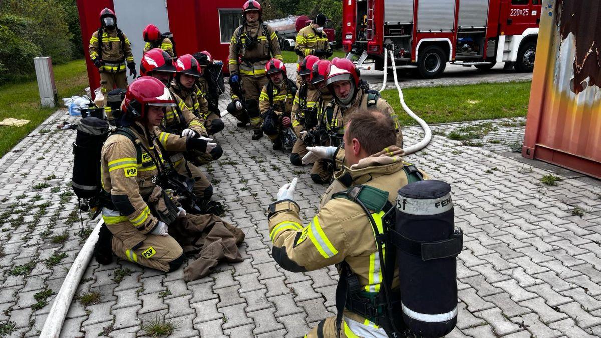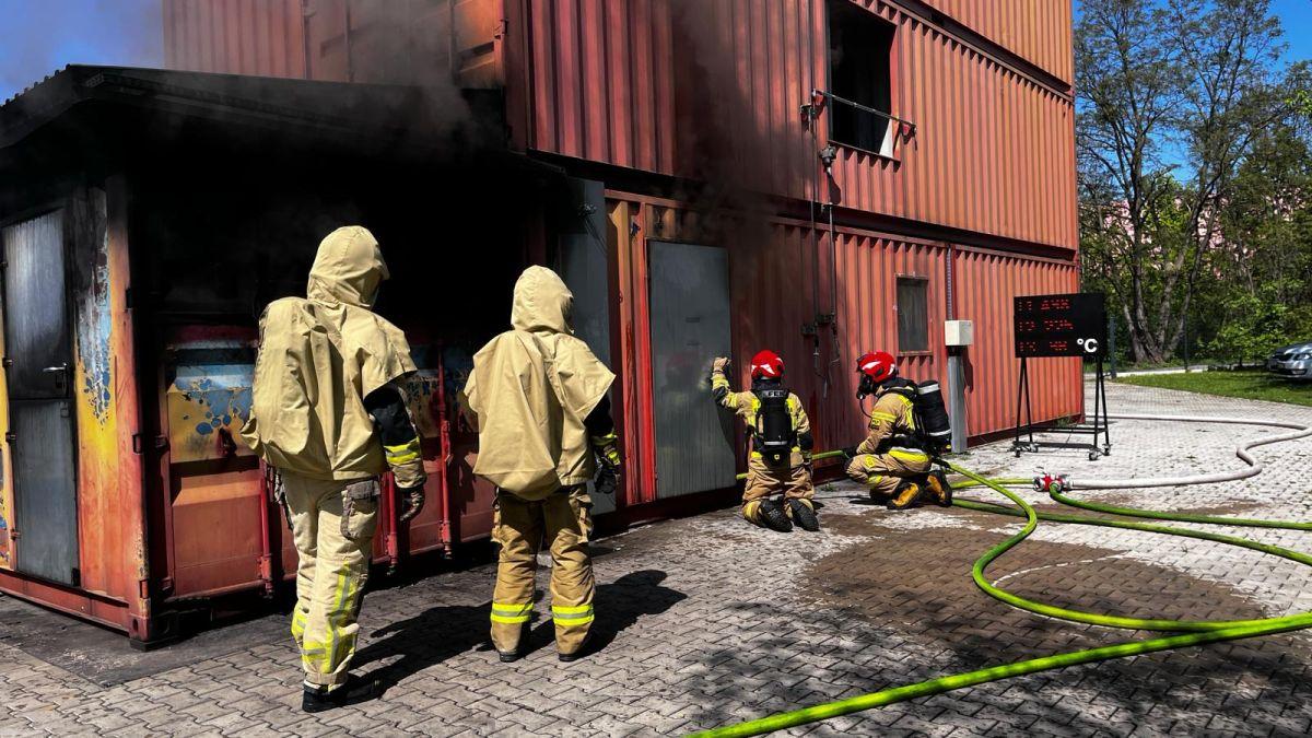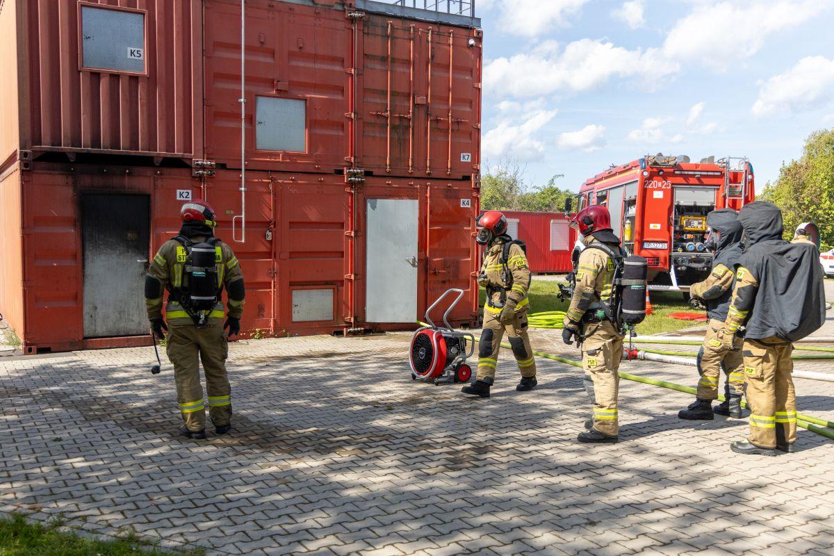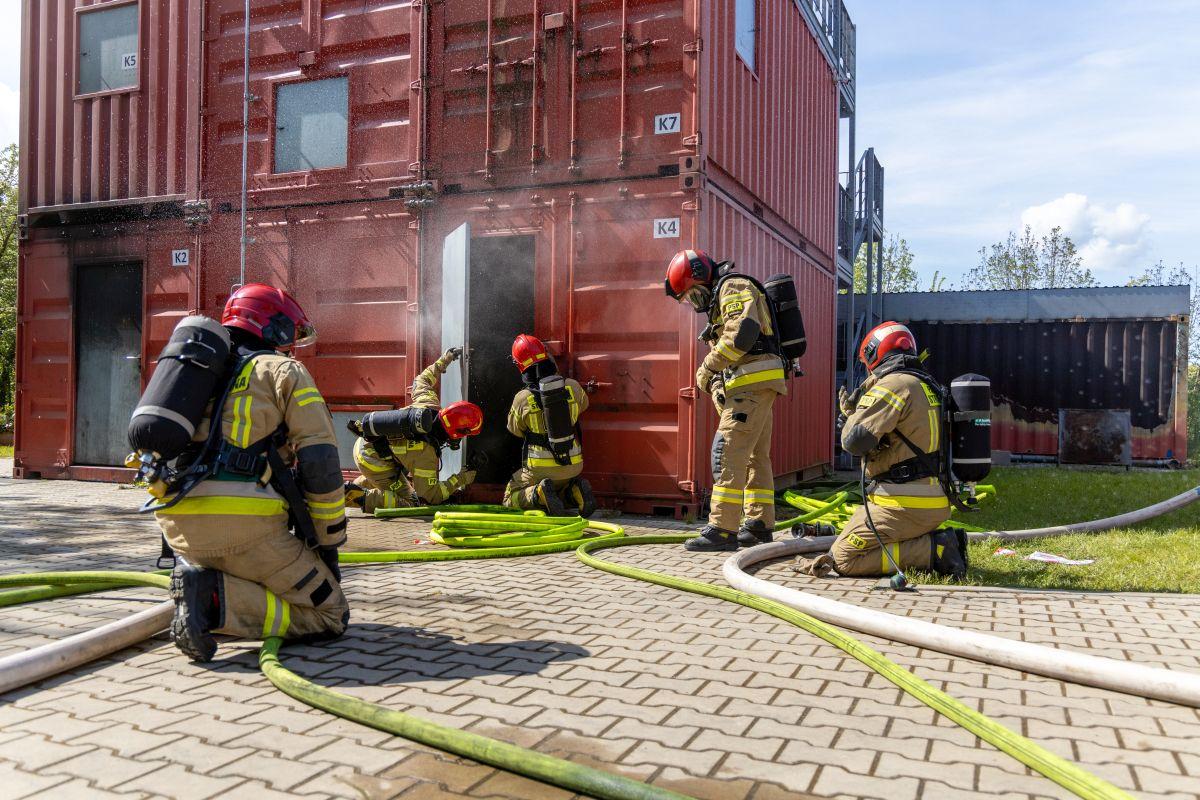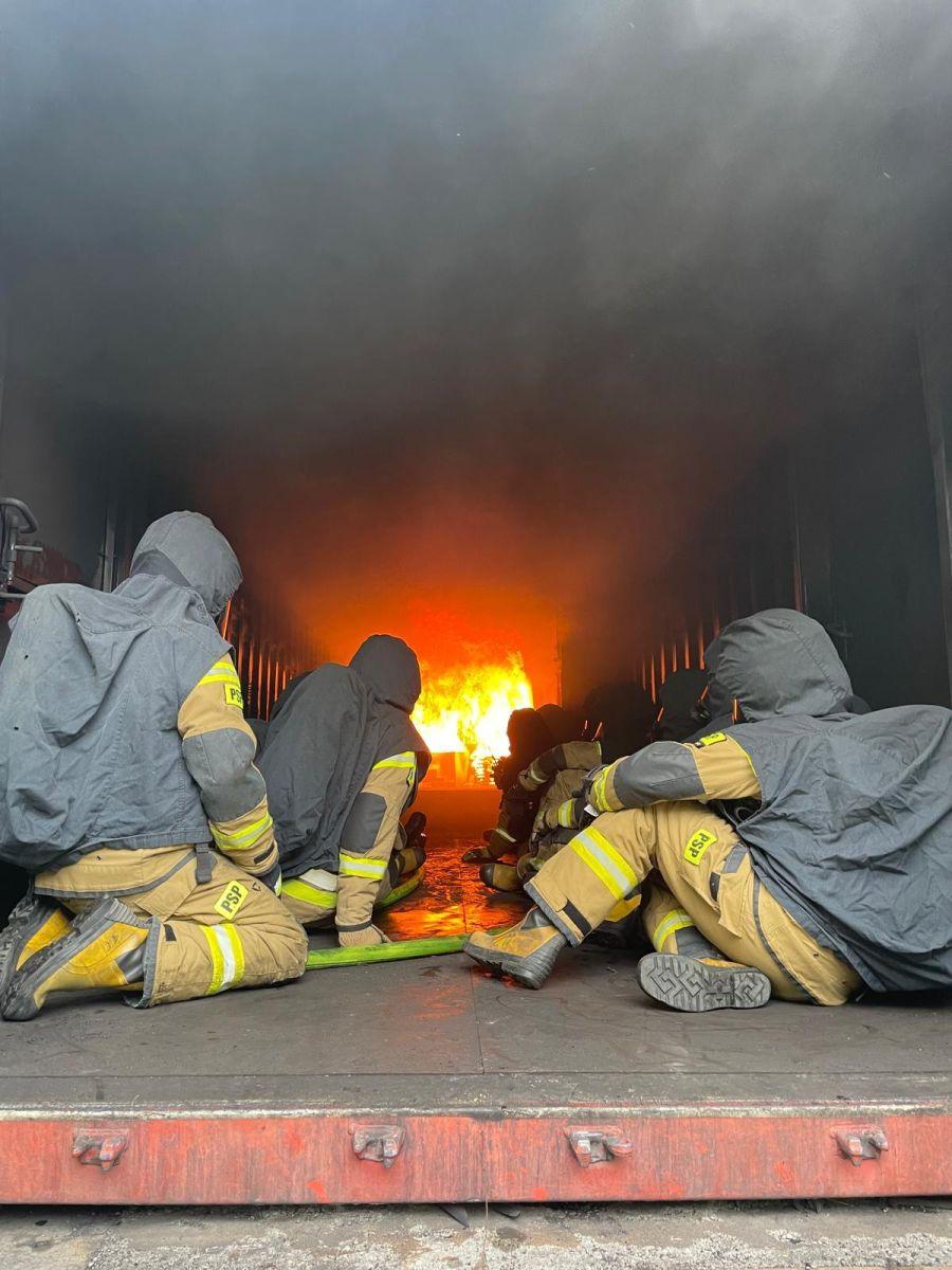Podczas zajęć praktycznych uczestnicy szkolenia ćwiczyli m.in. techniki operowania prądami gaśniczymi, postępowanie podczas wchodzenia do pomieszczenia objętego pożarem, techniki przeszukiwania pomieszczeń zadymionych oraz prowadzenia wentylacji taktycznej podczas pożarów wewnętrznych.