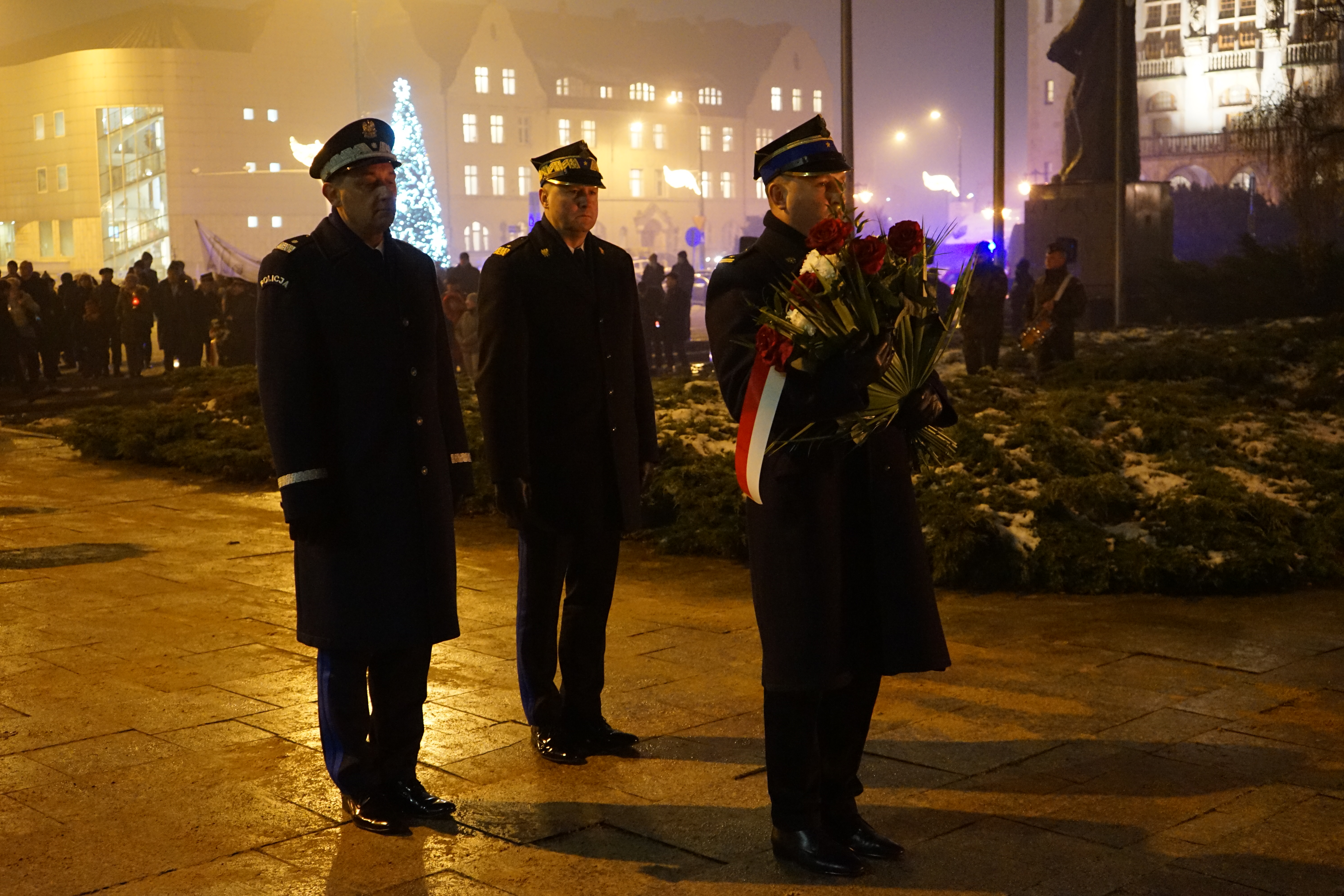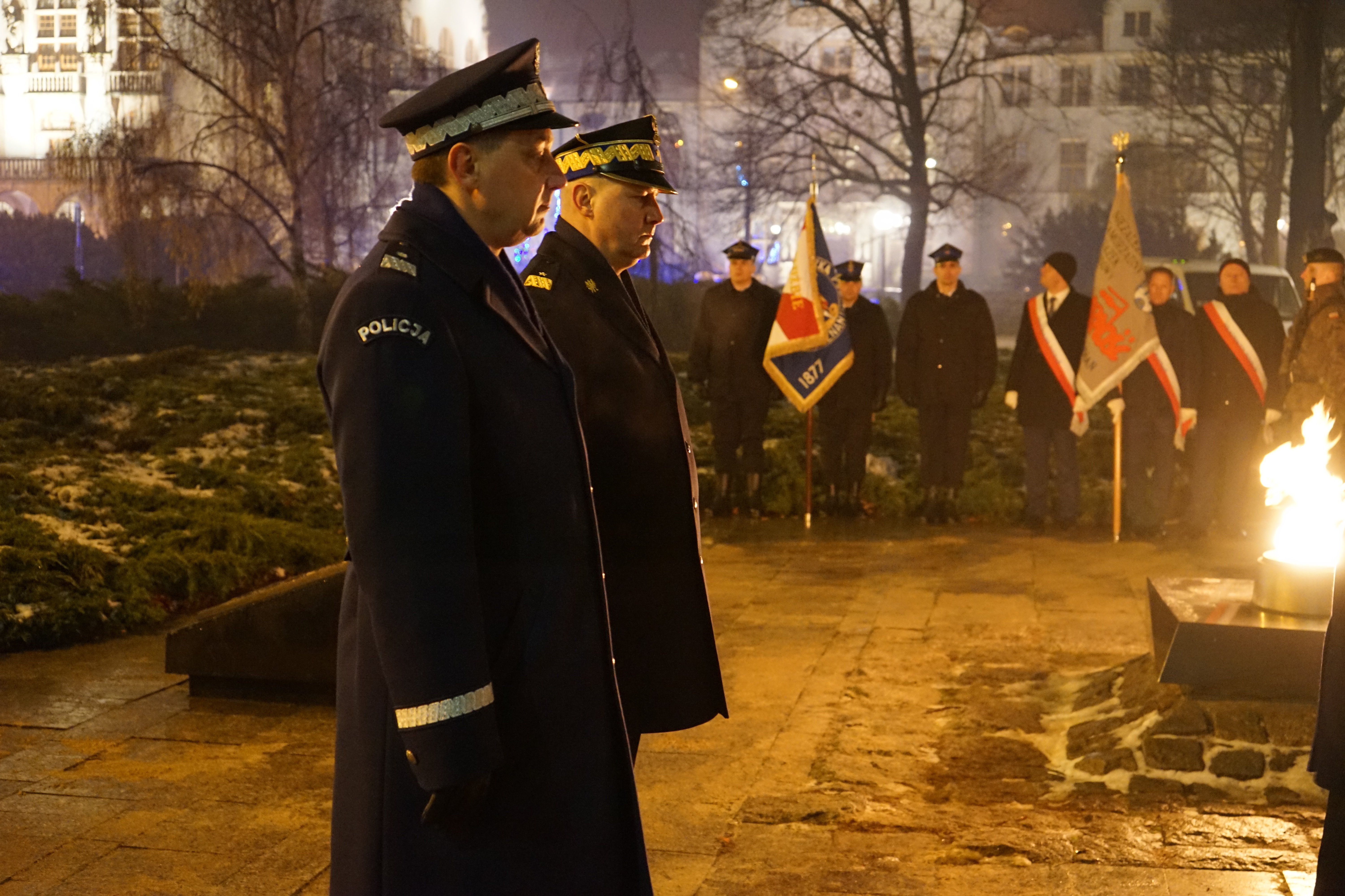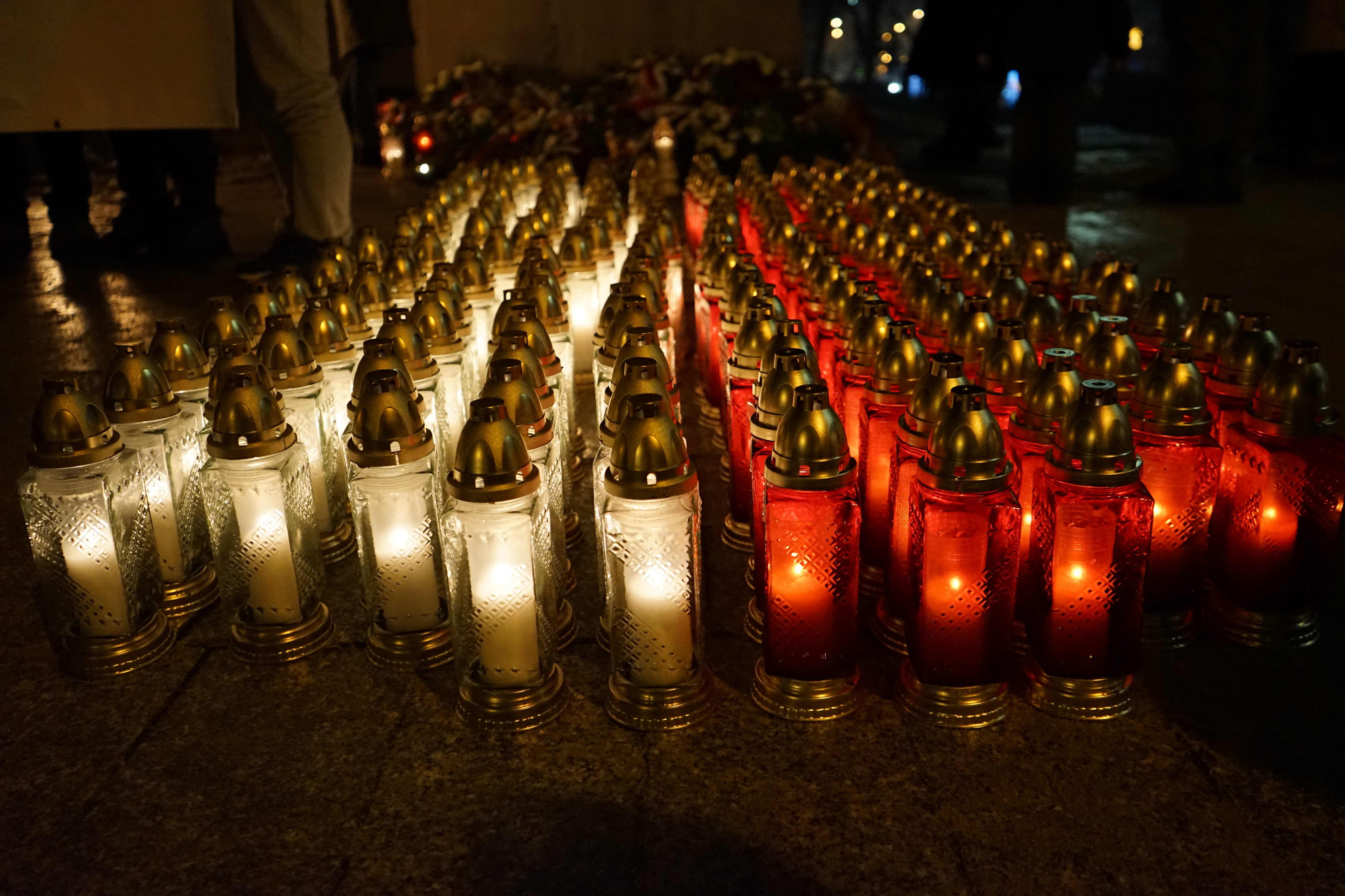 Na koniec uroczystości na znak pamięci o ofiarach stanu wojennego ułożona została flaga Polski z białych i czerwonych zniczy.