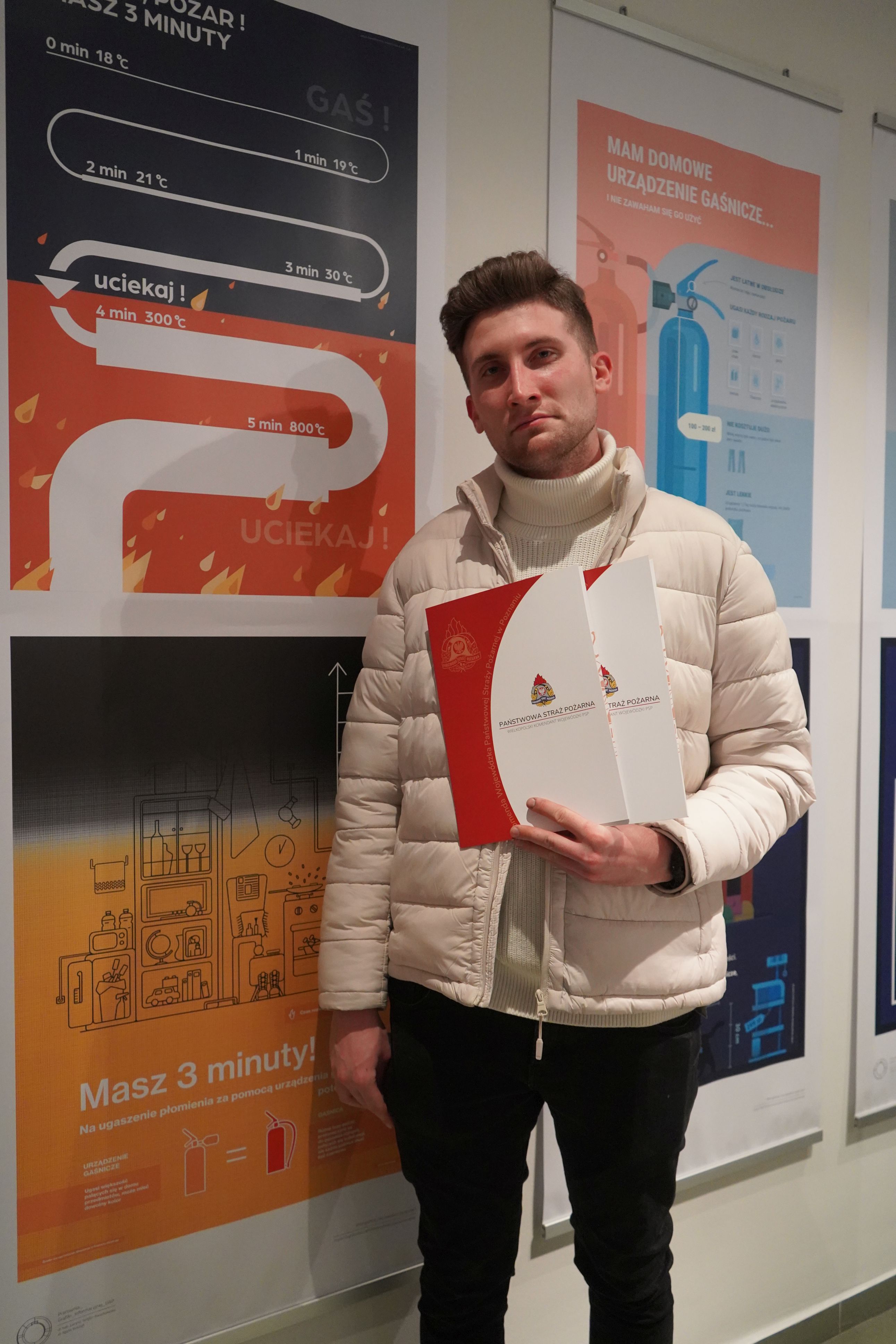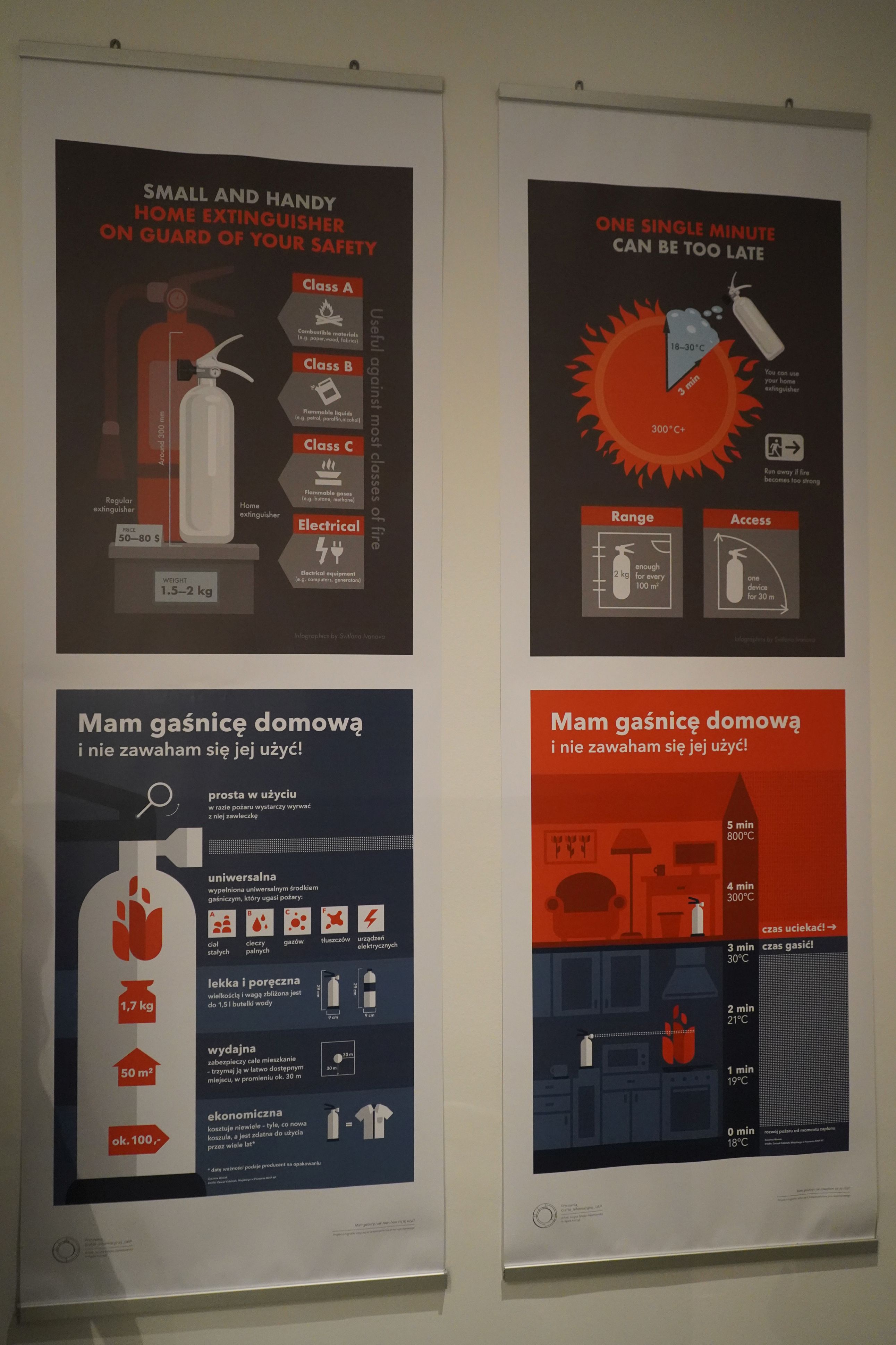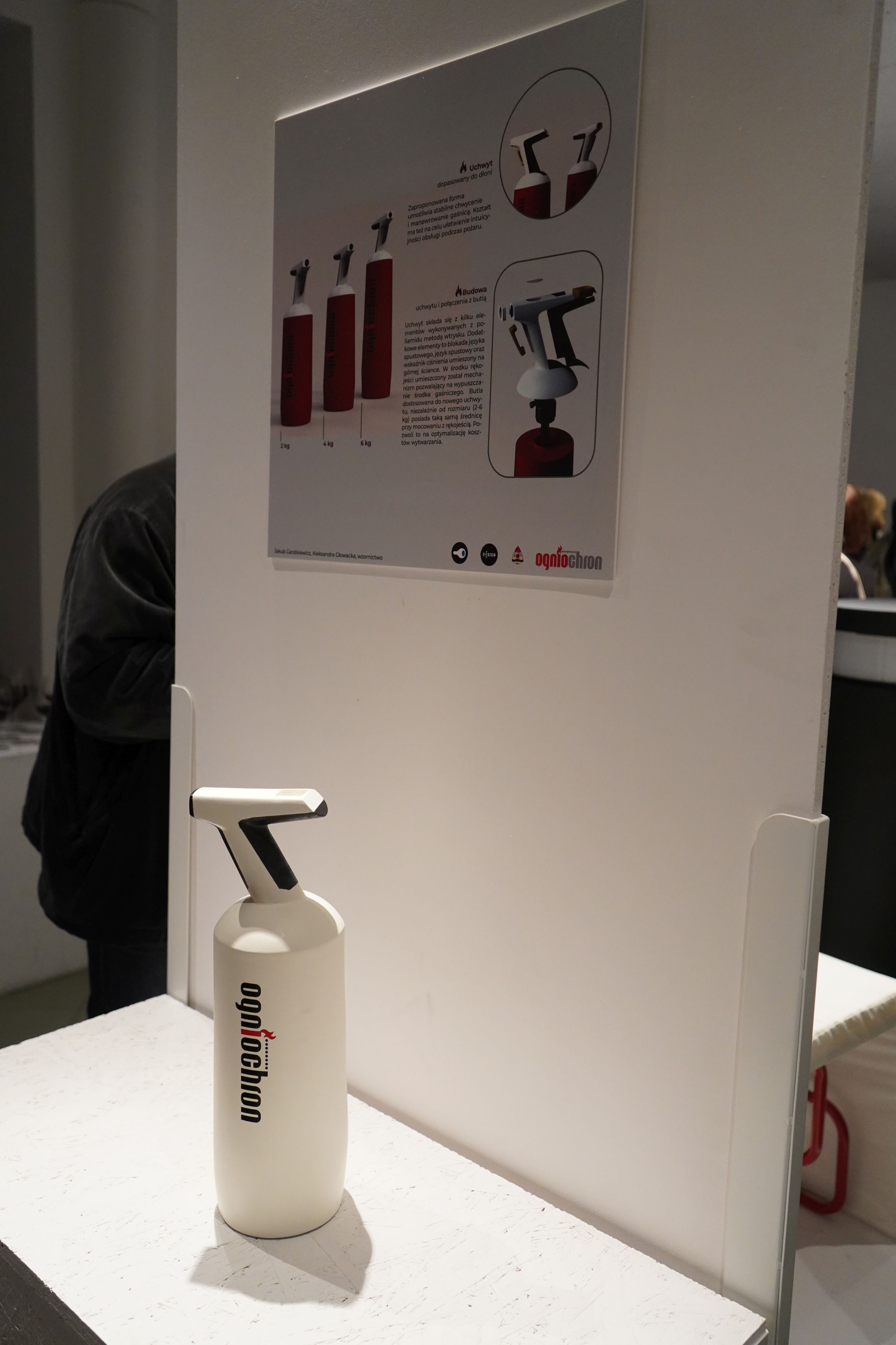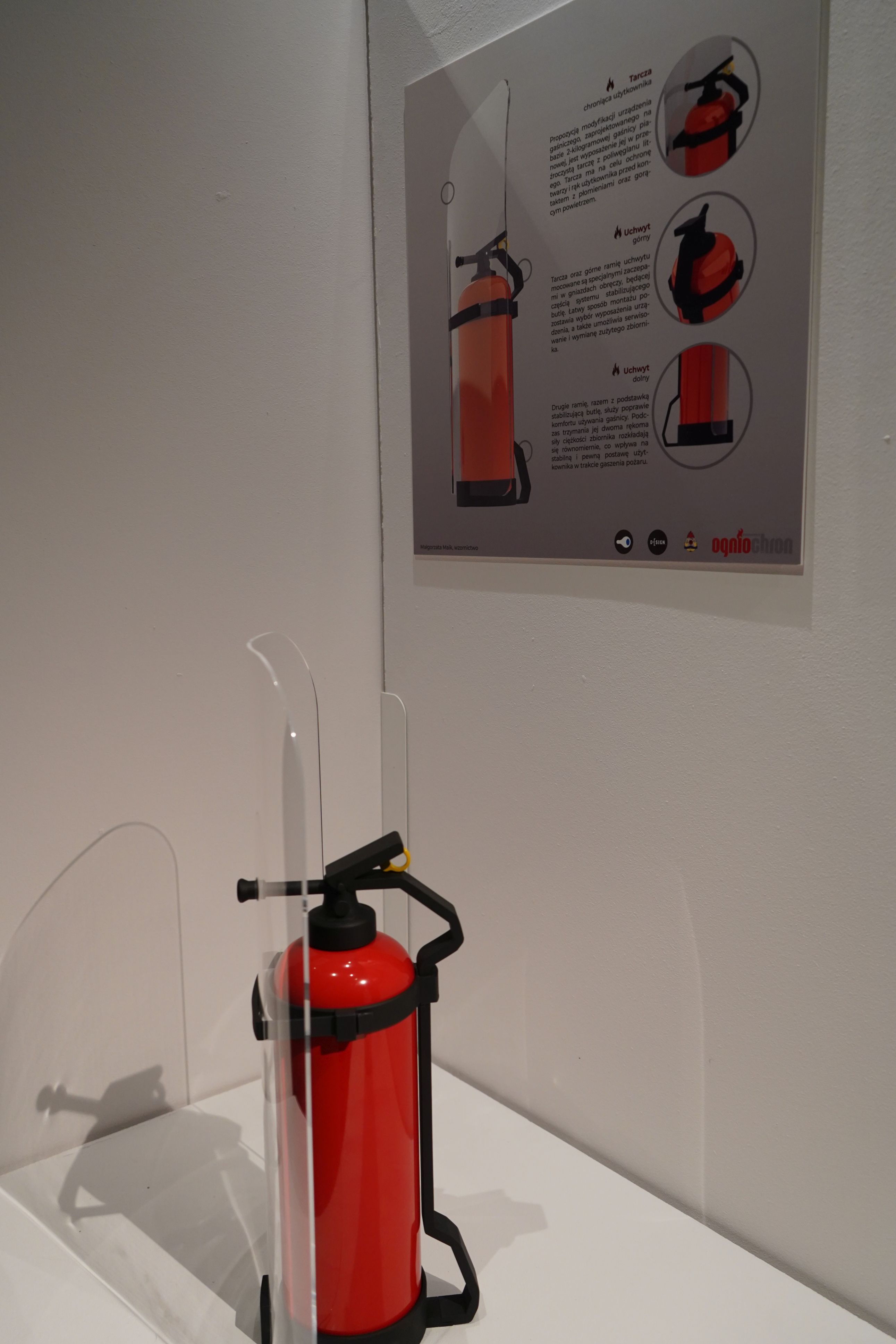Ekspozycja prezentuje nowe spojrzenie, oczami młodych studentów, na kwestie bezpieczeństwa, a pokazane przez pryzmat sztuki użytkowej. Studenci podjęli się niezwykle trudnego tematu dostosowania dostępnych na rynku urządzeń gaśniczych takich jak gaśnice do warunków domowych. Zaproponowali rozwiązania, które z powodzeniem można zastosować nawet w nowocześnie zaaranżowanych pomieszczeniach, a także rozwiązania techniczne mające usprawnić sprawne i szybkie użycie gaśnicy do ugaszenia niewielkiego pożaru w kuchni czy w innym pomieszczeniu. Projekty przestrzenne zostały uzupełnione o ciekawe infografiki, zachęcające do zaopatrzenia się w te urządzenia, jako niezbędne do zgaszenia zarzewia pożaru w domu.