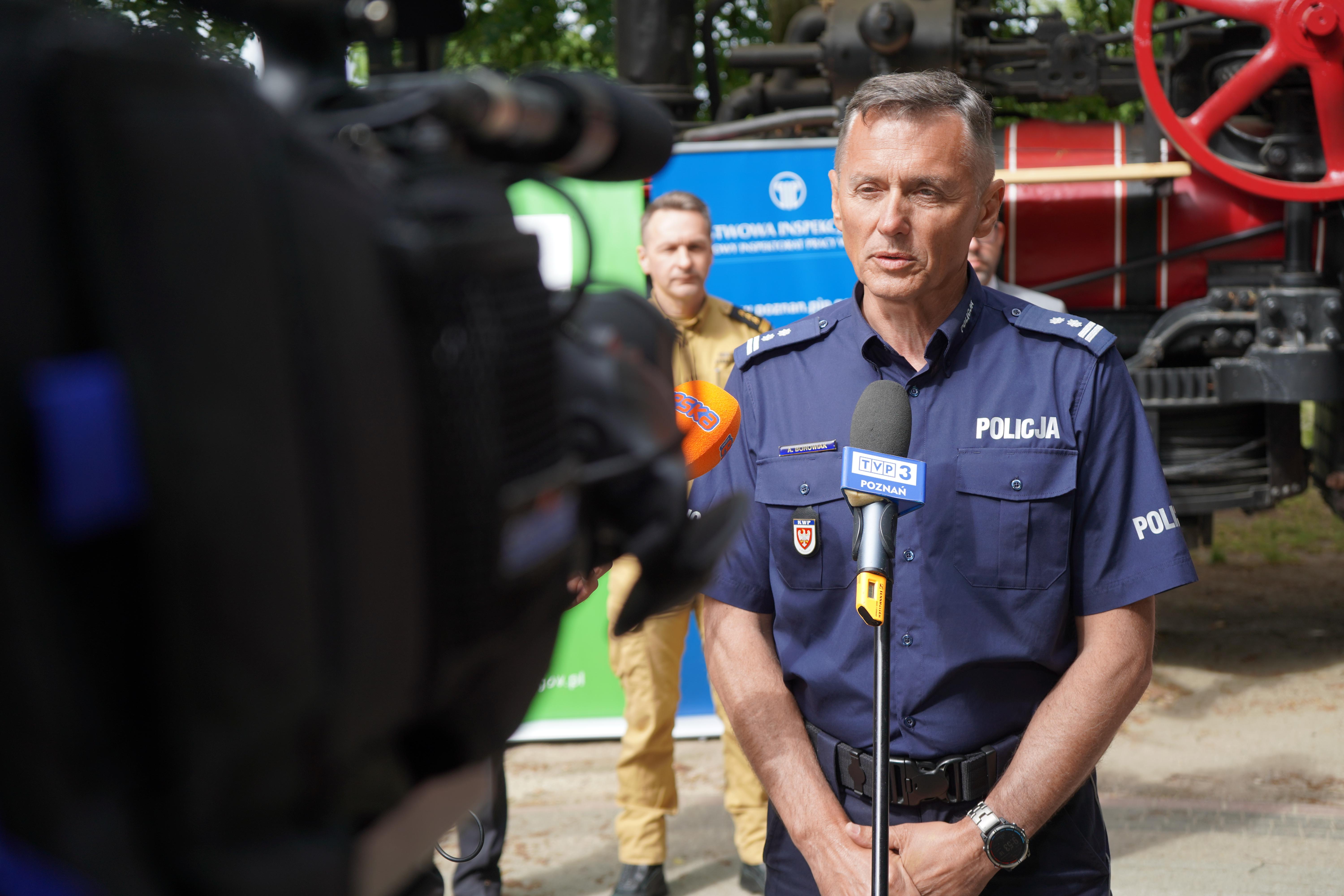 Zastępca Wielkopolskiego Komendanta Wojewódzkiego PSP st. bryg. Tomasz Wiśniewski zaznaczył istotne sprawy, kwestie dotyczące ochrony przeciwpożarowej na terenach gospodarstw oraz podczas prowadzonych prac polowych, szczególnie w okresie żniw.