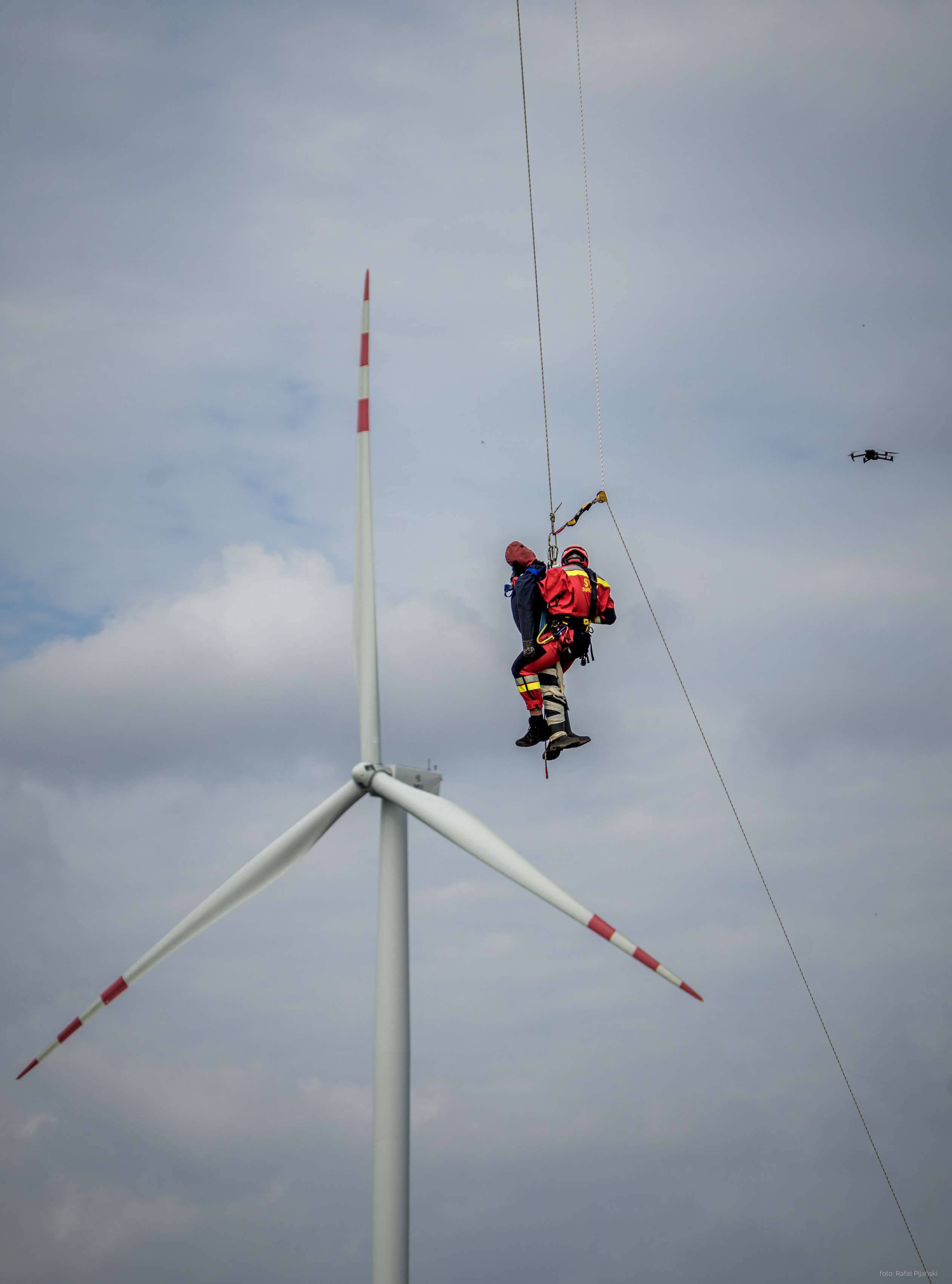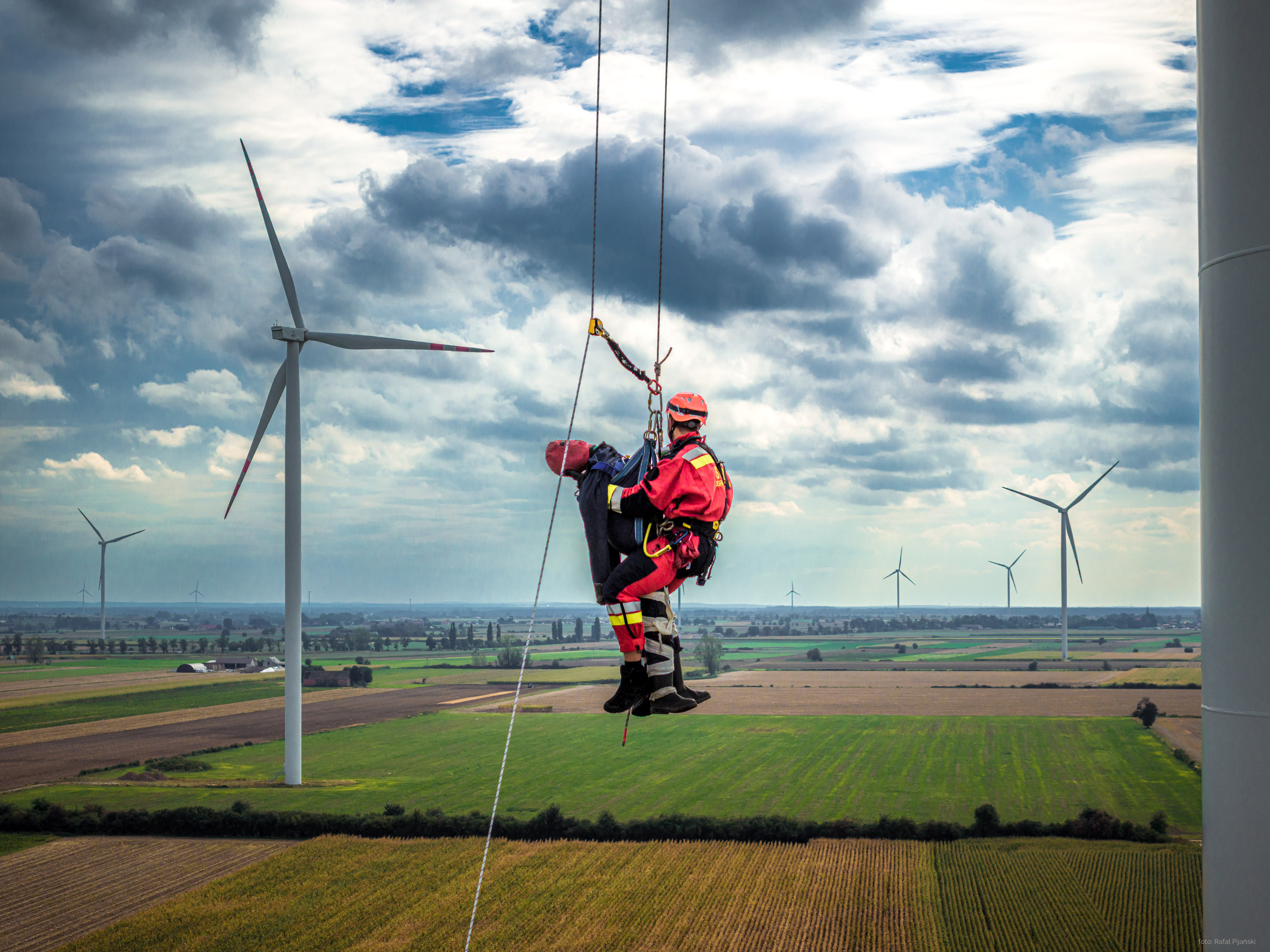 Dodatkowo w ramach części warsztatowej zostało przeprowadzone szkolenie z zasad działania i poruszania się w obiektach turbin wiatrowych.