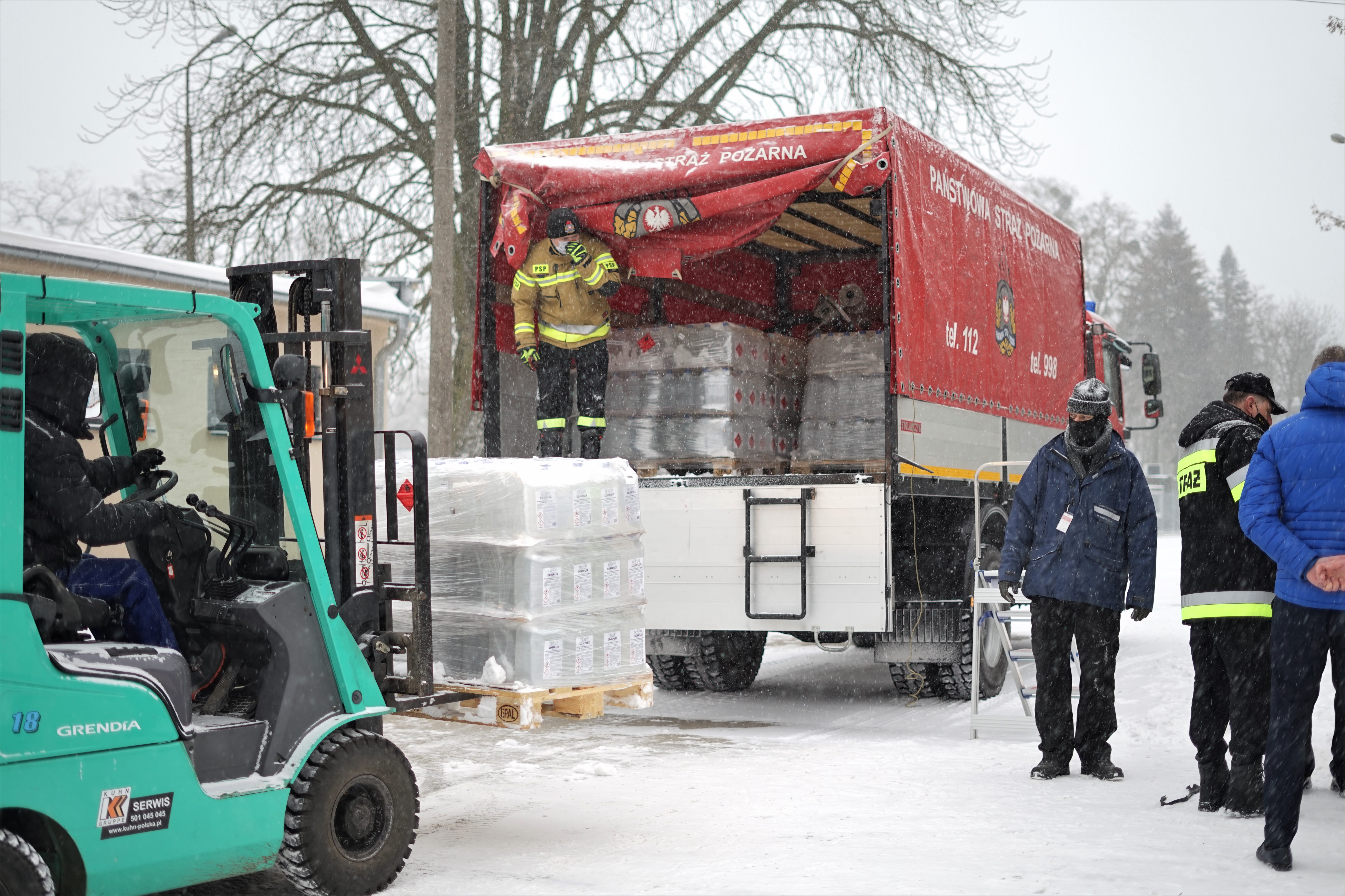 Rozpoczęcie dystrybucji, dzisiaj tj. 8 lutego br. osobiście nadzorowali wojewoda wielkopolski Michał Zieliński wraz z wielkopolskim komendantem wojewódzkim PSP st. bryg. Dariuszem Matczakiem.