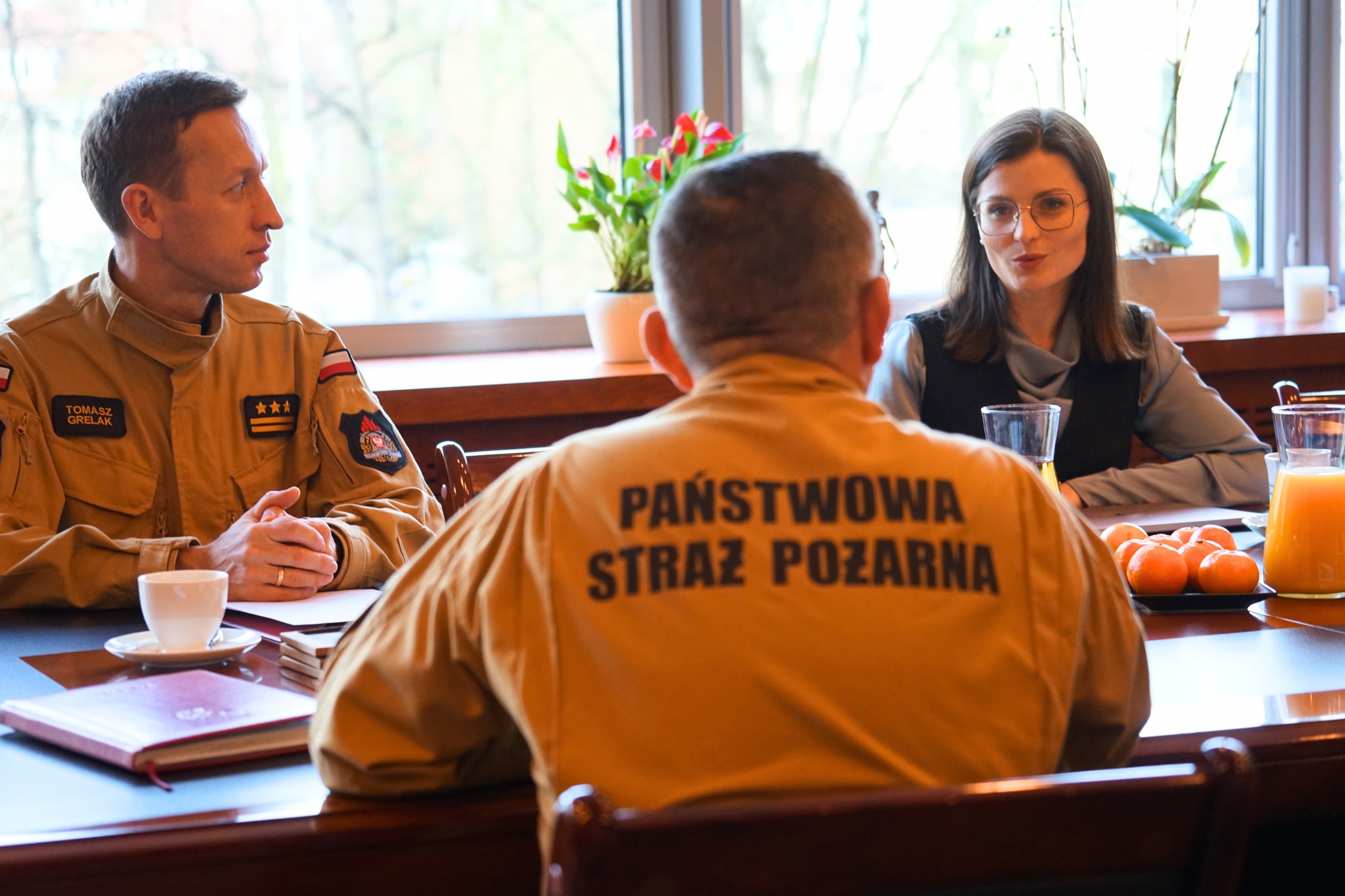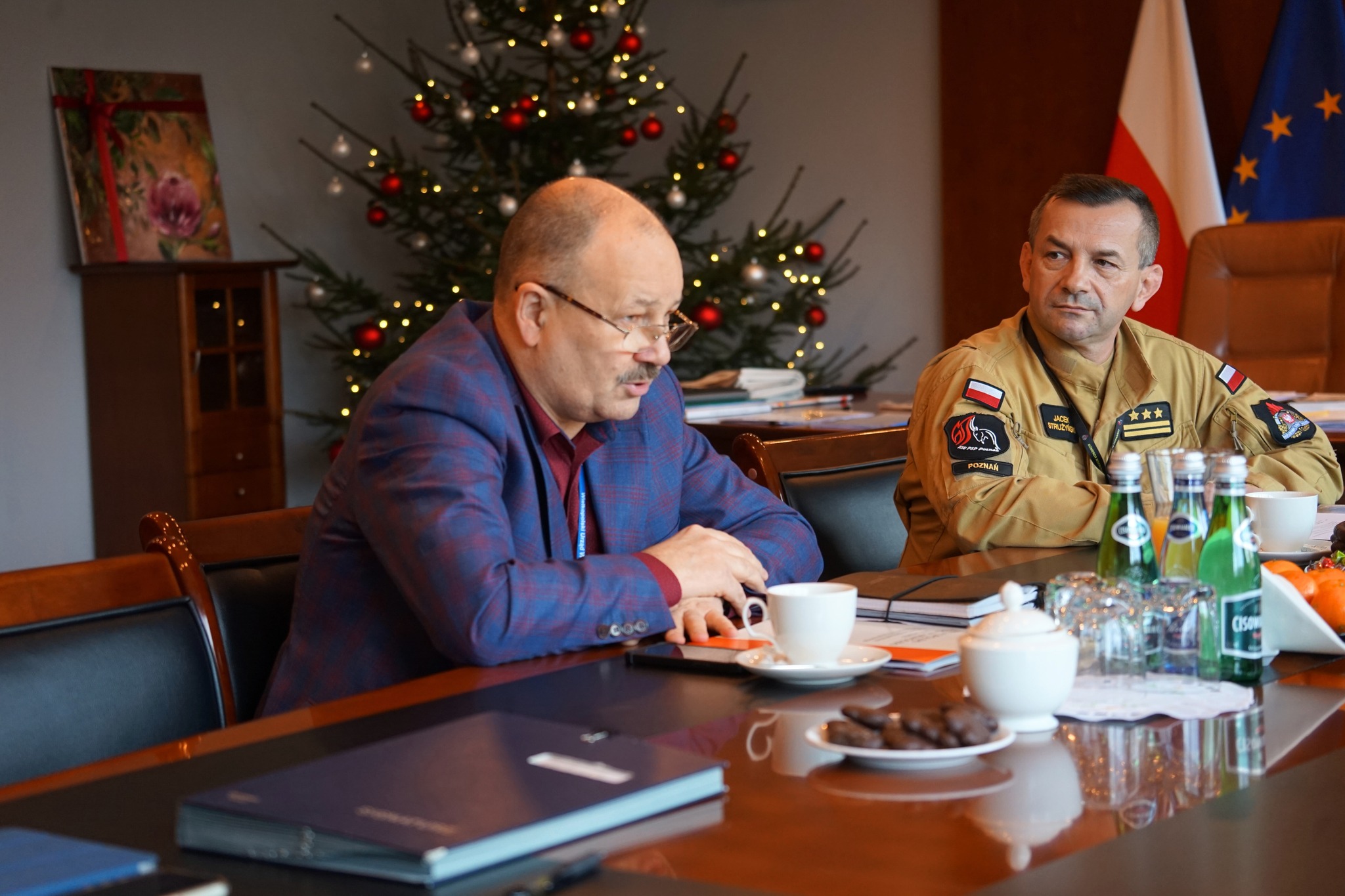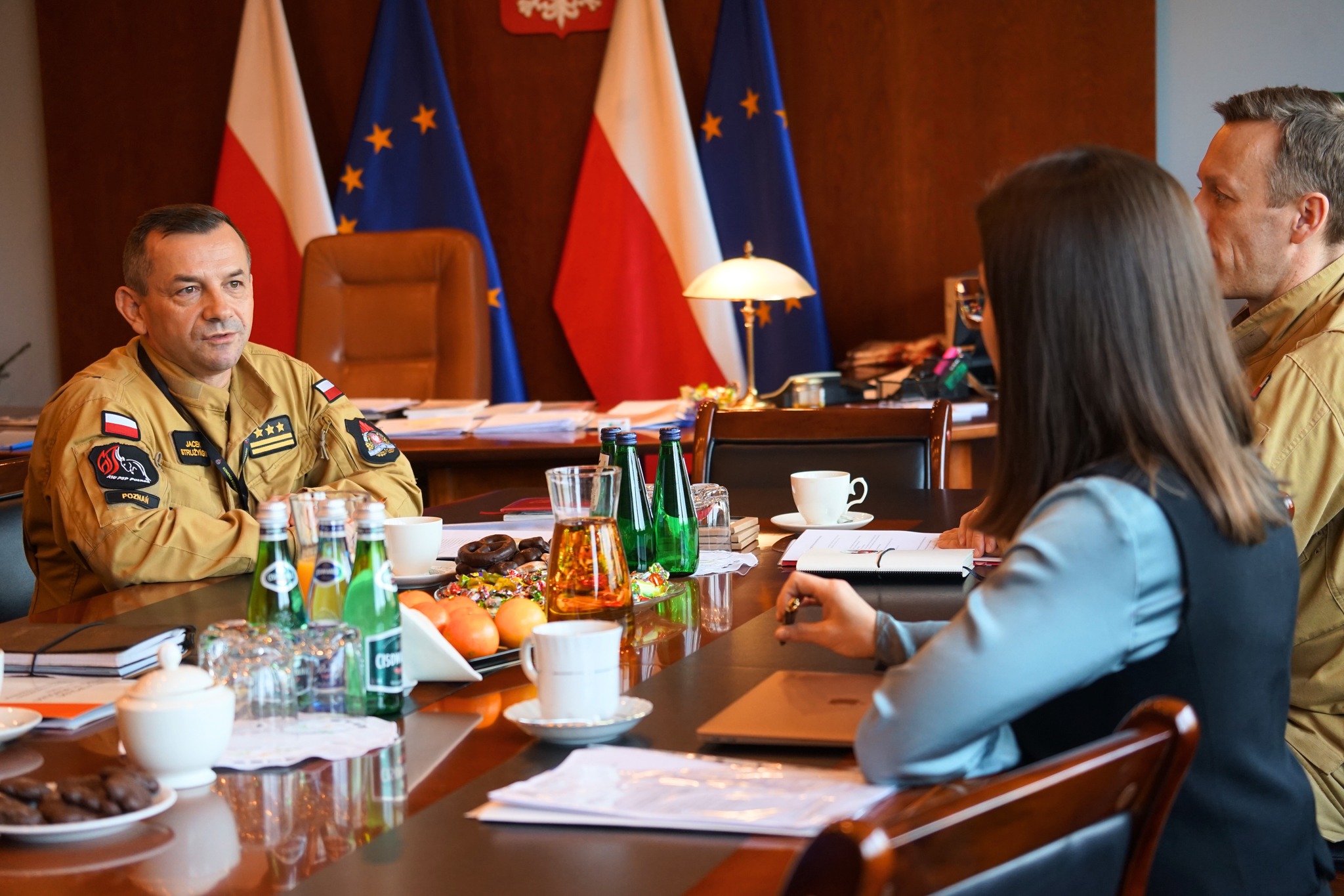 Wielkopolski Komendant Wojewódzki PSP st. bryg. Jackiem Strużyńskim wraz z zastępcą st. bryg. Tomaszem Grelakiem oraz Dyrektor Wydziału Bezpieczeństwa i Zarządzania Kryzysowego WUW w Poznaniu Dariuszem Dymkiem omówili doświadczenia związane z zarządzaniem sytuacjami kryzysowymi w 2024 roku. Dyskusja była skupiona na analizie wniosków z najważniejszych zdarzeń oraz możliwościach optymalizacji działań w przyszłości.