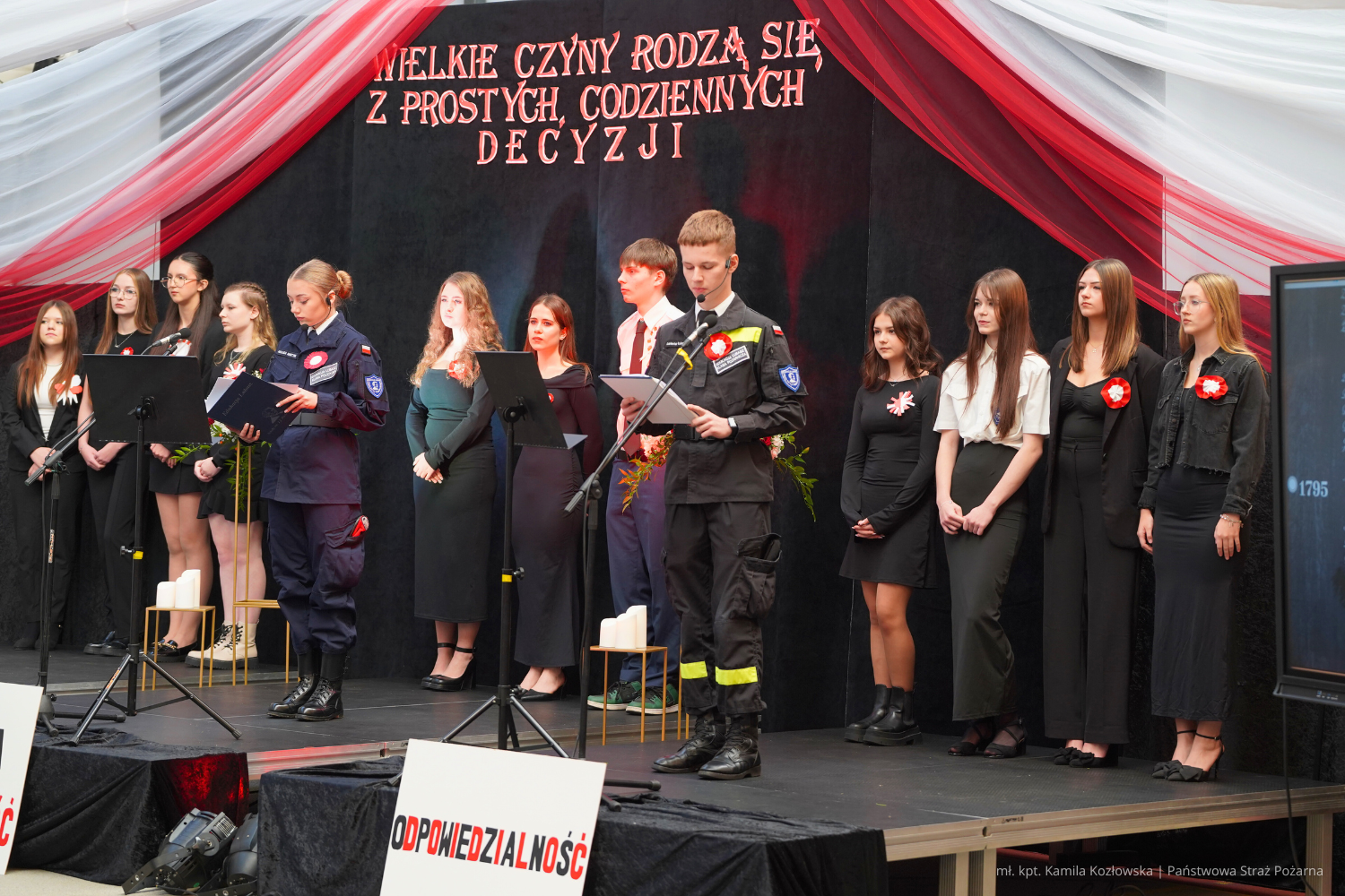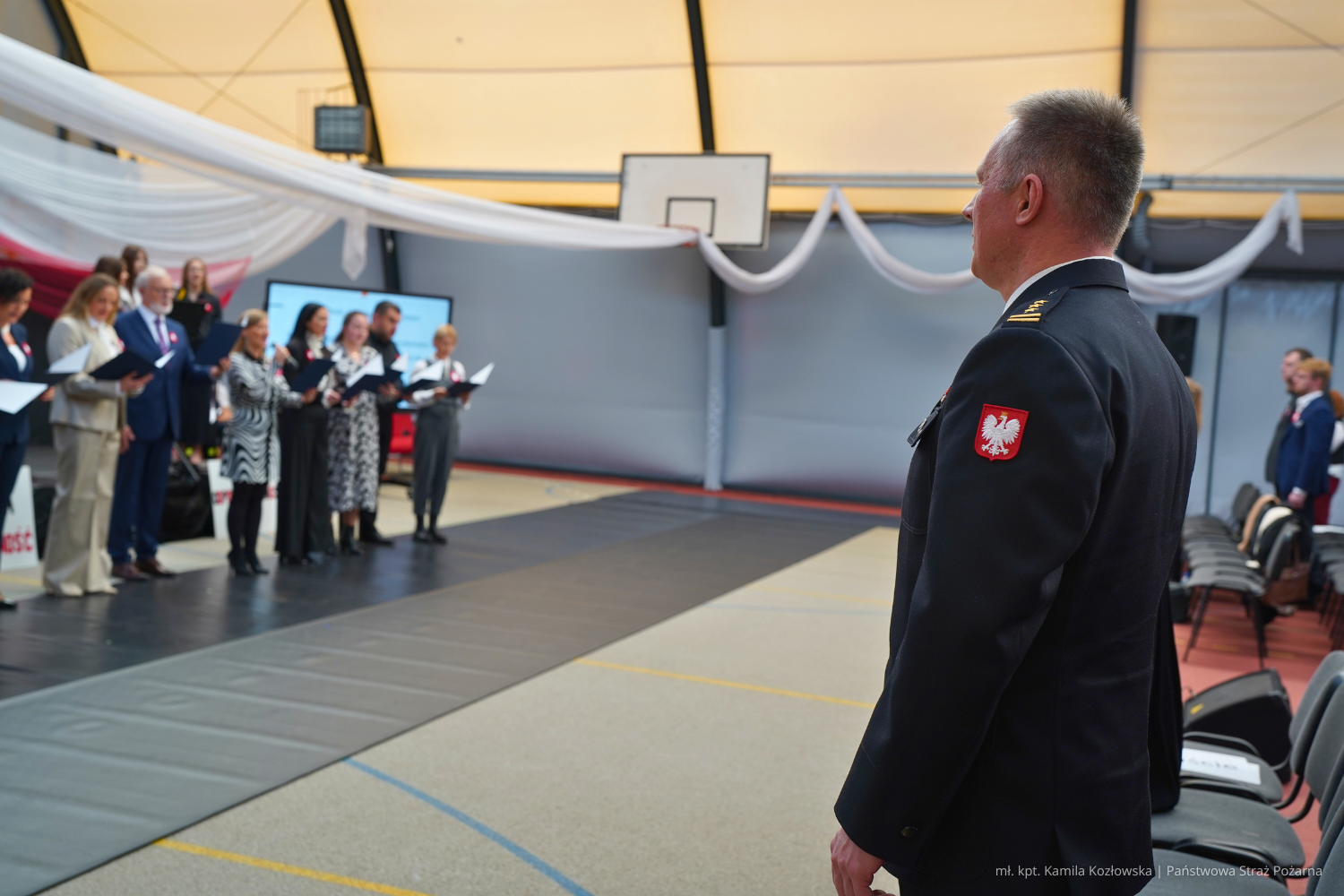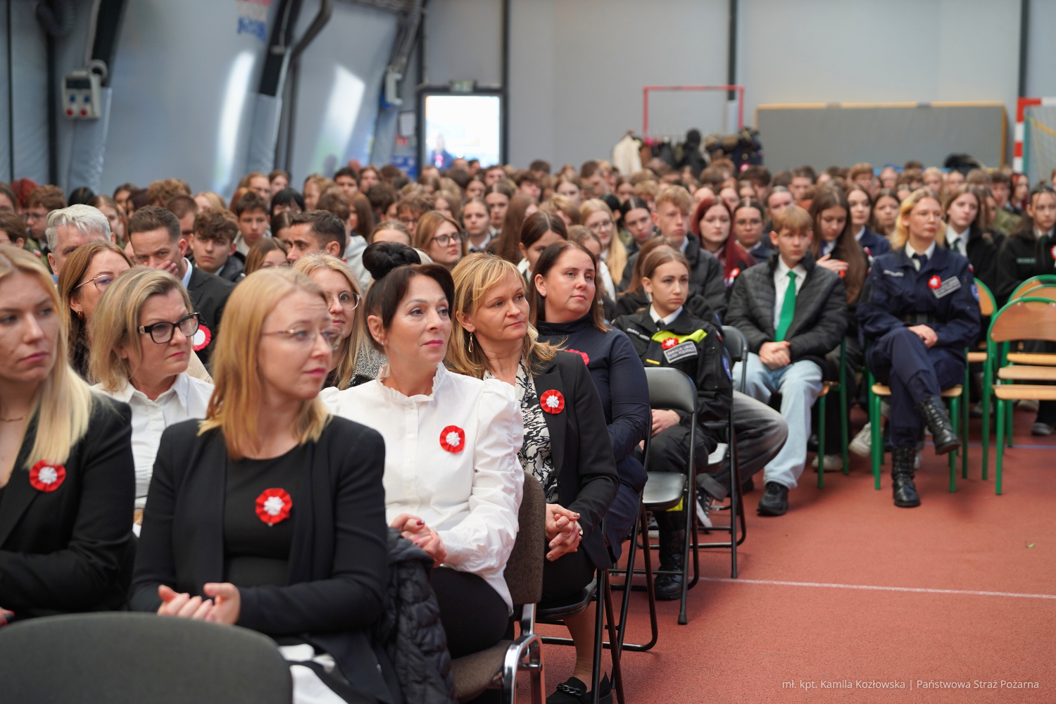 Po odśpiewaniu „Mazurka Dąbrowskiego” głos zabrała dyrektor szkoły, Renata Małecka, serdecznie witając wszystkich zgromadzonych i podkreślając, że to święto to nie tylko lekcja historii, ale przede wszystkim lekcja serca i odpowiedzialności.