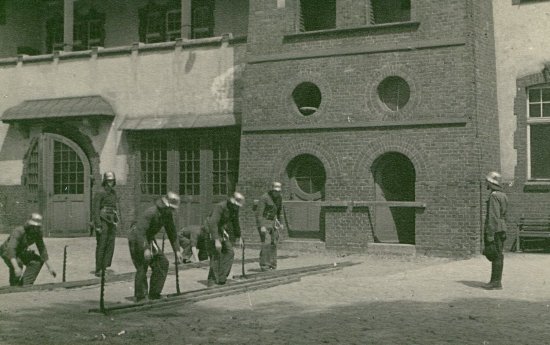 W 1909 roku w pełni funkcjonował system straży zdecentralizowanej,składający się z dwóch samodzielnych oddziałów rozmieszczonych w strażnicach I (Masztalarska) i II (Grunwaldzka) oraz strażnicy pomocniczej na Wildzie.Ćwiczenia w jednostce przy ul. Masztalarskiej