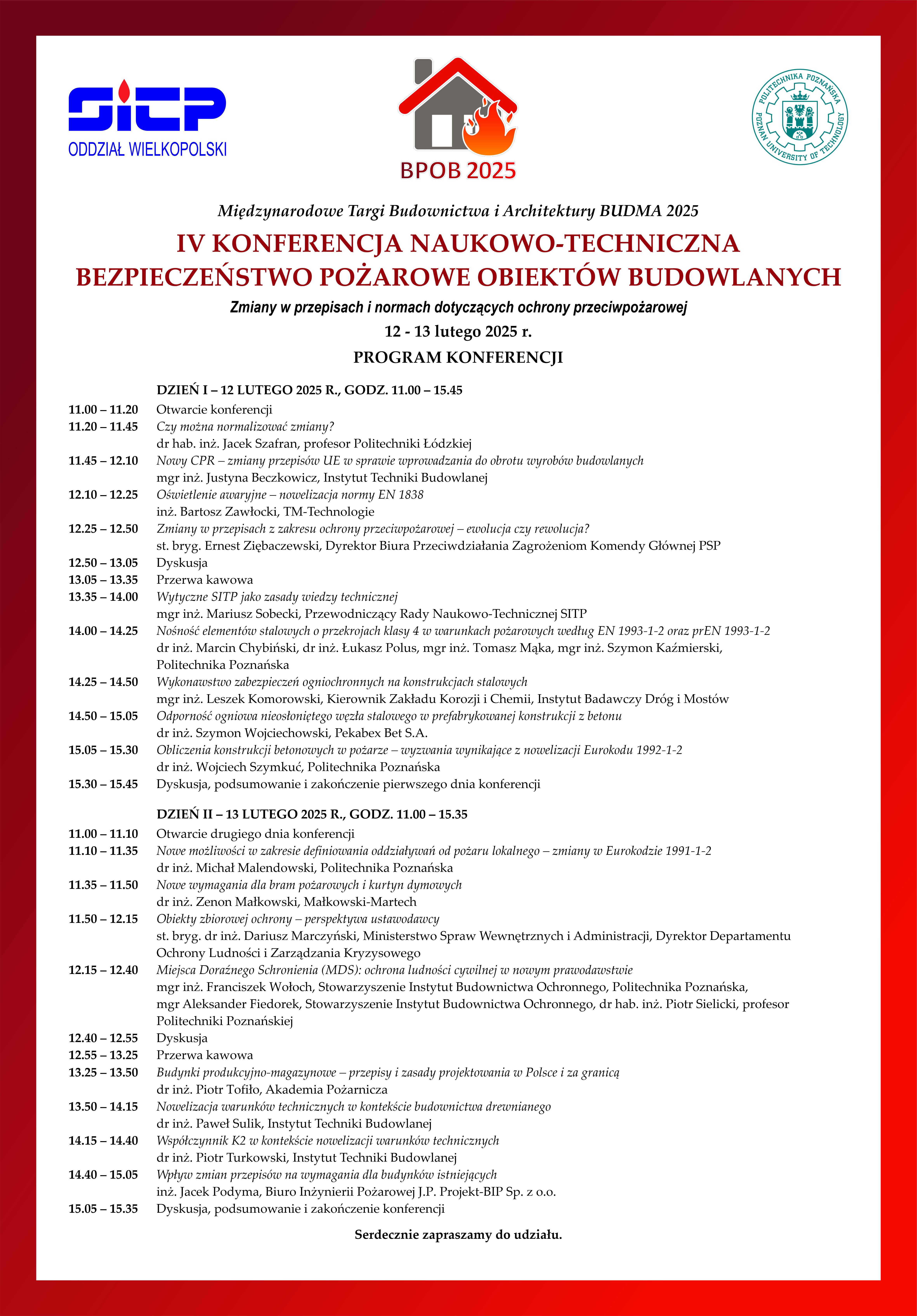 IV Konferencja Naukowo-Techniczna Bezpieczeństwo Pożarowe Obiektów Budowlanych - BUDMA 2025