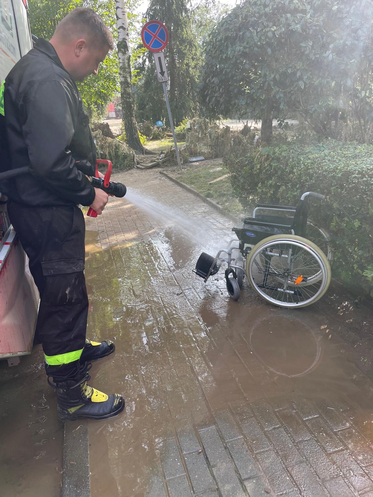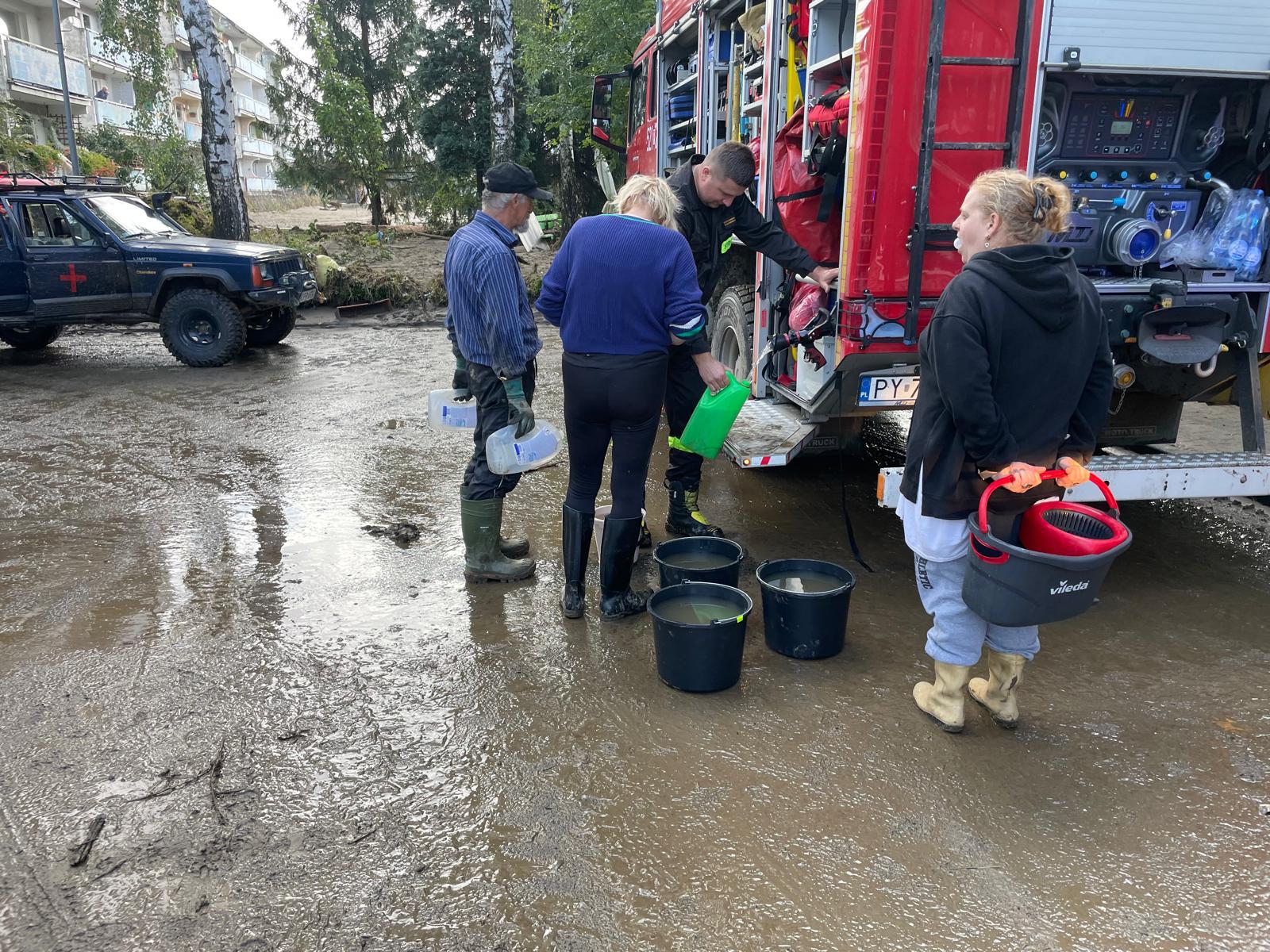Strażcy z Wielkopolski (Jarocin, Kalisz) przy wsparciu jednostek Ochotniczych Straży Pożarnych cały czas wypompowują wodę z piwnic w Stroniu Śląskim oraz zabezpieczają miasto i okoliczne miejscowości. Posiadany przez nich sprzęt (agregaty) zasila stację paliw oraz stację uzdatniania wody.