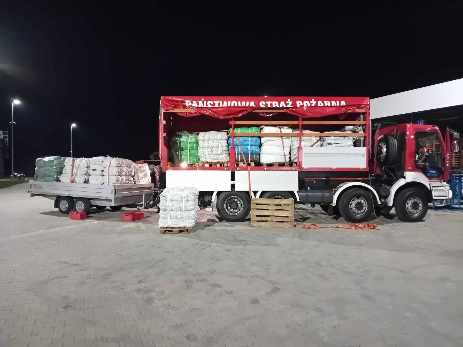 Wczoraj, w imieniu Wojewody Wielkopolskiego wpłynęła prośba o pomoc w transporcie europalet z workami z magazynu w miejscowości Borki (pow. słupecki). Nastąpiła natychmiastowa mobilizacja i samochody oraz kontenery kwatermistrzowskie i przyczepy z Komendy Powiatowej PSP w Słupcy, Szamotułąch oraz z Komendy Miejskiej PSP w Koninie, już przed północą wyruszyły z transportem 35 europalet (1 paleta waży około 0,5 tony) do miejscowości Legnica ( woj. dolnośląskie).