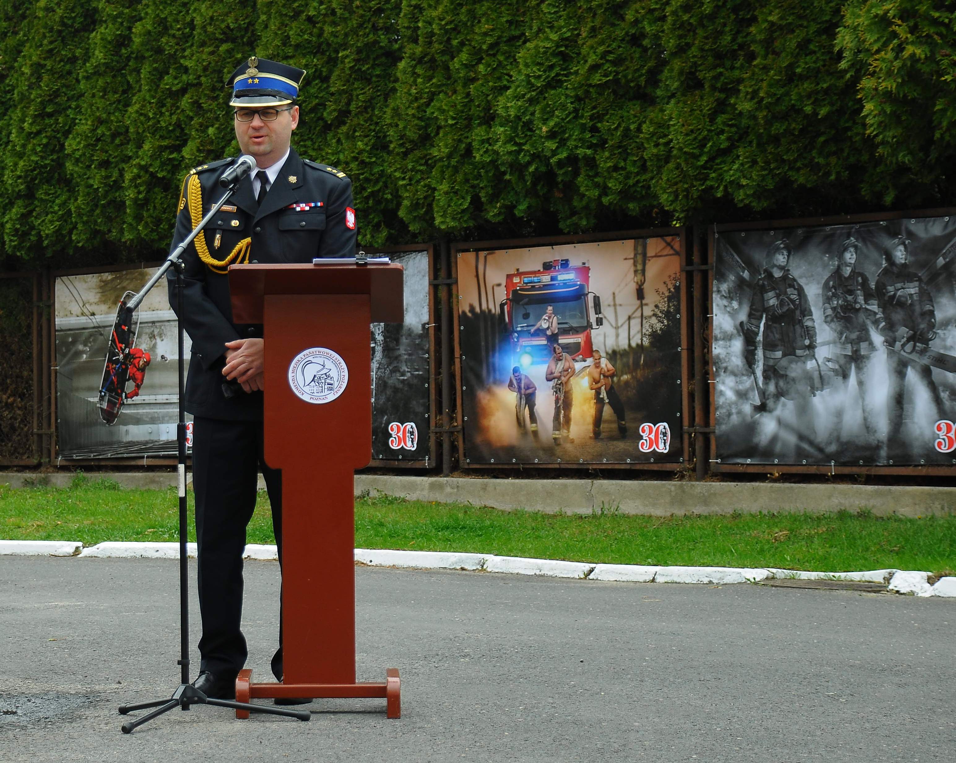 Na wstępie Dowódca Jednostki przypomniał rys historyczny Jednostki oraz najważniejsze wydarzenia z całego trzydziestolecia funkcjonowania Jednostki. Tak się bowiem składa, że jest ona równolatką Państwowej Straży Pożarnej.