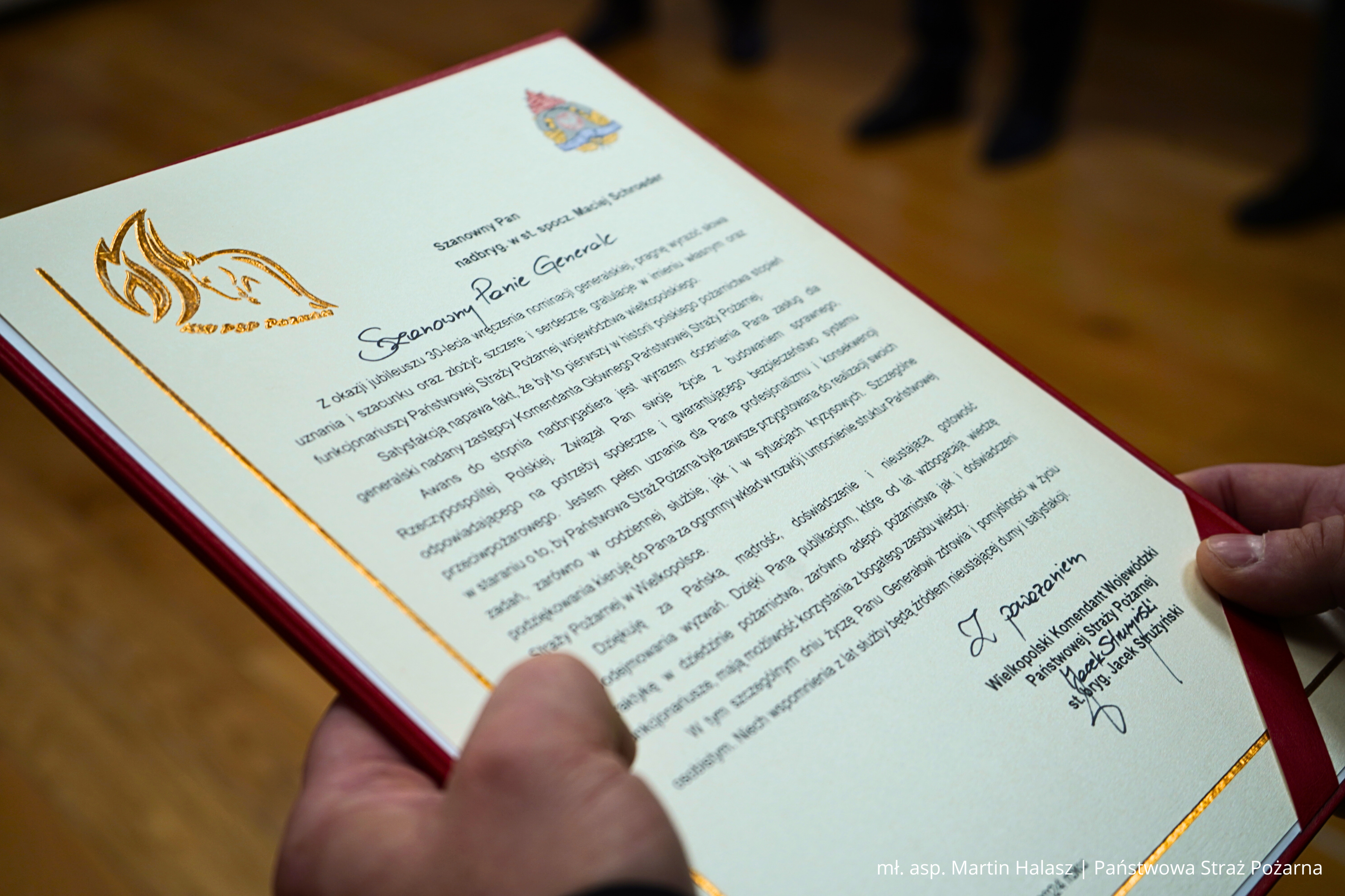 W czwartkowe popołudnie, 14 listopada 2024 roku, Komenda Wojewódzka PSP w Poznaniu gościła w swoich murach nietuzinkową postać polskiego pożarnictwa - nadbryg. w st. spocz. Macieja Schroedera, pierwszego nadbrygadiera, który jako zastępca komendanta głównego PSP otrzymał awans generalski (wcześniej ten stopień przysługiwał tylko Komendantowi Głównemu PSP).