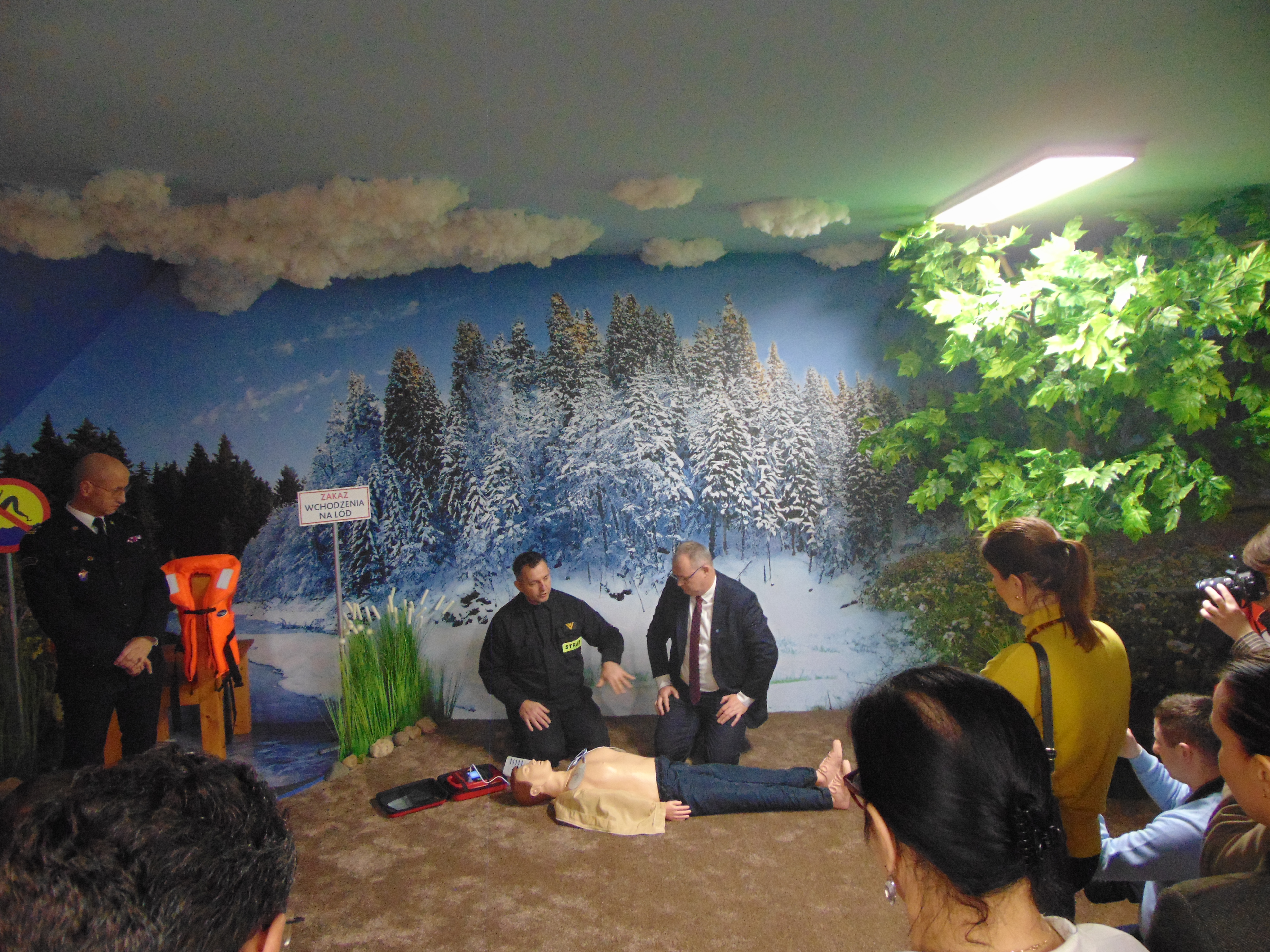 - Zasady pierwszej pomocy – użycie treningowego fantomu i defibrylatora automatycznego.