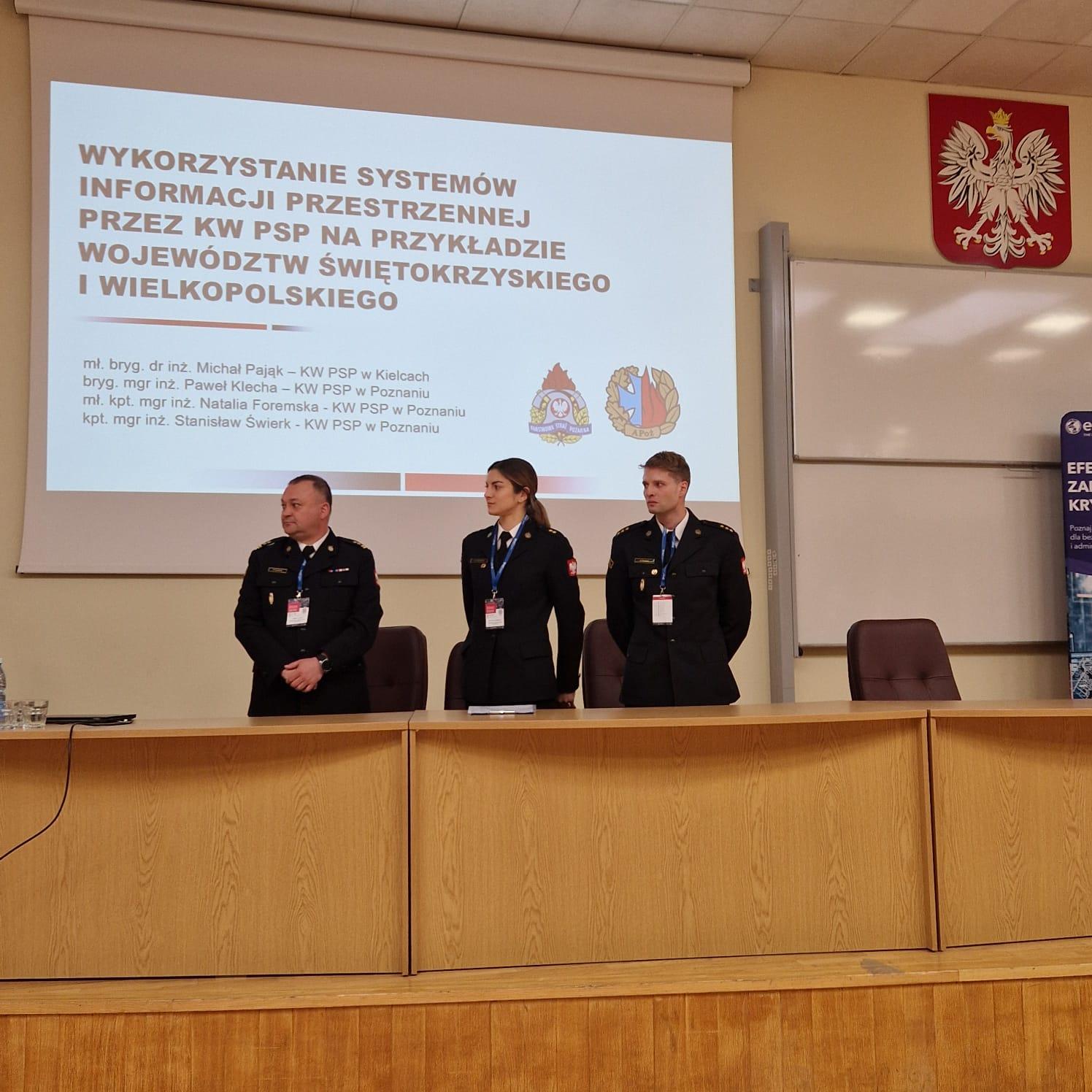 W czasie konferencji prelekcję nt. Wykorzystania systemów informacji przestrzennej przez Komendy Wojewódzkie Państwowej Straży Pożarnej na przykładzie województw świętokrzyskiego i wielkopolskiego, wygłosili wspólnie funkcjonariusze Komend Wojewódzkich Państwowej Straży Pożarnej w Poznaniu i w Kielcach.