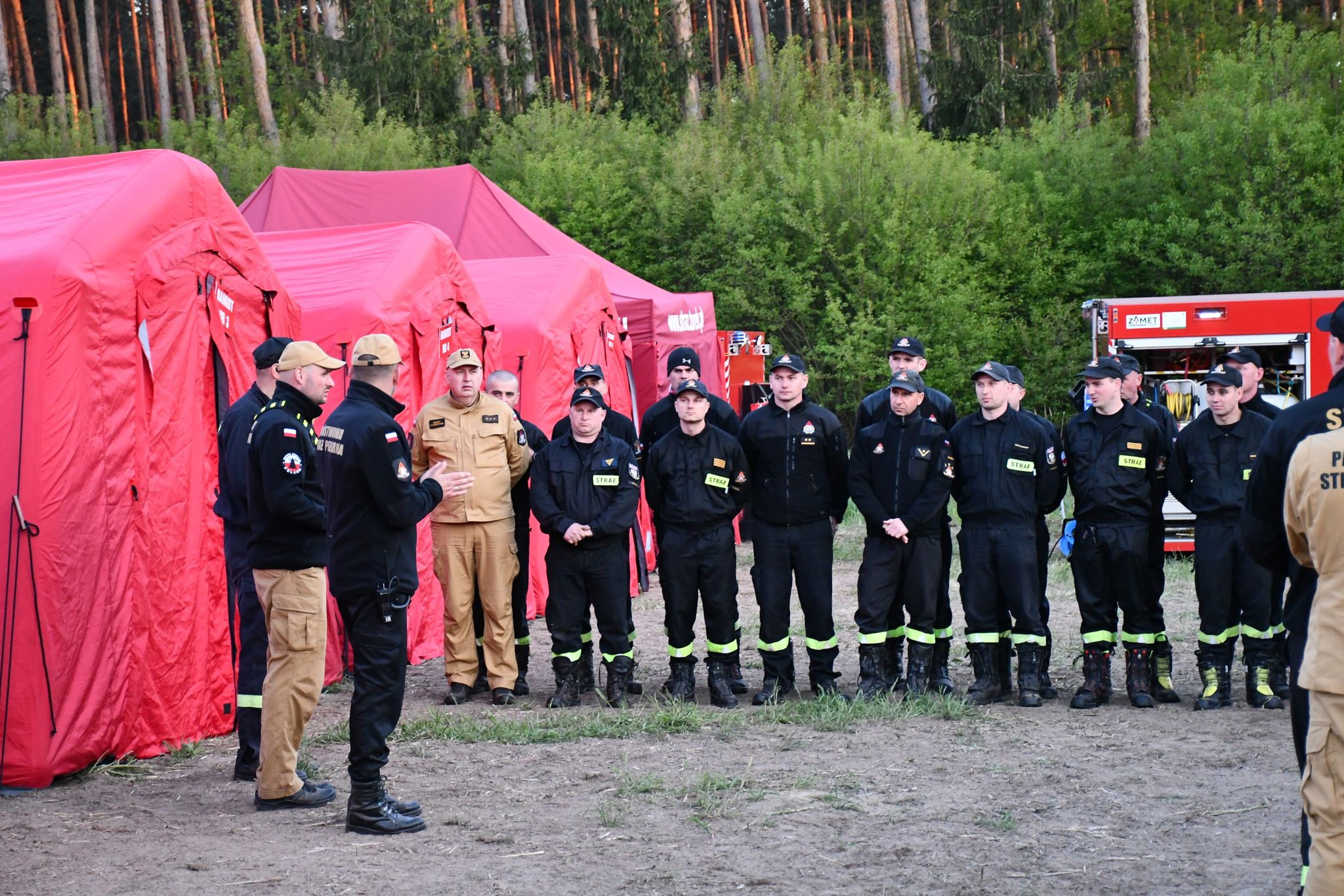 Realizację poszczególnych założeń, poprzedziło wysłanie dyspozycji do wyznaczonych jednostek organizacyjnych PSP woj. wielkopolskiego oraz proces kompletowania niezbędnych informacji, a także wymaganej dokumentacji. Proces ten, przeprowadzony został w niedzielę 7 maja. Wszystkie zastępy, dotarły do wyznaczonego w Siedlcu (gm. Siedlec, pow. wolsztyński) rejonu koncentracji w poniedziałek, do godziny 11:00. Tam też odbyła się ostateczna weryfikacja zasobów Modułu, posiadanej dokumentacji oraz wyposażenia. Zorganizowano również odprawę z uczestnikami ćwiczeń, w której udział wziął Komendant Powiatowy PSP w Wolsztynie – mł. bryg. Przemysław Ruskowiak, a także Wójt Gminy Siedlec – Pan Jacek Kolesiński. Po jej zakończeniu, uformowano kolumnę pojazdów, celem sprawnego przejazdu do miejsca wyznaczonego pod budowę bazy operacji. Miejsce to, znajdowało się w lesie nieopodal miejscowości Chobienice (gm. Siedlec).