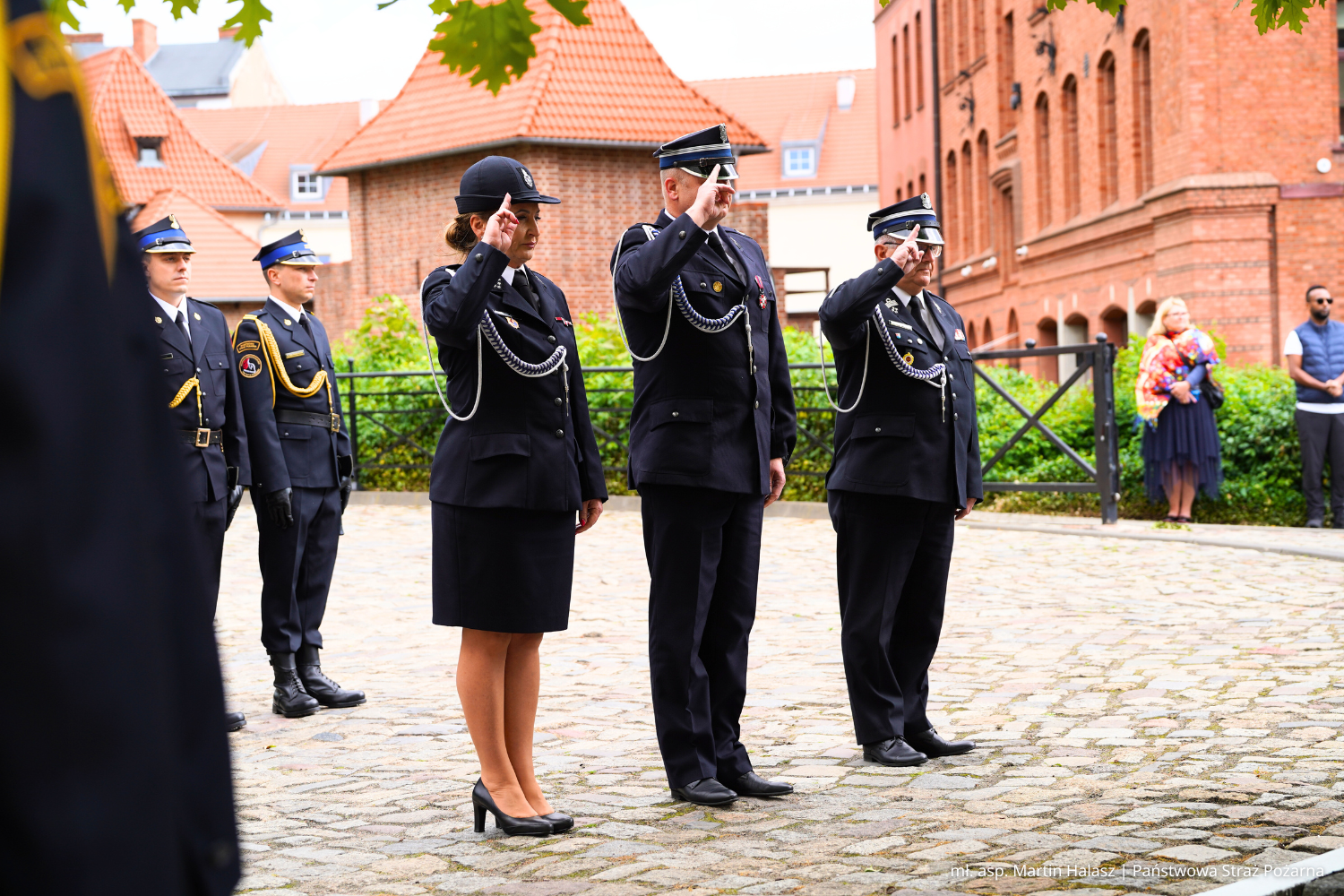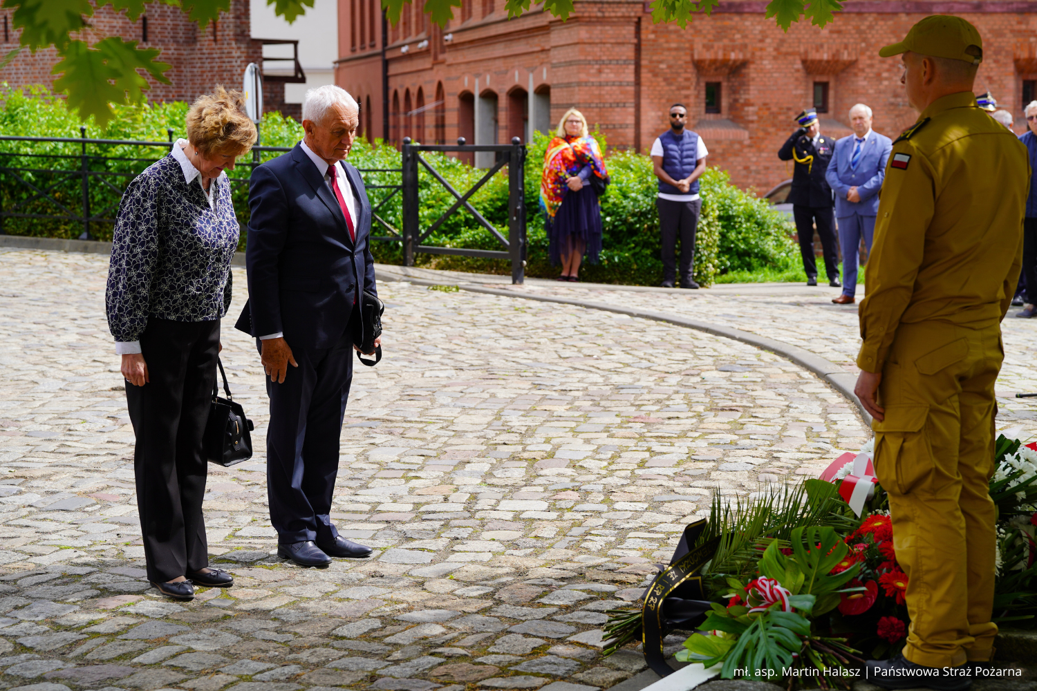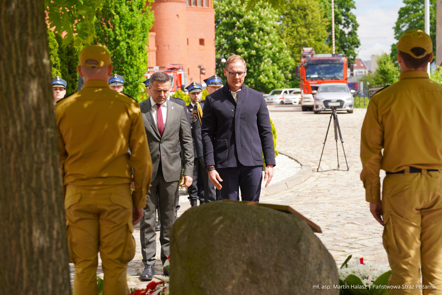 Następnie o godz. 12:00 na placu przed budynkiem Komendy Wojewódzkiej Państwowej Straży Pożarnej w Poznaniu przy ulicy Masztalarskiej 3, złożono kwiaty pod tablicą pamiątkową upamiętniającą poznańskich strażaków, którzy odeszli na wieczną służbę – „W hołdzie poznańskim strażakom za odwagę i ofiarność”.