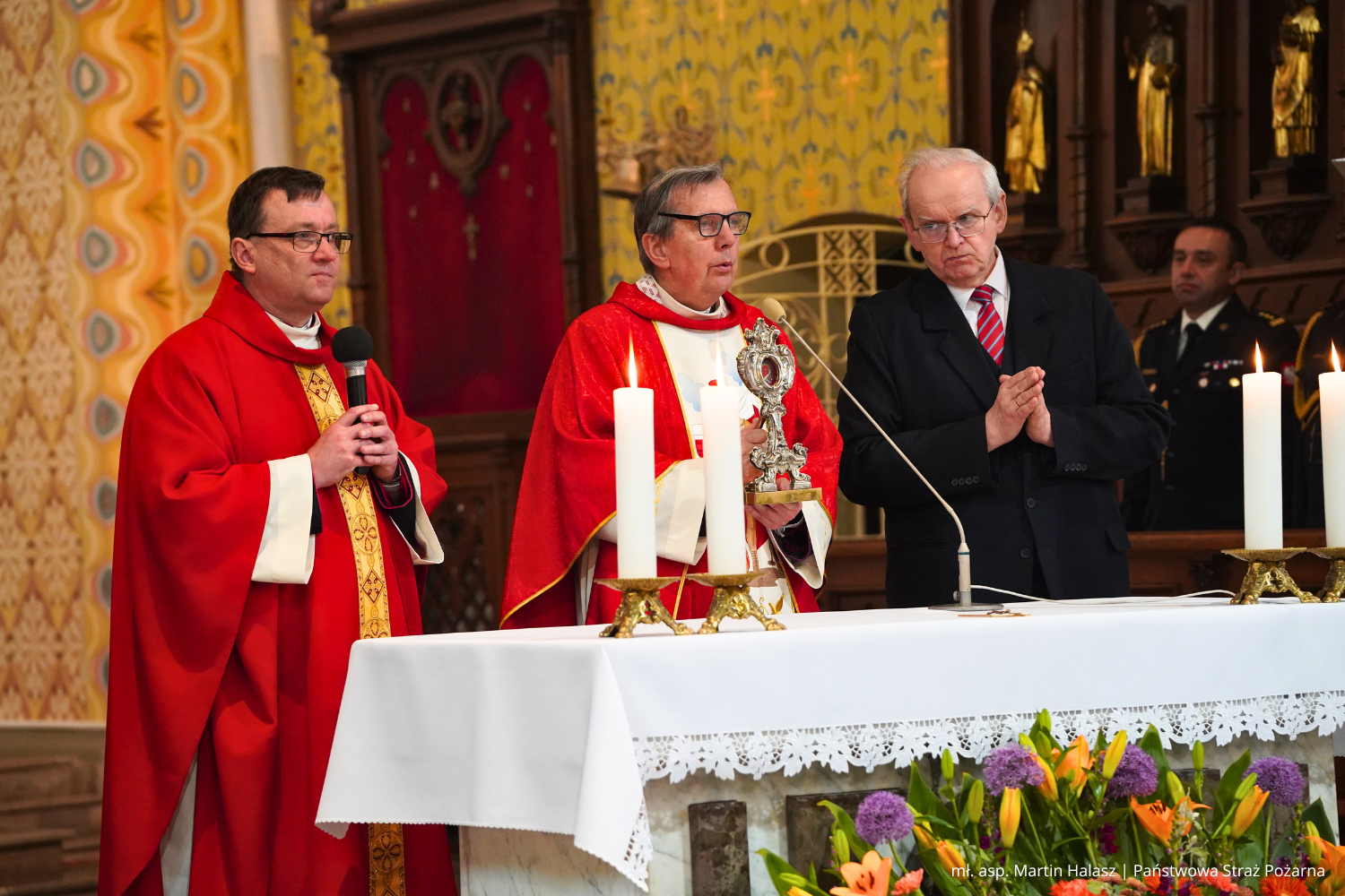 O godz. 10.00 w Kościele Garnizonowym Wielkopolskich Strażaków pw. Serca Jezusowego i Św. Floriana w Poznaniu przy ul. Kościelnej 3 odprawiona została uroczysta msza święta w intencji wszystkich strażaków i ich rodzin, a także kominiarzy, których patronem jest również św. Florian. W sposób szczególny zebrani modlili się za śp. starszych ogniomistrzów: Patryka Michalskiego i Łukasza Włodarczyka, którzy ponieśli najwyższą cenę, oddali swe życie w walce z żywiołem podczas pożaru kamienicy przy ul. Kraszewskiego w Poznaniu w dniu 24 sierpnia ubiegłego roku. Złożono również hołd wszystkim strażakom, którzy narażając własne życie, z wielką determinacją i mimo poniesionych obrażeń próbowali pomóc swoim kolegom. Wspomniano również śp. st. brygadier Edytę Kalak Filipiak - Naczelnika Wydziału Kadr, która odeszła (w służbie) po długotrwałej walce z chorobą nowotworową.