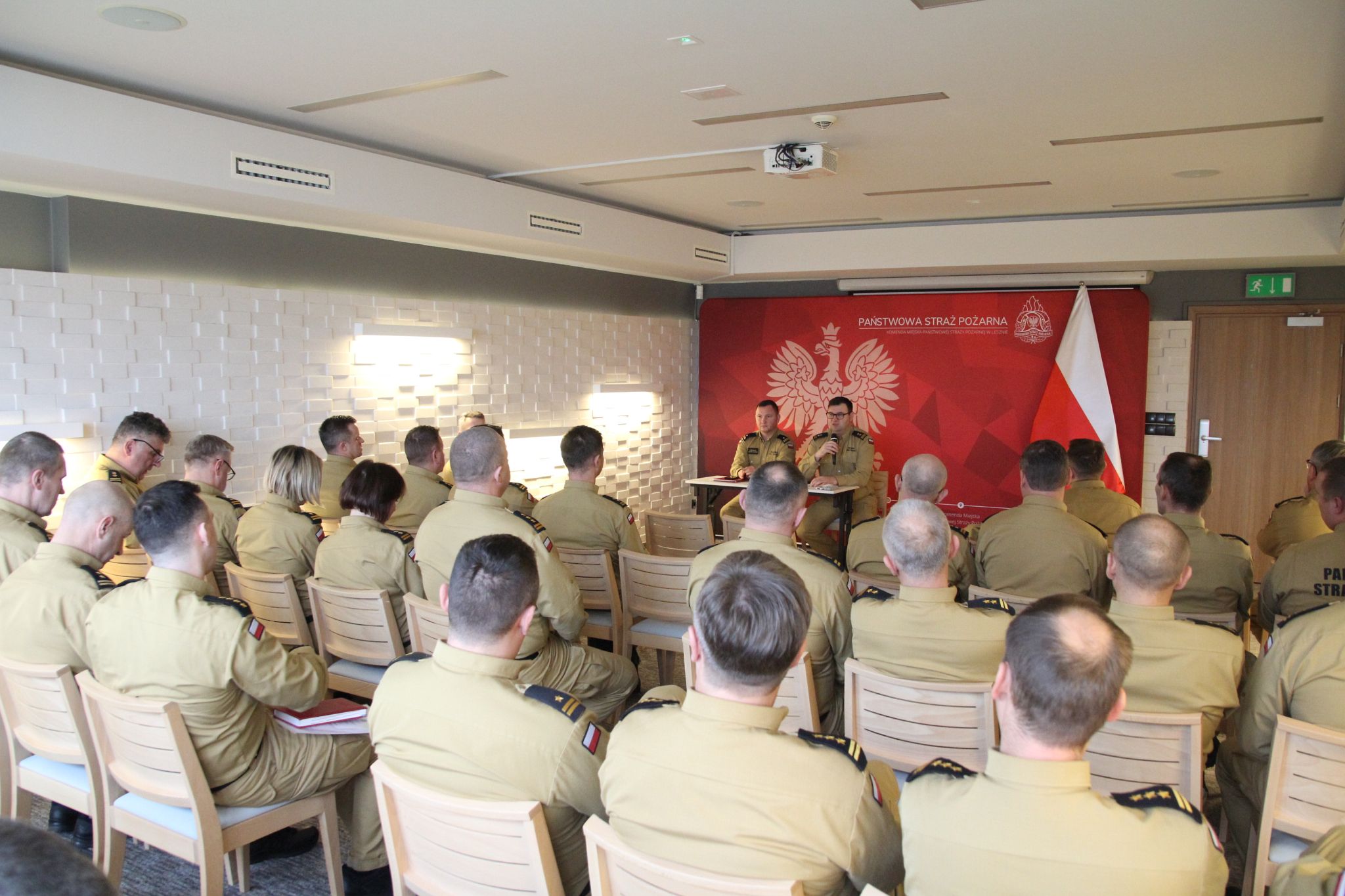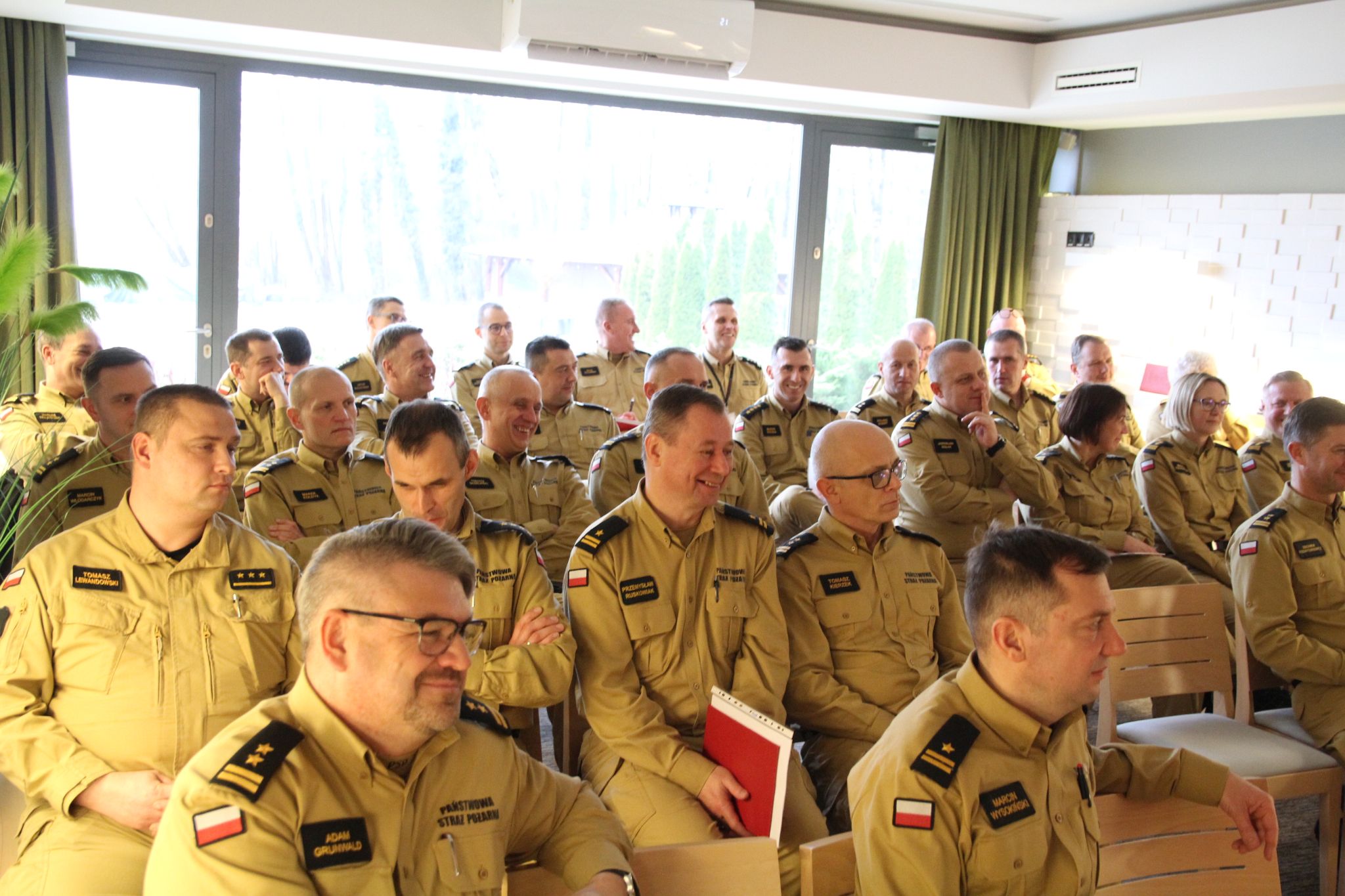 Podczas narady Wielkopolski Komendant Wojewódzki PSP nadbryg. Dariusz Matczak podziękował wszystkim za realizację zadań w roku 2023 oraz za sumienne i rzetelne wykonywanie obowiązków służbowych. Odprawa była także okazją do złożenia przez Komendanta Wojewódzkiego PSP życzeń z okazji świąt Bożego Narodzenia, przełamania się tradycyjnym opłatkiem oraz wspólnej wieczerzy.