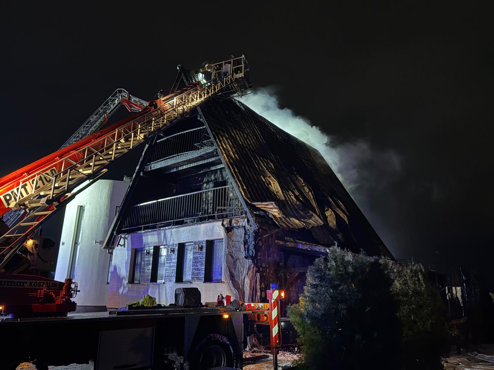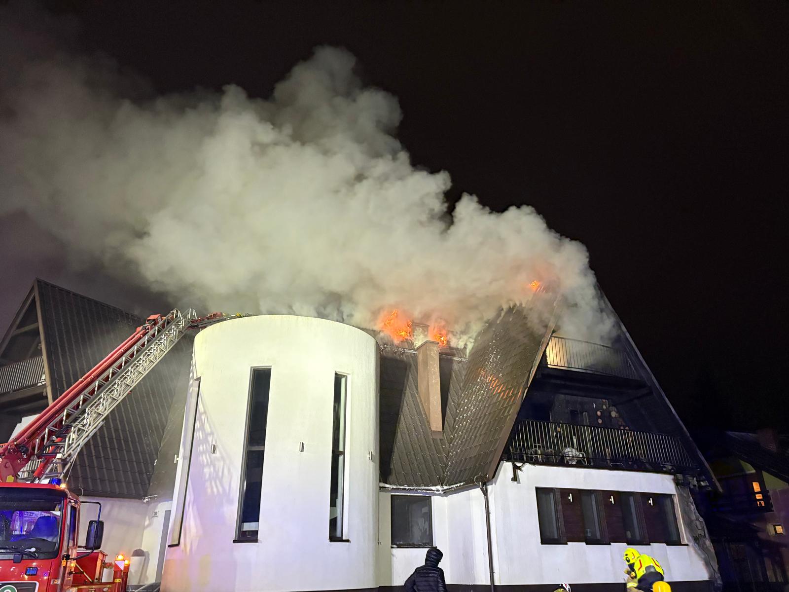 Pierwsze godziny Nowego Roku przyniosły kolejne poważne zdarzenia. O godz. 0:58 w Wieleniu (pow. wolsztyński) wybuchł pożar hotelu. Ogień objął poddasze trzykondygnacyjnego budynku, a powierzchnia pożaru sięgnęła około 300 m². Jeszcze przed przybyciem strażaków ewakuowało się 19 osób. W kulminacyjnym momencie na miejscu działało 9 zastępów straży pożarnej. Pożar został opanowany przed godz. 7:00. Część budynku udało się uratować, jednak pozostałe kondygnacje uległy zalaniu w wyniku działań gaśniczych. Wszystkim ewakuowanym osobom zapewniono lokale zastępcze. Podczas działań doszło również do lekkiego wypadku jednego z ratowników JRG Wolsztyn – uraz dłoni.