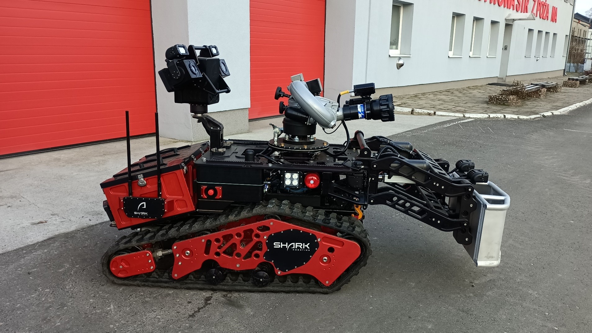 - 1 zdalnie sterowany pojazd do gaszenia pożarów i likwidacji zagrożeń CBRNE wraz z platformą do jego transportu dla KM PSP w Poznaniu,