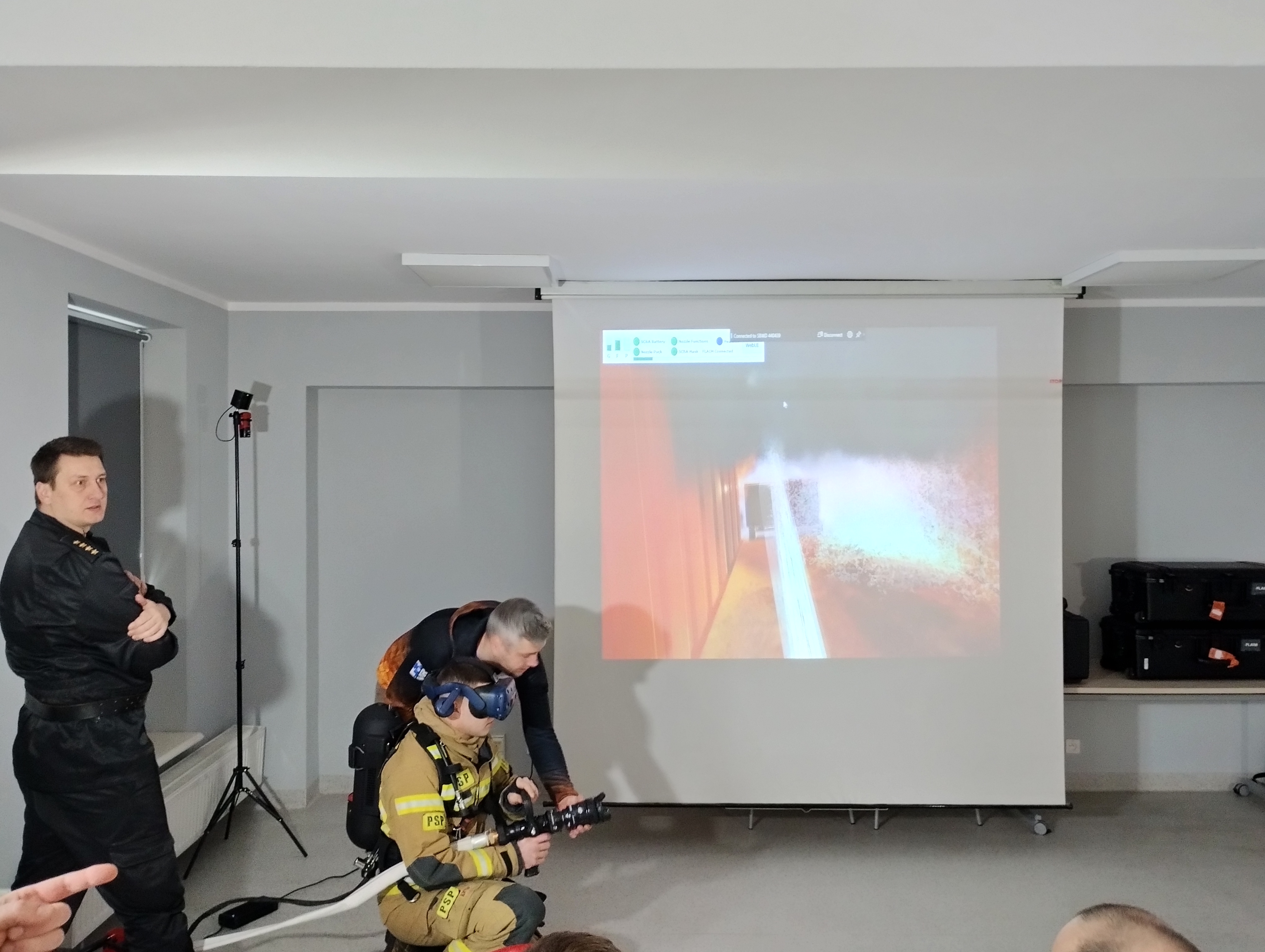 20 lutego 2023 r. w Komendzie Miejskiej PSP w Poznaniu odbył się pokaz nowoczesnego systemu do szkoleń z zakresu gaszenia pożarów. Wirtualny symulator pożarów to trenażer, który zaprojektowała i wykonała łotewska firma FLAIM SYSTEMS. To właśnie przedstawiciel tej firmy, Kaspars Gaurilovs prezentował po raz pierwszy w Polsce ten fantastyczny, ale niestety bardzo drogi sprzęt.