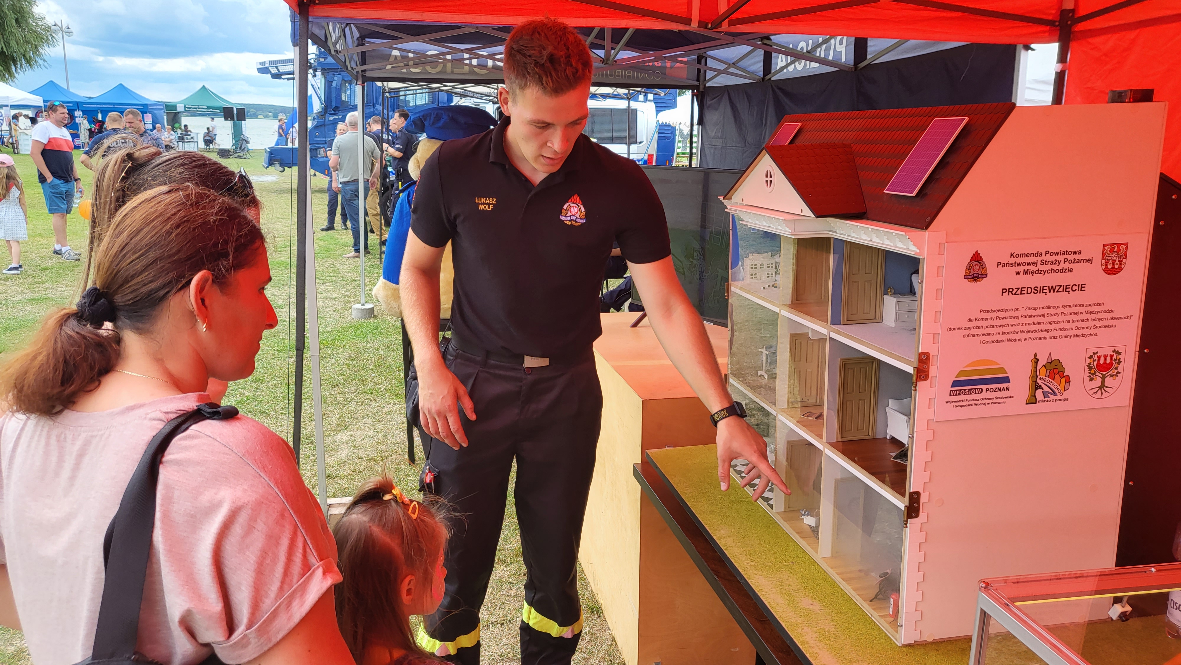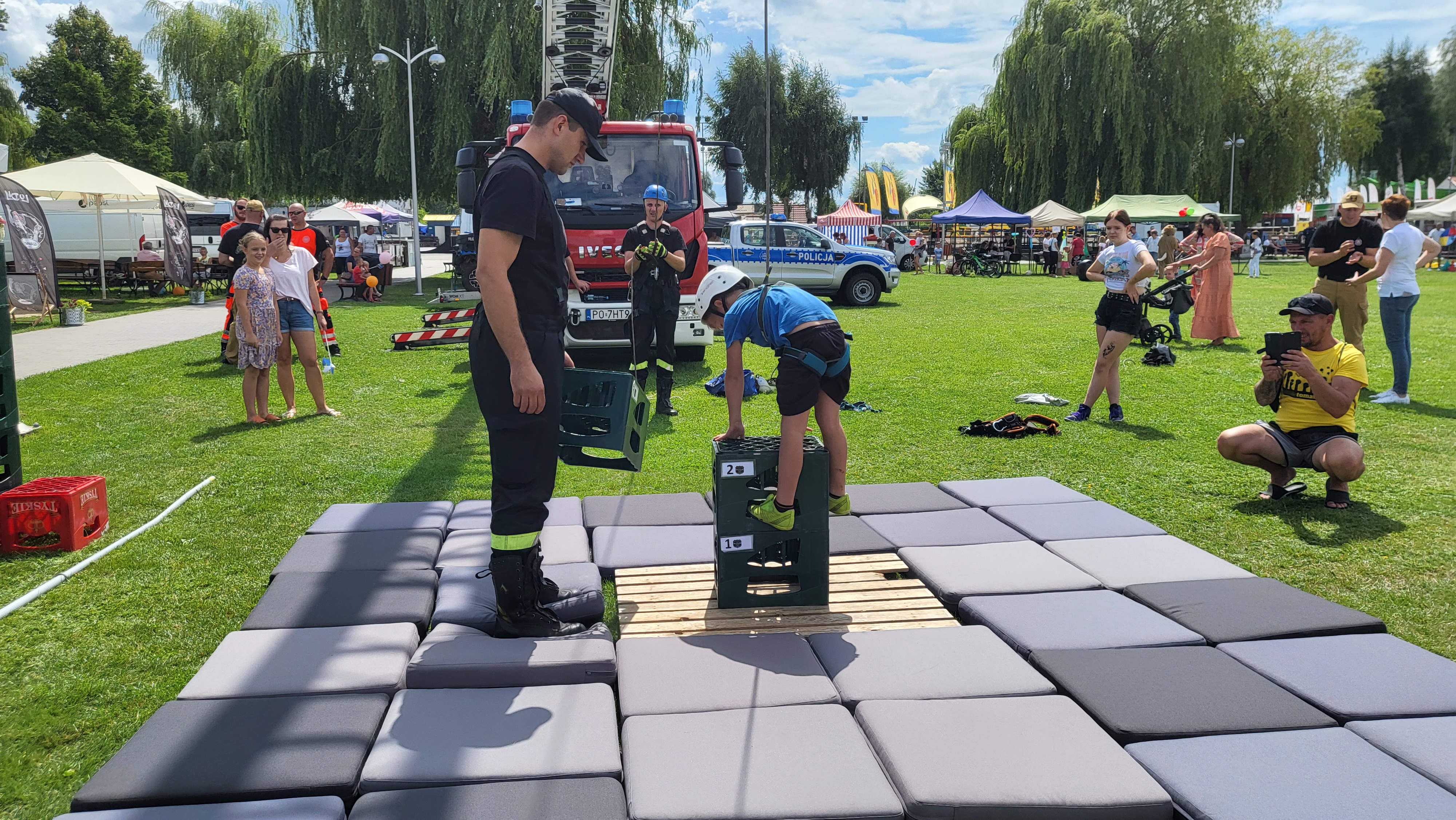 Podczas minionej soboty, na plaży miejskiej z Zbąszyniu, strażacy z Komendy Powiatowej PSP w Nowym Tomyślu przygotowali różne stanowiska edukacyjne, dotyczące m.in. zasad udzielania pierwszej pomocy, przedstawiania zagrożeń będących w naszym domu i otoczeniu, przy wykorzystaniu mobilnego symulatora zagrożeń pożarowych wraz z modułem woda-las. Dzieci i młodzież mieli okazję sprawdzenia swoich sił w ramach stanowiska z elementami ratownictwa wysokościowego – układaniu wieży ze skrzynek. Najmłodsi uczestnicy doświadczyli warunków zadymienia, jakie panują w pożarze - ich zadaniem było odnalezienie i ewakuowanie kilku misiów z zadymionego namiotu (sztuczny, nieszkodliwy dym).