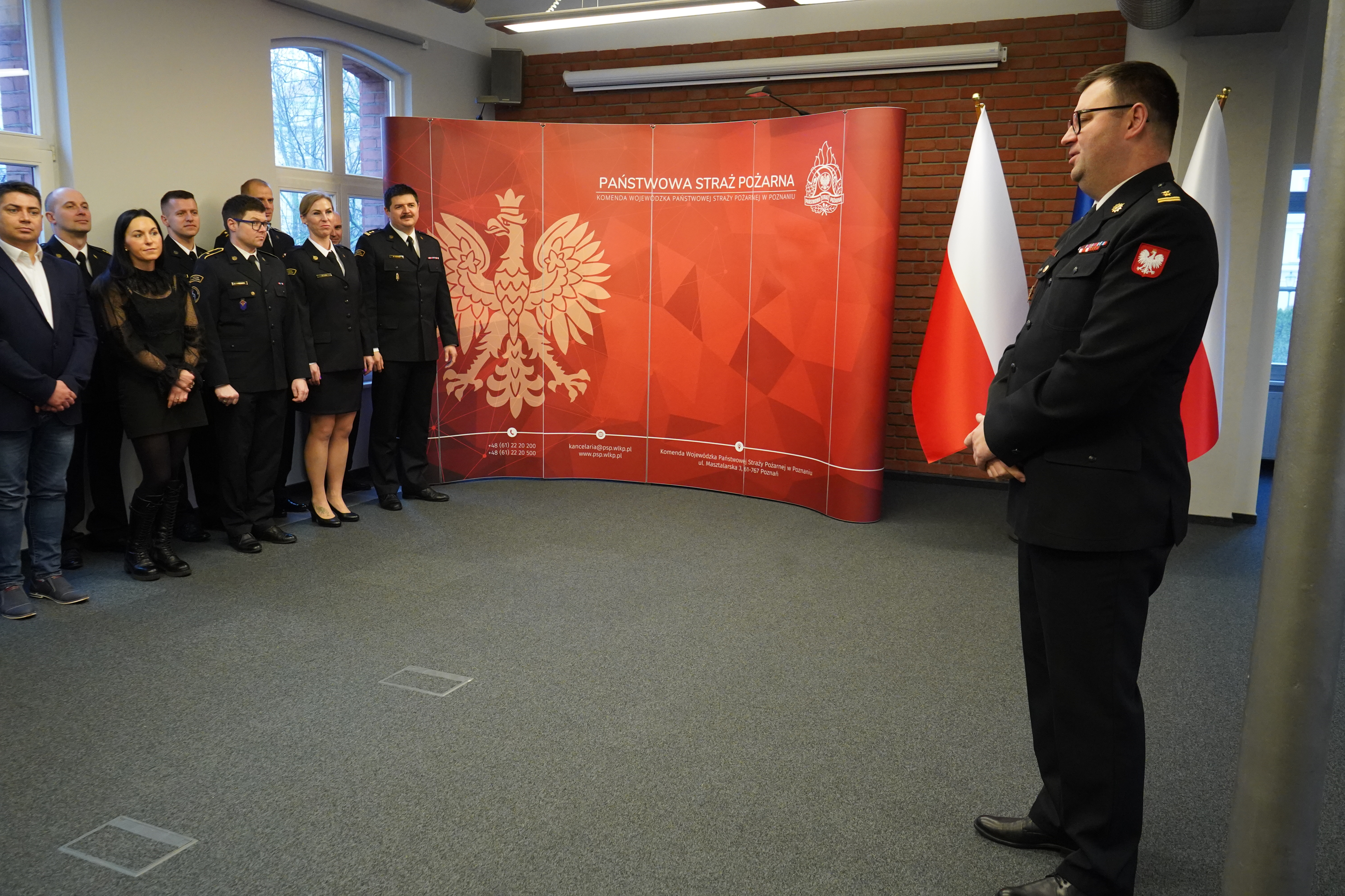 Dziś, podczas uroczystego spotkania, p.o. Wielkopolskiego Komendanta Wojewódzkiego PSP w Poznaniu bryg. Robert Natunewicz przekazał zebranym pracownikom służby cywilnej życzenia: satysfakcji i wytrwałości z wykonywanych obowiązków, determinacji do dalszego pełnienia służby na rzecz społeczeństwa.