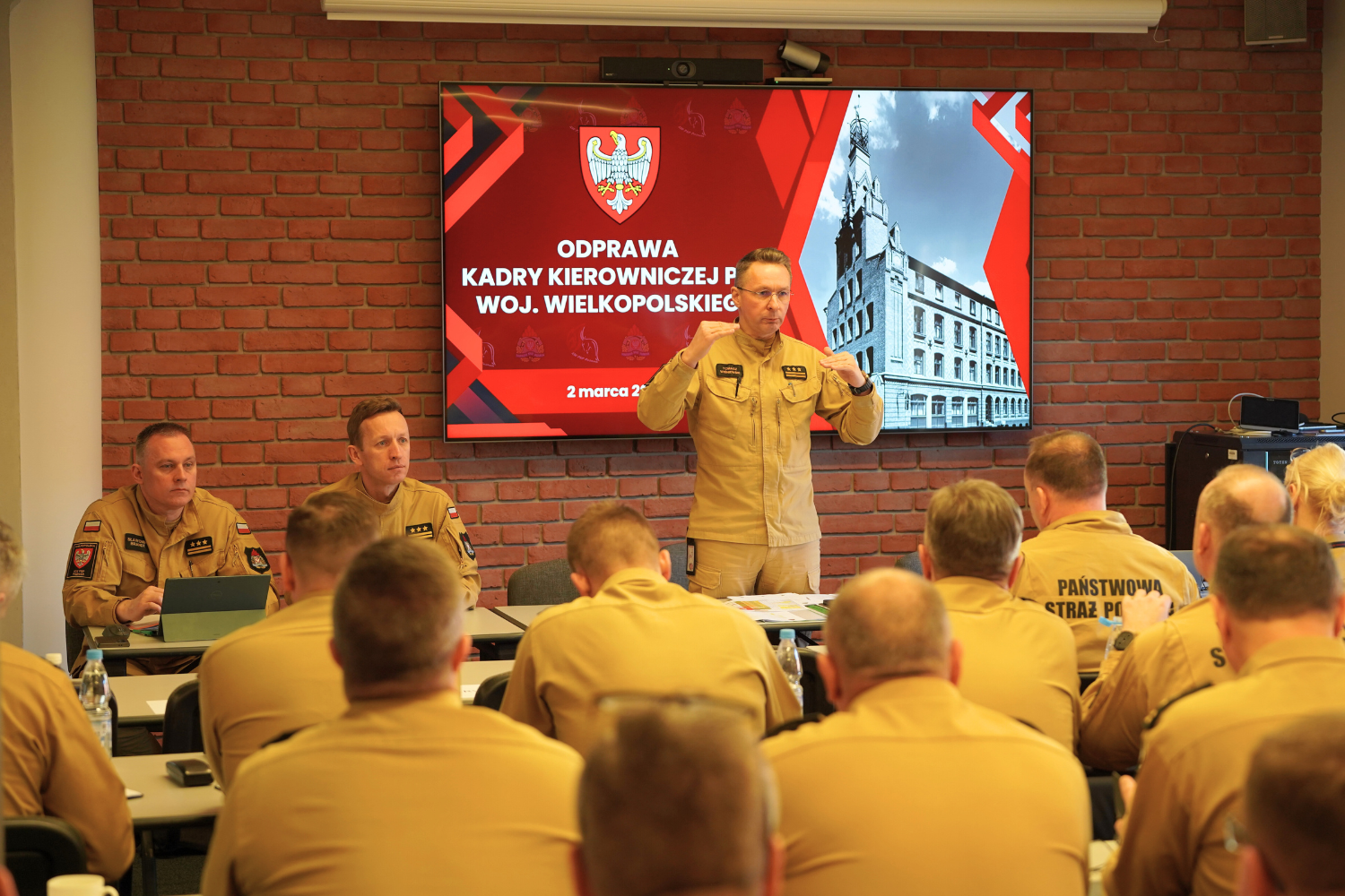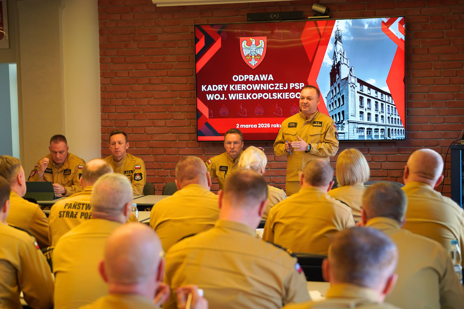 W poniedziałek 2 marca 2026 roku w siedzibie Komendy Wojewódzkiej Państwowej Straży Pożarnej w Poznaniu odbyła się odprawa kadry kierowniczej PSP województwa wielkopolskiego.